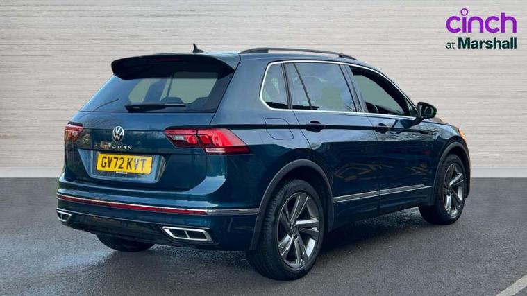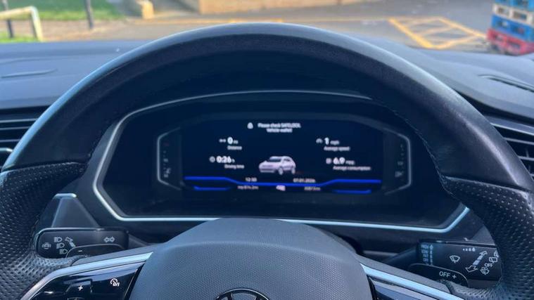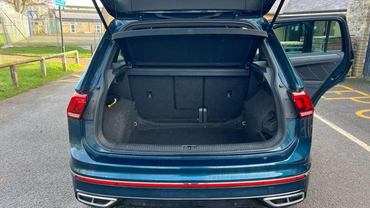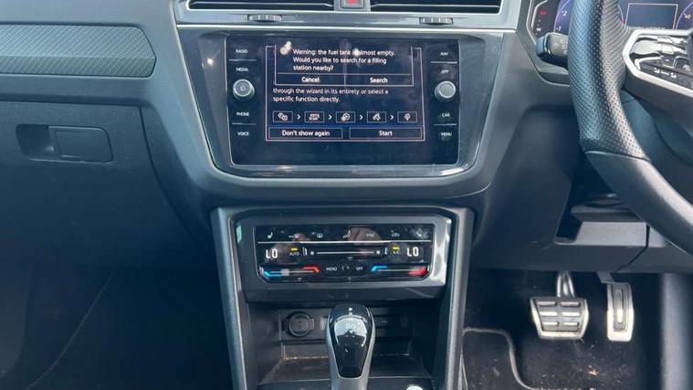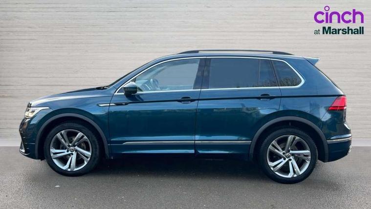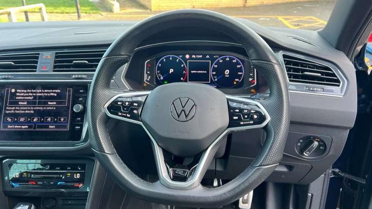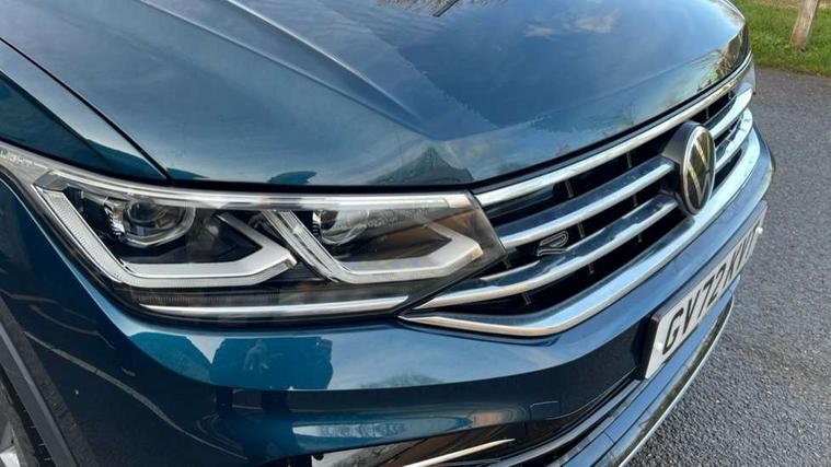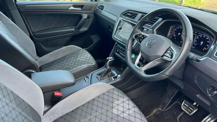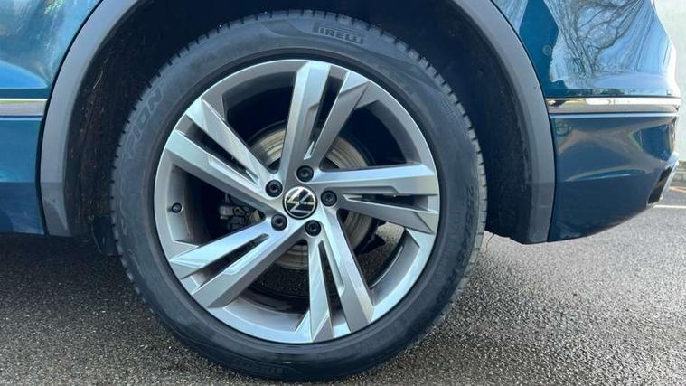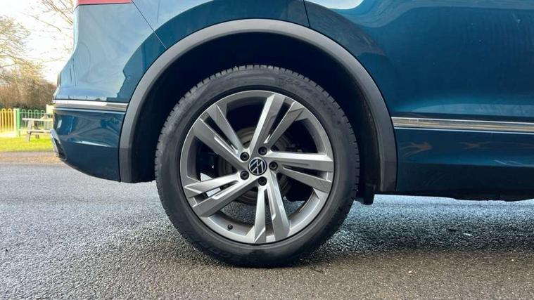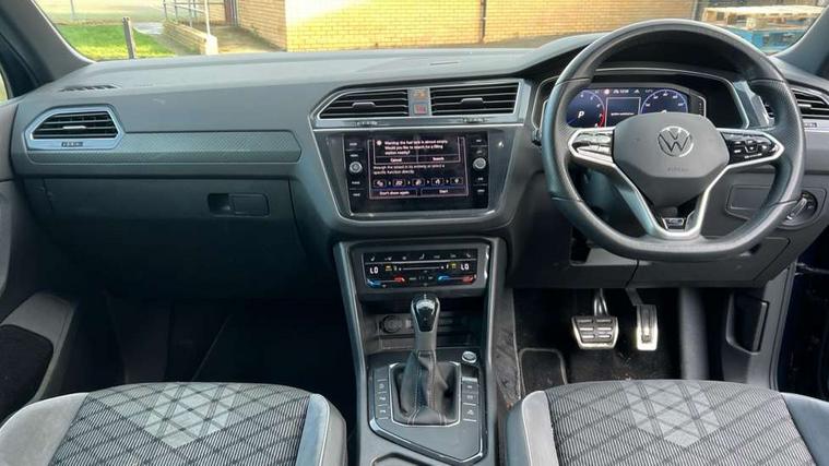 Adaptive cruise control ACC stop and go including speed limiter, App-Connect incl. App-Connect Wireless for Apple CarPlay and Android Auto, Bluetooth phone integration system, Comfort drive travel assist, Digital cockpit pro, Driver alert system, Driver profile selection, Dynamic road sign display, eCall emergency call system, Electromechanical speed sensitive power steering, Emergency assist, Front and rear parking distance sensors, Instrument cluster mph speedometer Great Britain, Lane keeping system Lane Assist, Lights on warning, Multifunction front facing camera, Outside temperature display, Premium multifunction display with multi colour display, Preparation for subsequent activation Navigation feature Discover Media includes Streaming and Internet, Remote control boot opening, Rev counter, Service interval indicator, Speed limit display, Start/stop system with regenerative braking, Tailgate/trunk lid unlocking from outside, Trip computer, Warning sound and light for doors and tailgate open, Battery regeneration during braking, Sports suspension, 8 Speakers, Digital radio reception DAB+, Diversity antenna for FM reception, Radio, Auto dimming interior rear view mirror, Automatic headlight control system, Body colored bumpers in R-Line style, Body colored exterior mirror housings, Body colour door handles, Chrome moldings on the side windows, Coming/leaving home lighting function, Dynamic headlight range control, Front and rear electric windows, Heated rear window, High level 3rd brake light, Laminated safety glass windshield, heat and sound insulating, LED headlamps with LED separate daytime running light and dynamic cornering light, LED rear combination lamps, LED rear number plate lights, License plate carrier in front and rear, Poor weather light and cornering light, Power adjustable, folding and heated door mirrors with surround lighting, front passenger exterior mirror lowering function, Privacy glass for rear side windows and rear window, R Line body kit, R Line side sills, Rain sensor, Rear exhaust tailpipe, Rear fog lamp, Rear side wing doors, Rear spoiler in R style, Rear windscreen washer and wiper with interval delay, Side and rear windows in heat insulating glass, Trailer Stability Programme, Unique R Line badging, Windscreen wipers/ intermittent wipe + 4 position delay, 12V outlet in center console rear and in luggage compartment, 12V outlet in front and tray, 2 LED front reading lights, 2 LED rear reading lights, 3 bench rear seats in 2nd row, 3 rear headrests, Air Care Climatronic 3 zone automatic climate control with enhanced air filter and controls in the rear, Art Velours greyson sports cloth upholstery, Backrest release for left front seat, Black headlining, Brushed stainless steel pedals and footrest, Carpet mats in front and rear with decorative stitching in Gray, Climate control unit rear with touch function, Door and side trim panel in foam film, insert in leatherette, Driver + front passenger lumbar support, Front footwell illumination, Front scuff plates in aluminum with R-Line logo, Front seats head restraints (x-adjustment), Height adjustable front seats, Height/reach adjust steering wheel, Isofix Preparation 2 Rear child seats, Leather gear knob, Rear bench seat asymetrically split folding, longitudinally movable and folding with load-through hatch and center armrest, Remote unlocking for rear seat backrest, Single front passenger seat, Sun visors with illuminated vanity mirrors, Top front comfort seats, Winter pack - Tiguan, 3 point seat belt for centre rear seats, 3 point seat belts with seat belt pretensioners for the outer rear seats, Curtain airbags for front and rear passengers, Driver/Front Passenger airbags, Drivers knee airbag, Electronic parking brake with auto hold, Electronic Stability Control with driver steering recommendation, ABS, ASR, EDL, EDTC and trailer stabilization, Front assist with autonomous emergency braking (for Adaptive Cruise Control ACC up to 130 mph), Front disc brakes, Front passenger airbag deactivation, Front side airbags, Height adjustable front 3 point seatbelts + pretensioners, Manual child proof rear door locks, Pedestrian monitoring system, Proactive passenger protection system in combination with front assist, Rear disc brakes, Two tone horn, Tyre pressure loss indicator, Warning sound and light for front seat belts if unfastened, Warning triangle, Anti theft alarm system with interior monitoring, backup horn and towing protection, Anti theft wheel bolts, Electronic engine immobiliser, Keyless locking and starting system keyless access with safelock, Chrome elements on the mirror switch power window switches and door pulls, Decorative inserts Carbon Gray for dashboard and front door trim panels, Interior door handle in matte chrome, 19" Valencia alloy wheels with AirStop tyres, Tool kit, Tyre mobility kit Includes 12V compressor and tyre sealant,
