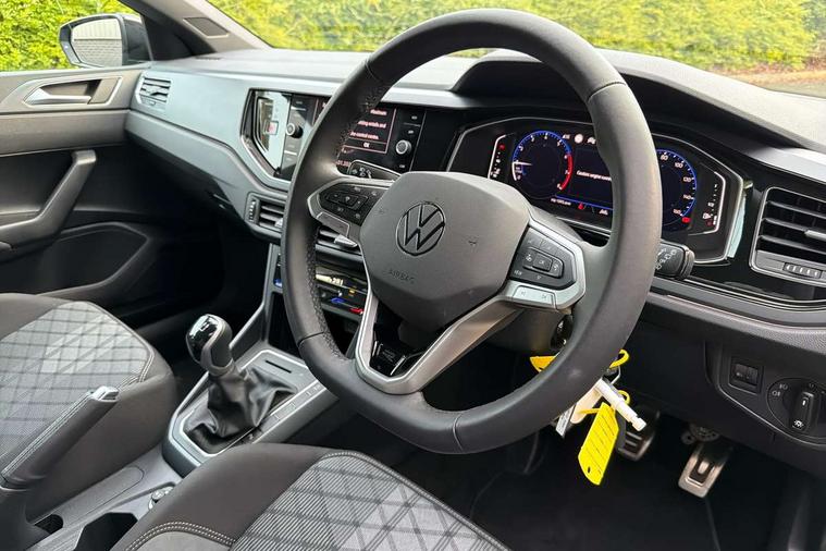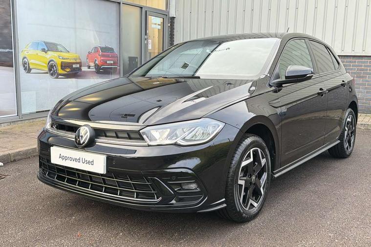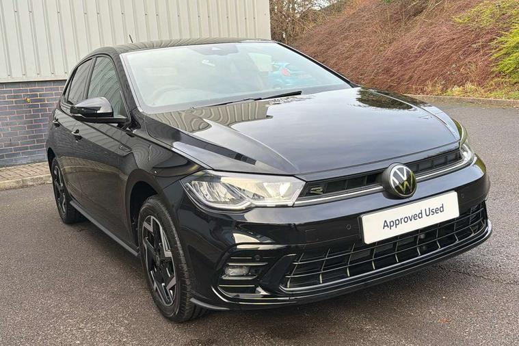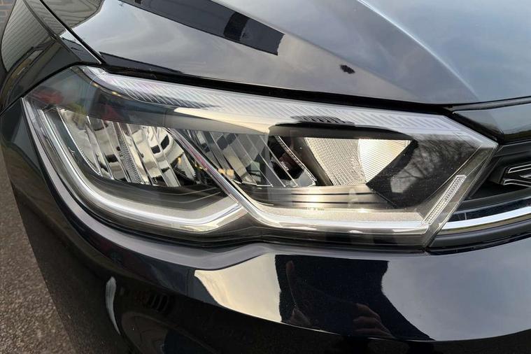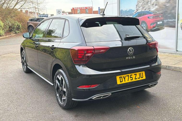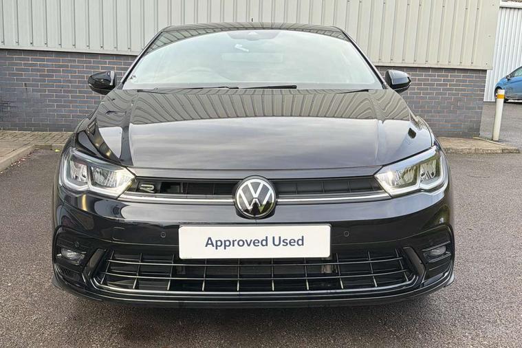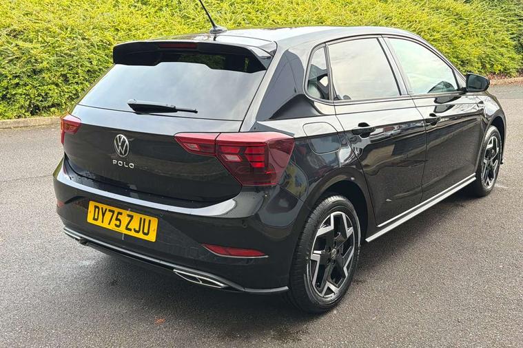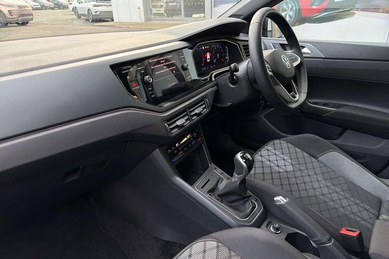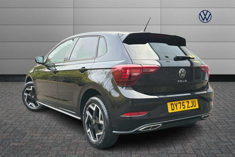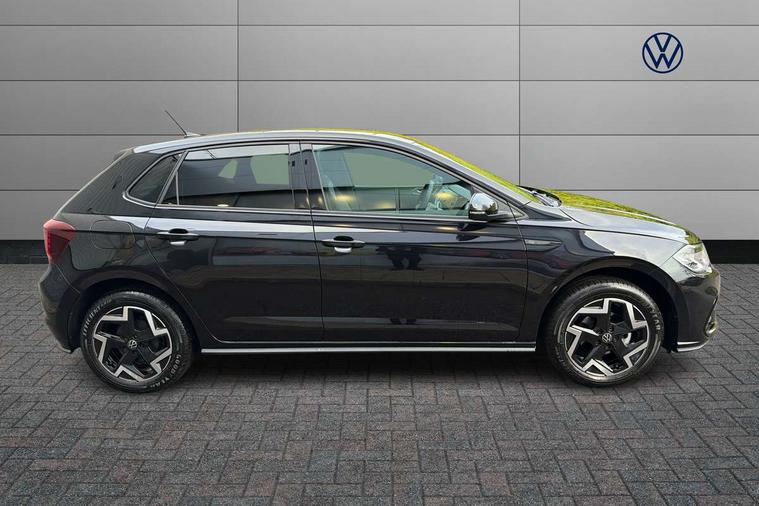 Advanced driver attention and drowsiness monitor, Bluetooth mobile phone interface, Digital Cockpit Pro with 10.25" Display, Dynamic road sign display, Emergency call service, Mobile phone preparation with inductive charging function, Multifunction camera, Power assisted speed sensitive steering, Predictive adaptive cruise control without follow-to-stop and speed limiter, Preparation for We connect and We connect plus, Speedo and rev counter, electronic odometer, trip, service interval display and fuel gauge, Standard rear axle, Travel Assist - Lane keeping system and traffic jam assist, Travel assist including emergency assist, Trip computer, Warning signal and warning light for front and rear seatbelts not fastened, Washer fluid level indicator, Wireless app connect, Front wheel drive, Rear shock absorpion, Start-stop system with battery regeneration (recuperation - energy recovery during braking), DAB Digital radio, Diversity antenna for FM reception, Body colour bumpers, Body colour door handles, Electric front windows, Front scuff plates with R-Line logo, Heat insulating glass windscreen, Power folding adjustable/heated exterior mirrors and front passenger exterior mirror lowering function, Rear electric windows, Rear fog light, Rear side wing doors, Rear windscreen washer and wiper with interval delay, Third brake light, 12V power socket in centre console, 2 USB-C ports in the front, 2 USB-C charging sockets on the center console in the rear, 3 rear head restraints, 60/40 split folding rear seat and rear seat bench not split, Air care climatronic air conditoning system with active combination filter and 2-zone temperature control, Black roof lining, Carpet mats, front and rear, Chrome plated radiator grille inserts, air vent surrounds and light switch surrounds, Door and side trim panel, Driver and front passenger seat height adjustment, Driver/passenger sunvisors with illuminated vanity mirrors, Front centre armrest, Front footwell illumination, Front seat backrest storage pockets, Front sports comfort seats, Handbrake lever handle in leather, Headliner in recycled material, Isofix child seat preparation easy-fit (for two outer rear seats, and front passenger seat) compatible with I-size, Karoso artvelours cloth upholstery, Leather trimmed gear knob, LED interior light with switch off delay and dimmer, 2 reading lights front and rear, Luggage compartment cover, Luggage compartment floor, Luggage compartment lighting, Lumbar adjustment for front seats, Multifunction steering wheel, Single front passenger seat, Stainless steel pedals, Standard pedal cluster, Light and sight pack - Polo R-Line/Black Edition, 3 point height adj front seatbelts + pretensioners, 3x3 point rear seatbelts, ABS, Driver and front passenger airbag with front passenger airbag deactivation, Drivers and front passengers safety optimised head restraints, ESC (Electronic stability control) + EDL (Electronic Differntial lock) and ASR (Traction control), Extended and predictive pedestrian/ cyclist protection, Front curtain and side airbags with center airbag, Hill hold control, Manual child lock in rear doors, Single tone horn, Tyre pressure loss indicator, Alarm with interior protection, Anti-theft alarm system with interior monitoring, backup horn, and towing protection, Anti-theft wheel bolts, Electronic engine immobiliser, Chrome applications on rotary light, mirror adjustment, window regulator switches, outlet with frame in black, Dark grey anodised matt decorative inserts in dash and front door panels, 16" Coventry alloy wheels, Low rolling resistance tyres,