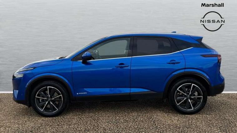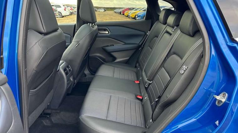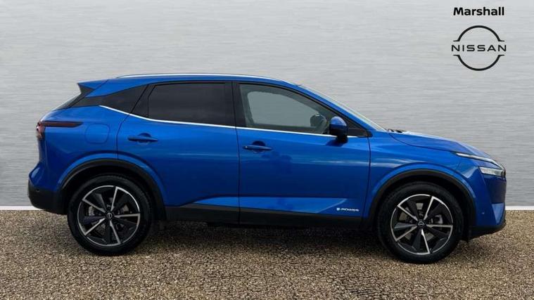 Advanced windscreen head up display, Android auto/Apple CarPlay (Wired), Blind spot warning, Drive modes (sport, normal, eco), Electric speed sensitive power steering, Emergency and breakdown call, Front and rear parking sensors, Full Digital 12.3" TFT Digital Combimeter, Google maps services - search, weather, 3D maps and Google street view, Hands free power tailgate, Idle stop/start system, Intelligent around view monitor, Intelligent Cruise control (ICC), Intelligent driver alert system, Intelligent forward collision warning, Intelligent lane intervention, Lane departure prevention, Lane departure warning system, Lane keep assist, Moving object detection, Nissan connect 12.3 inch touchscreen infotainment system, Nissan connect navigation, ProPILOT with Navi-Link, Push button starter, Rear cross traffic alert, Rear view camera, Remote control services - door locks, lights, horn and car locator, Telematics - notifications and connectivity services, TomTom live traffic services, Traffic sign recognition with legal speed adjustment, Trip computer, Virtual personal assistant and firmware over the air capability, Wireless apple carplay, Wireless charging pad, 6 speakers, AM/FM audio system with DAB, Bluetooth audio streaming, Front USB connections (Type-A and Type-C), Rear USB charging only ports (Type-A and Type-C), Auto dimming rear view mirror, Auto rear wiper when reversing, Automatic hazard signal with emergency stop signal, Body colour mirror caps, Body coloured door handles, Bodyside mouldings, Chrome side window finisher, Door handle with button, e-POWER badging, Electric auto folding door mirrors, Electrically adjustable and heated door mirrors with LED turn indicator, Follow me home headlights, Front and rear LED turning signals, Headlights auto levelling system, Intelligent auto headlights, LED daytime running lights, LED headlights with adaptive driving beam, LED rear lights, One touch front and rear electric windows with remote opening and closing, Partially body coloured bumpers, Privacy glass, Rear bumper with graphite insert, Rear reversing light (bulb lighting), Rear roof spoiler, Rear side wing doors, Rear styling plate, Shark fin antenna, Splash free rain sensing wipers, Super UV and infrared cut glass, Thermaclear heated windscreen, Three blink turn signal, 12v power socket in dashboard and luggage, 2x Rear coat hooks, 3 bench rear seats in 2nd row, 3 rear headrests, 4 folding assist grip, 6 Luggage hooks - 4 on floor, 2 on side, 60/40 split folding rear seat bench, Ambient lighting around centre console, Ambient lighting in front doors, Centre console storage tray, Chrome interior door handles, Cloth/syntech leather monoform upholstery, Dark black/blueish PVC wrapping, Dark headlining, Driver and front passenger sunvisors with illuminated vanity mirrors, Driver seat back pocket, Dual zone automatic climate control with pollen filter, e-POWER shifter, Electrically adjustable driver seat, Electrically adjustable lumbar support for driver, Front and rear door storage, Front centre console and armrest, Front cupholders x 2, Front door with bottle holders, Glovebox with light, Hard trunk cover, Heated front seats, Heated steering wheel, Height adjustable driver's seat, Height adjustable front headrests, Height adjustable passenger seat, Leather steering wheel, Luggage board system, Luggage space lighting, Manual lumbar support on passenger seat, Manually adjustable passenger (slide recline + lifter), Multifunction steering wheel, Passenger seat back pocket, Rear armrest with 2 cupholders, Rear door bottle holders, Single front passenger seat, Soft PVC kneepad, Steering wheel switches, Tilt/telescopic adjustable steering wheel, Two rear isofix child seat anchorage points with top tether, Welcome light and doors with console tray ambient lighting, Glass roof pack with roof rails - Qashqai, 3x3 point rear seatbelt pretensioners + load limiters, ABS with EBD and brake assist, Active brake limited slip, Auto hold function, Child locks on rear doors, Curtain and front side, far side airbags, Driver and passenger airbags, Driver, passenger and 2nd row rear seat belt reminder, Electronic parking brake, Front seatbelt pretensioners + load limiters, Height adjustable front seatbelts, Hill start assist, Intelligent blind spot intervention, Intelligent front emergency braking with pedestrian, cyclist recognition and junction assist, Intelligent rear automatic braking, Tyre pressure monitoring system, Vehicle dynamic control, Capless fuel filler, Engine immobiliser, Intelligent Key, Remote central door locking with deadlocking, Thatcham Cat.1 alarm, Interior instrumental panel C finisher, 19" Diamond cut alloy wheels, Tyre puncture repair kit,