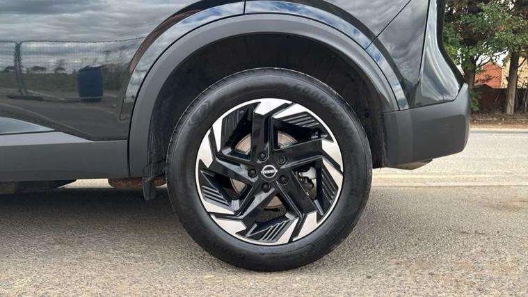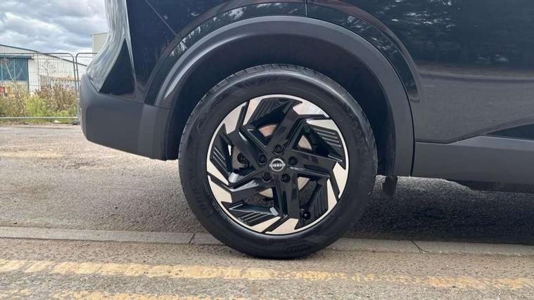 2 front USB-C ports, 2 rear USB-C ports, 360 degree Intelligent around view monitor with moving object detection, Blind spot intervention, Blind spot warning, Drive assist custom mode, Drive modes (sport, normal, eco), Driver drowsiness and attention warning, Electric speed sensitive power steering, Emergency and breakdown call, Emergency lane keep assist, Emergency Stop Signal (ESS), Engine start/stop button, Event data recorder, Front and rear parking sensors, Full Digital 12.3" TFT Digital Combimeter, Google virtual personal assistance, Idle stop/start system, In-car WIFI hotspot, Intelligent Cruise control (ICC), Intelligent forward collision warning, Intelligent speed assist, Lane departure warning system, Nissan connect 12.3 inch touchscreen infotainment system, Nissan connect navigation with google maps, Nissan connect services 2.0 (Google Automotive System), Outside temperature sensor, Rear cross traffic alert, Reversing detection, Traffic jam pilot, Wireless Apple CarPlay/Android Auto, Wireless charging pad, Limited slip differential, 6 speakers, AM/FM audio system with DAB, Bluetooth audio streaming, Auto rear wiper when reversing, Body colour mirror caps, Body coloured door handles, Bodyside mouldings, Chrome side window finisher, Electric auto folding door mirrors, Electrically adjustable and heated door mirrors with LED turn indicator, Follow me home headlights, High beam assist, Intelligent auto headlights, LED 3rd brake light, LED daytime running lights, LED Headlights, LED rear lights, One touch front and rear electric windows with remote opening and closing, One touch passenger window, Partially body coloured bumpers, Rear privacy glass, Rear roof spoiler, Rear side wing doors, Rear styling plate, Shark fin antenna, Splash free rain sensing wipers, Super UV and infrared cut glass, Three blink turn signal, 3 bench rear seats in 2nd row, 3 rear headrests, 60/40 split folding rear seat bench, Chrome interior door handles, Cloth upholstery, Dark headlining, Driver seat back pocket, Dual zone automatic climate control with pollen filter, Front door with bottle holders, Height adjustable front headrests, Luggage board system, Luggage space lighting, Multifunction steering wheel, Passenger seat back pocket, Rear door bottle holders, RGB ambient light (Full area coverage), Single front passenger seat, Smooth leather steering wheel, Steering wheel gearshift paddles, Tilt/telescopic adjustable steering wheel, Two rear isofix child seat anchorage points with top tether, 3x3 point rear seatbelt pretensioners + load limiters, Autonomous emergency braking, Child locks on rear doors, Curtain and front side, far side airbags, Driver and passenger airbags, Driver, passenger and 2nd row rear seat belt reminder, Electric handbrake with auto hold function, Front seatbelt pretensioners + load limiters, Height adjustable front seatbelts, Hill start assist, intelligent front emergency braking, Rear automatic braking, Tyre pressure monitoring system, Vehicle dynamic control, Engine immobiliser, Intelligent key with walk away lock and approach unlock functions, Remote central door locking with deadlocking, Thatcham alarm, 18" Diamond cut alloy wheels, Tyre puncture repair kit,