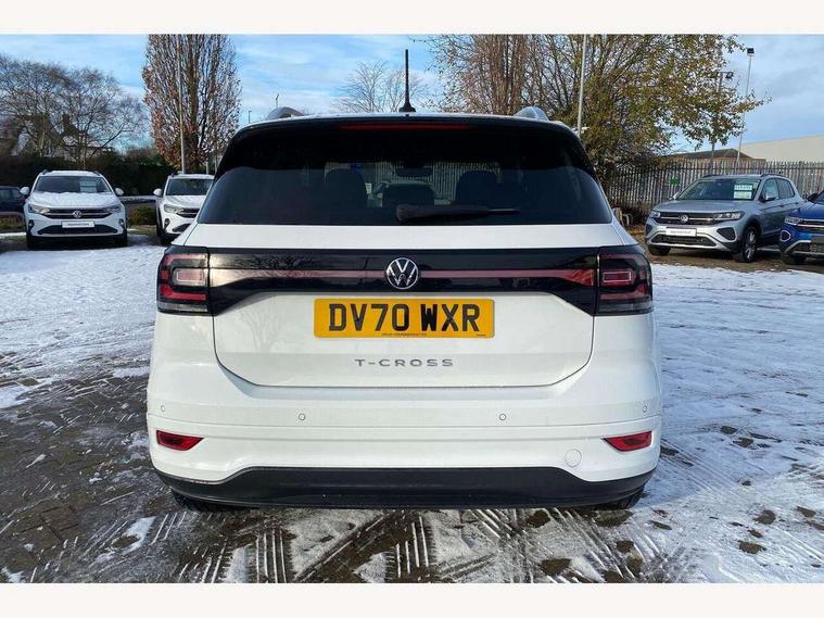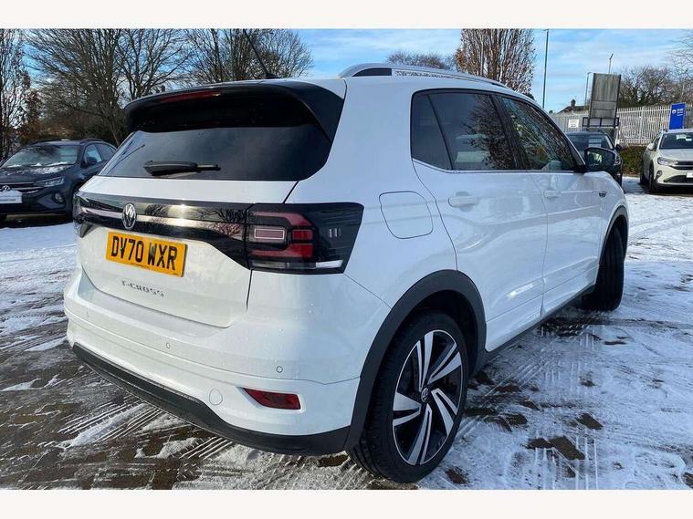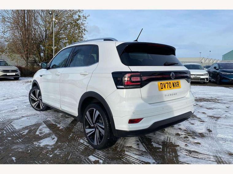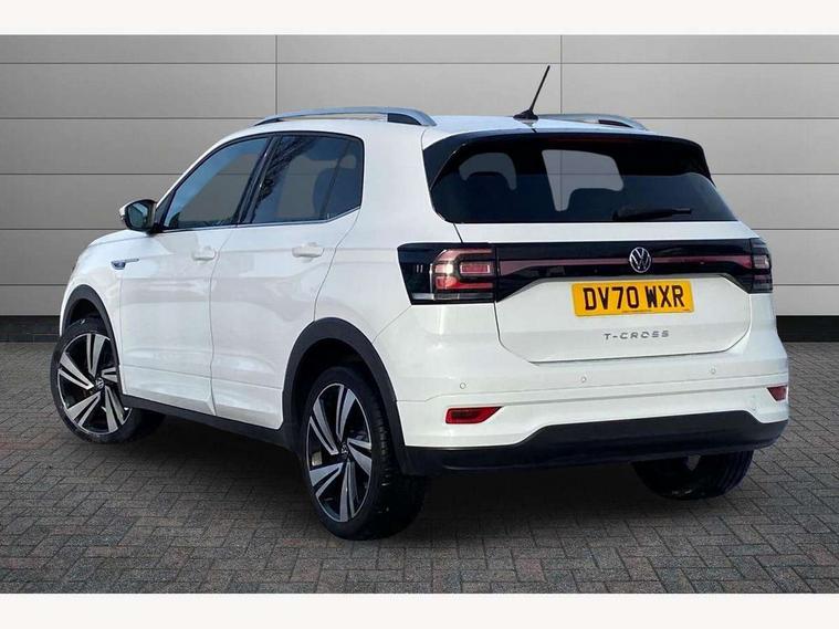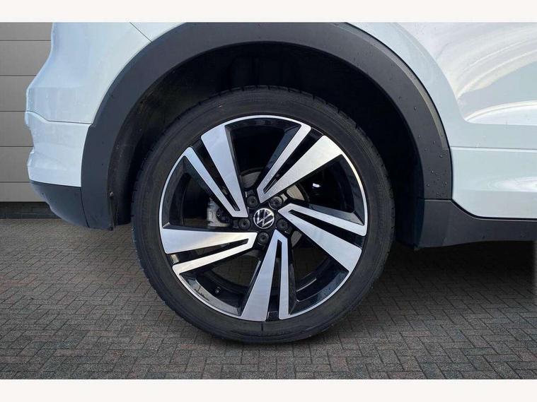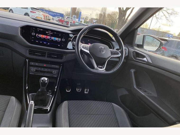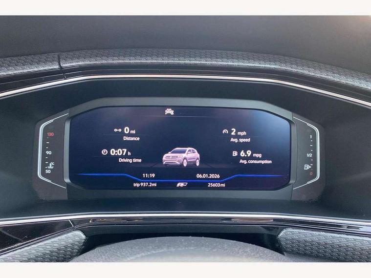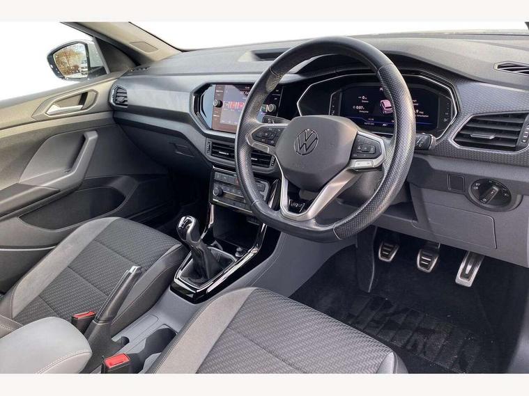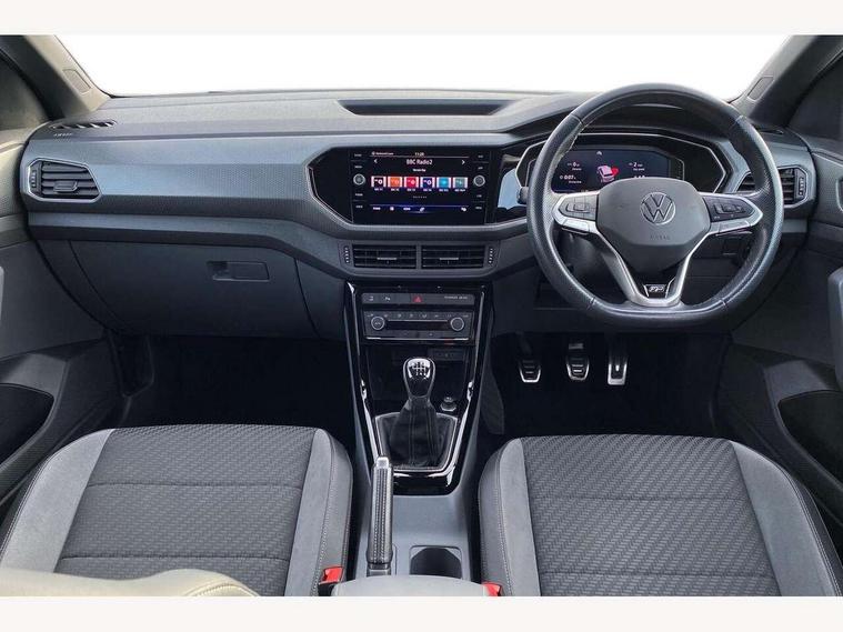 'Lights On' Reminder warning buzzer, 2D/3D map view, Adaptive cruise control including front assist, forward collision warning, autonomous emergency braking, speed limiter, Bluetooth telephone and audio connection for compatible devices, Car information display, Digital Cockpit Pro - Active info display, Driver alert system, eCall emergency call system, Lane assist, Multifunction computer with visual gear change recommendation for fuel consumption, Power assisted speed sensitive steering, Speed limit display, Speedo, rev counter, electronic odometer, trip, service interval display, exterior temperature and fuel gauge, Stop/start system, Warning sound and light for doors and tailgate open, Warning sound and light for front seatbelts unfastened, We connect plus preparation, Wireless Car net app connect with Apple CarPlay, combined functionality of Apple CarPlay/Android Auto and MirrorLink, Battery regeneration during braking, Misfuel prevention device, 2x USB connection with USB charging sockets and in rear centre console, DAB Digital radio receiver, Diversity antenna for FM reception, Multi device interface (MDI) with USB connection, Music playback - MP3, WMA and AAC files, Premium USB cable for Apple or Android smartphone compatibility, Simultaneous pairing of 2 compatible mobile devices, SMS Functionality, Three route options - Fast, Short, Eco, Title and cover art display, Automatic dimming interior rear view mirror, Automatic hazard lights activation under emergency braking, Body colour door handles, Body colour rear roof spoiler, Body coloured bumpers, Dusk sensor + automatic driving lights, Front and rear electric windows, Front fog lights with static cornering function, Galvanised body, Heated rear window, High level 3rd brake light, LED dipped and main beam headlights with automatic range adjustment including separate unique signature LED daytime running lights, Lower door sills and door pillars in black, Manual coming/automatic leaving home lighting function, Radiator grille with high gloss surface and chrome strip, Rain sensor, Rear lights incorporating LED technology, Rear tinted glass 65% approx light absorbing from B pillar backwards, Rear window aerial, Rear windscreen washer and wiper with interval delay, Reflectors in all doors, Silver roof rails, Stainless steel door sill protection, Tailgate with integrated roof spoiler, Unique R Line badging, Windscreen wipers/ intermittent wipe + 4 position delay, 12V Accessory socket in centre console, 2 Front and rear reading lights incorporating LED technology, 2 Zone electronic climate control with automatic air recirculation, 3 rear head restraints and 3 rear three point seat belts with ECE label, 60/40 split folding rear seat backrest, Aluminium pedals, Black headlining, Branded points of interest, Carbon flag cloth upholstery, Drawer under drivers seat, Driver and front passenger sunvisor with vanity mirror, Driver's sunvisor with ticket holder, Dust and pollen filter, Front + rear carpet mats, Front centre armrest with storage compartment, Front seat back storage pockets, Front seat R Line logo with rear seat backrest, Front sports seat with height and lumbar adjustment, Glovebox, Heating and fresh air system with 4 stage blower, Height/reach adjust steering wheel, Instrument lighting white adjustable panel illumination, Interior light with delay, Isofix child seat preparation for 2 rear child seats, Leather trimmed three spoke multifunction steering wheel with contrast stitching and aluminium inserts with R Line logo, Luggage compartment cover, Luggage compartment lighting, Moveable and foldable Rear bench seat, Storage compartment in drivers and front passengers door, Variable boot floor, R Line styling pack - T-cross, Anti-lock Braking System (ABS) with Hydraulic Brake Assist (HBA), Automatic post collision braking system, Driver and front passenger safety-optimised head restraints, Drivers and Front Passengers airbags with front passengers airbag deactivation switch, ESC with EDL, ASR, EDTC and trailer stabilisation function, Extended and proactive pedestrian protection, Front and rear curtain airbags, Front seat side impact airbags, Height adjustable 3 point automatic front seatbelts with pretensioners, Hill start assist, Pre crash preventive occupant protection, Rigid safety cell with front and rear crumple zones, Tyre pressure loss indicator, Volkswagen roadside assistance, Alarm with interior protection and deactivation via infotainment system, Child security locks in rear doors, Electronic engine immobiliser, Remote tailgate unlocking using key fob, Race decorative inserts in dash and doors, 18" Nevada black diamond turned alloy wheels + anti theft wheel bolts,