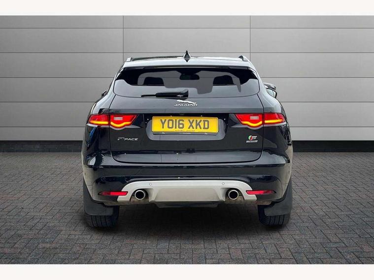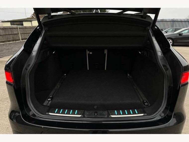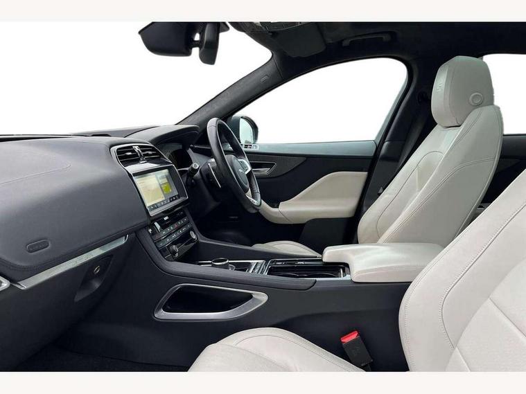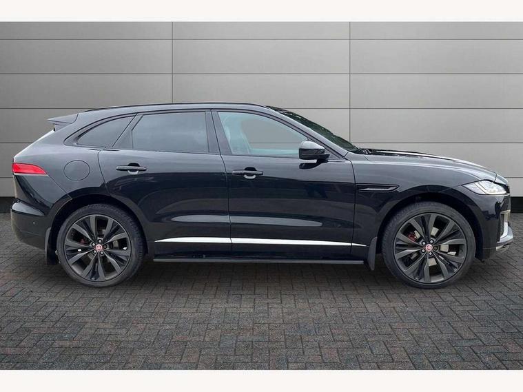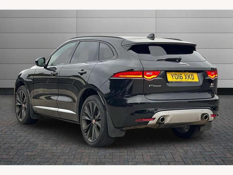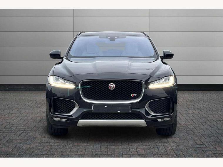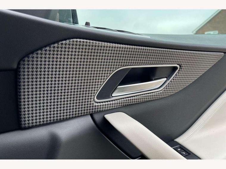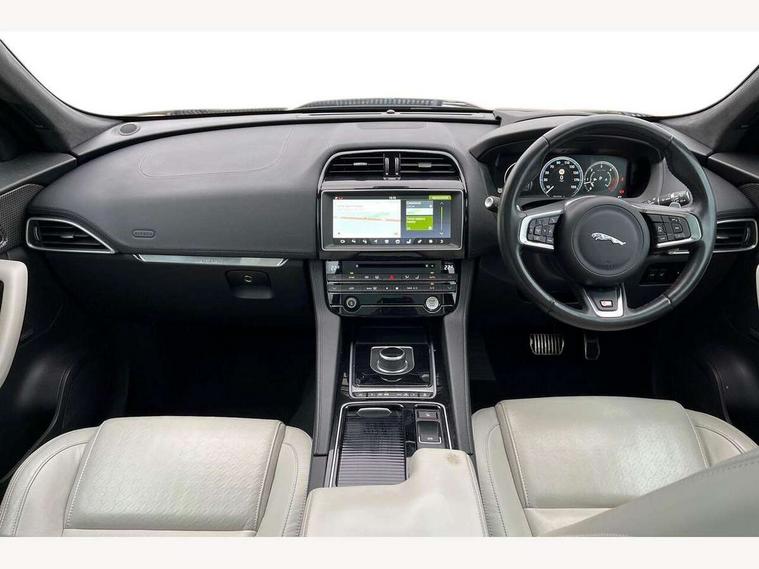 360 Park distance control, Auto speed limiter, Cruise control, Front parking aid, Gesture tailgate, Lane departure warning system, Outside temperature gauge, Park assist - Parallel, perpendicular and parking exit, Power tailgate, Rear parking aid, Reversing camera, Service interval indicator, TFT Virtual Instrument Panel, Touch screen display, Traffic sign recognition, Trip computer, Variable PAS, Adaptive dynamics, All terrain progress control, Bluetooth connectivity including audio streaming, DAB Digital radio, Dynamic volume control, Meridian 825W surround sound system, USB/iPod connection, 'S' Body kit, Adaptive LED headlights with LED signature daytime running lights, Approach Illumination, Auto dimming rear view mirror, Automatic headlights, Body colour bumpers, Body colour door mirrors, Electric folding heated auto dimming door mirrors + Signature approach lamp, Electric front/rear windows with one touch/auto up/down, Fixed panoramic glass roof, Follow me home headlights, Front fog lights, Gloss black grille with satin chrome surround, Gloss black roof bars, Gloss black side power vents, Gloss black side window surrounds, Green tinted heat insulating glass, Headlight washers, Heated front windscreen, Heated rear window with timer, High gloss black roof rails, LED tail lights, Metallic paint, Privacy glass, Rain sensor windscreen wipers, Rear wiper, Trailer stability assist, Variable front intermittent wipers, 10 way electric power front seats, 12V power point front/rear, 12V power point in luggage area, 2nd row air vents, 3 rear headrests, 40:20:40 split folding rear bench seat, Carpet mats, Centre console storage box, Customer configurable interior mood lighting, Dual zone automatic climate control, Fold flat front seats, Front centre armrest with storage compartment, Heated front seats, Illuminated metal tread plates and metal load space scuff plates, Independent rear seat recline, ISOFIX on outer rear seats, Jaguar sense, JaguarDrive selector, Jet headlining, Leather multi function steering wheel, Lockable glovebox, Luggage area rail system, Overhead console with sunglasses holder, Rear armrest with cupholder, Reversible boot floor, Shopping hook in boot, Sports pedals, Steering wheel gearshift paddles, Suede cloth headlining, Tie down hooks in luggage area, Twin front covered cupholders, Windsor leather upholstery, Head up display pack - F-Pace, Incontrol connect pack - F-Pace, 350mm front brakes, 3x3 point rear seatbelts, ABS, Anti-whiplash front headrests, Autonomous emergency braking (AEB) with forward facing camera, Brake pad warning light, Driver/Front Passenger airbags, DSC - Dynamic Stability Control, Electronic parking brake, Emergency brake assist, Front and rear curtain airbags, Front and rear seatbelt reminder, Front passenger seat occupancy sensor, Front side airbags, Hill start assist, Power child locks, Red painted brake calipers, Torque vectoring brake, Traction control, Tyre pressure monitoring system, Activity key, Immobiliser, Keyless Start, Perimeter alarm, Smart key entry system, Valet mode, Gloss black veneer with houndstooth pattern, 22" 15 spoke grey helix dark inserts alloy wheels, Steel space saver spare wheel,