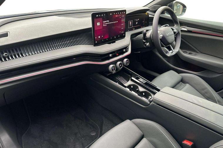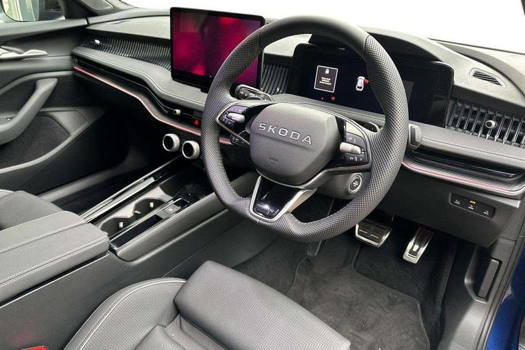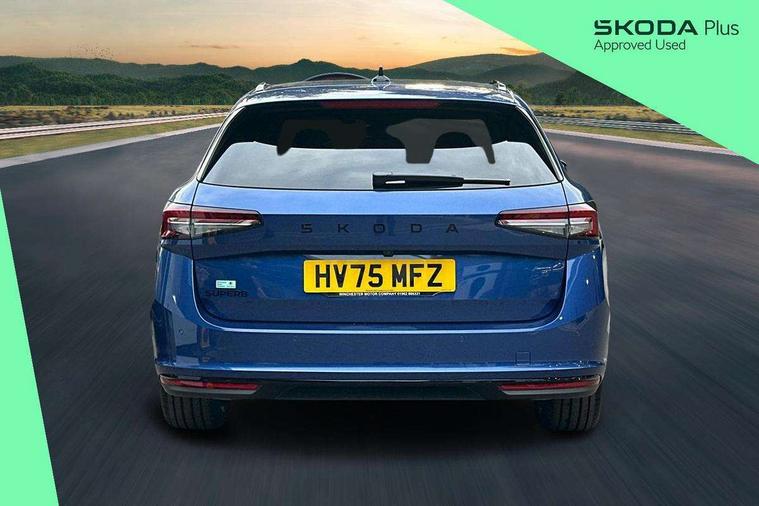 13" touchscreen display with satellite navigation, 4x USB-C ports (2x in front centre console and 2x in rear) (45W), Adaptive cruise control with speed assist, lane assist plus and traffic tram assist, Blind spot detection with door exit warning, Bluetooth system, CareConnect and Emergency Call, ChatGPT functionality, Driver fatigue sensor, Front assist with extended predictive pedestrian protection, Front cross traffic assist, PAS, Quick start all heating software functionality, Stop/start engine system, Traffic sign recognition, Turn assist with evasive assistance, Virtual Cockpit - 10.25" digital display, Voice control system, Washer for rear camera, Wireless charging for one smartphone (15W) with cooling function, Wireless smartlink apple carplay, SmartLink+ android auto, Dynamic chassis control plus with progressive dynamic steering, DAB Digital radio, Display cleaner, FM radio connection, Web radio connection, Acoustic side windows and interior noise suppression, Backdrop lighting, Black exterior styling window and grille surrounds, Black roof rails, Body colour door handles, Dynamic range control with poor weather light and integrated fog light, Electrically adjustable, heated, folding and driver side auto-dimming door mirrors with memory function, integrated indicators and logo projection, Frameless auto-dimming rear view mirror with USB-C, Gloss black door mirrors, Ice scraper in fuel tank cap, LED 3rd brake light, Light assist with High beam control, Light assistant (coming/leaving home/tunnel light), Privacy glass, Rear fog lights (x2), Rear roof spoiler, Rear side wing doors, Rear windscreen wiper, Skoda lettering in black, Sportline badging, Sports bumpers, Windscreen wipers with rain sensor, 12V socket 1x centre console 1x boot, 14-way electrically adjustable, memory, front seats with 4-way pneumatic lumbar support, and extendable thigh support with smart comfort entry aid, 2x cargo elements in boot, 2x light in boot, 3 seat bench in 2nd row, 4x foldable bag hooks in boot, 60:40 Split folding rear seats, Aluminium pedals, Bottle holders in the front doors 1.5 litre bottle and rear 1.5 litre bottle, Cup holder in front with easy open mat, Front armrest with storage box, Front sports seats, Heated and ventilated front seats, Height adjustable front and rear head restraints, Illuminated glovebox, Interior lights with control switches, Isofix child seat fittings in outer rear and front passenger seats, LED front and rear reading lights, Single front passenger seat, Skoda lettering on steering wheel, Storage compartment with cover, Storage pockets on back of front seats, Sun visors with illuminated vanity mirrors, Ticket holder on A Pillar, Tri zone climate control, Umbrella in driver's door, Light and view package - Superb, Transport package - Superb Estate, 3 rear seatbelts, 8 Airbags - Front driver and passenger, front side driver and passenger, centre, curtain front and rear, drivers knee, Crew protect assist, Driver and passenger seatbelts with warning light, Electronic parking brake, ESC including ABS, EBV, MSR, ASR, EDS, HBA, DSR, RBS, CBC, multi-collision brake (MKB) and Auto hold, Hill hold assist, Power operated child lock in rear doors, Alarm with interior monitoring tilt sensor and back up horn, Backrest remote release from trunk, Electronic engine immobiliser, Keyless start/stop, Remote central locking with SAFE system, Third key, Walk away locking, Decorative front door sills, 19" Torcular polished black alloy wheels with anti theft wheel bolts,