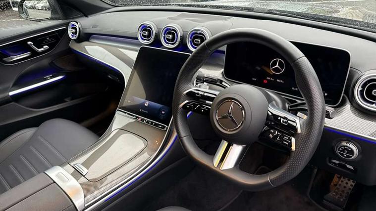 11.9" high resolution multimedia colour display, 12.3" digital instrument cluster display, Active lane keeping assist, Active parking assist with PARKTRONIC, Attention assist, Blind spot assist, Cruise control with speedtronic variable speed limiter, DYNAMIC SELECT with a choice of driving modes (Comfort, ECO, Sport, Sport+, Individual), E-call, Extended MBUX functions, Finger print sensor, Fluorescent jacket for driver, Hard disc navigation, MBUX navigation premium, Mercedes me remote services, Outside temperature gauge, Service indicator (ASSYST), Smartphone integration, Sports direct steer speed sensitive steering, Status display for rear seat belts in instrument cluster, Traffic sign assist, Wireless charging system for mobile devices, 66 litre fuel tank, 9G TRONIC 9 speed automatic transmission, Petrol Particulate Filter, Sport suspension, DAB Digital radio, MBUX multimedia system, Adaptive brake lights, Adaptive high beam assist, AMG body styling front apron, rear apron and side skirts, AMG Line exterior, Body coloured bumpers, Body coloured door mirrors, Electric windows with one touch opening/closing and obstruction sensors, Electrically adjustable and heated door mirrors, Heat insulating dark tinted glass, LED daytime running lights, LED high performance headlamps, LED Indicators, LED tail lights, LED third brake light, Radiator diamond grille with integrated Mercedes Benz star with chrome pins, Rain sensor with automatic windscreen wiper activation, Rear boot, Rear side wing doors, Two visible exhaust pipes integrated into rear bumper, 3 seat bench in 2nd row, 40:20:40 split folding rear bench seat, Ambient lighting premium, Ambient lighting with projection of brand logo, AMG floor mats, AMG line interior, Artico man-made leather upholstery, Auto Mercedes-Benz child seat recognition sensor, Black roof liner, Double cupholder in centre console, Electrically height/reach adjustable steering column, Folding rear seat backrest, Front and rear head restraints, Gearshift paddles on steering wheel, Heated front seats, Illuminated door sills with Mercedes Benz lettering, Illuminated glove compartment stowage, Multifunction sports steering wheel in nappa leather, Rear top tether child seat ISOFIX attachment, Single front passenger seat, Sports seats, Sunvisors with illuminated vanity mirrors, THERMATIC 2 zone automatic climate control, Interior light package - C Class, Memory package - C Class, Mirror package - C Class, Parking package with reversing camera - C Class, Stowage space pack - C Class, USB package plus - C Class, 3 rear 3 point seatbelts, Active bonnet pedestrian safety measure which detects an impact and raises bonnet, Active brake assist, Adaptive brake system with HOLD function and brake drying in the wet, Anti-lock braking system (ABS), Black seat belts, Brake calipers with Mercedes-Benz lettering + perforated front brake discs, Child proof door locks, Drivers knee airbag, Drivers pelvis airbag, Dual stage driver/passenger airbags, Electric parking brake, Electronic Stability Programme (ESP), Front centre airbag between driver and front passenger seats, Front side airbags, Tyre pressure monitoring system, Warning triangle and first aid kit, Window airbags for driver, front passenger and rear passenger, Antitheft alarm system, Interior monitoring system and Increased antitheft protection, Central locking with interior switch, automatic locking and crash sensor with emergency opening function, Chrome surround in electric key, Urban guard vehicle protection plus, Dashboard, instrument panel and beltlines in ARTICO man made leather in nappa look, Metal structure trim element with centre console in metal structure finish, 18" AMG 5 spoke light-alloy wheels painted in tantalite grey with high sheen finish, TIREFIT with tyre inflation compressor,
