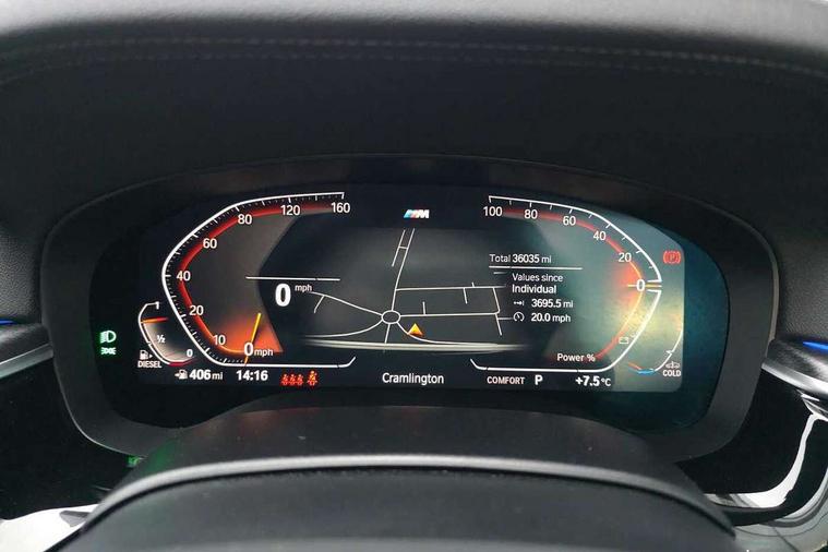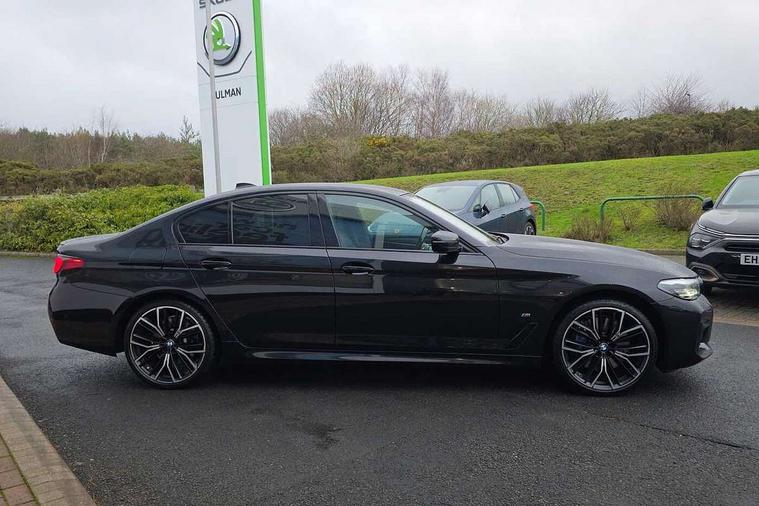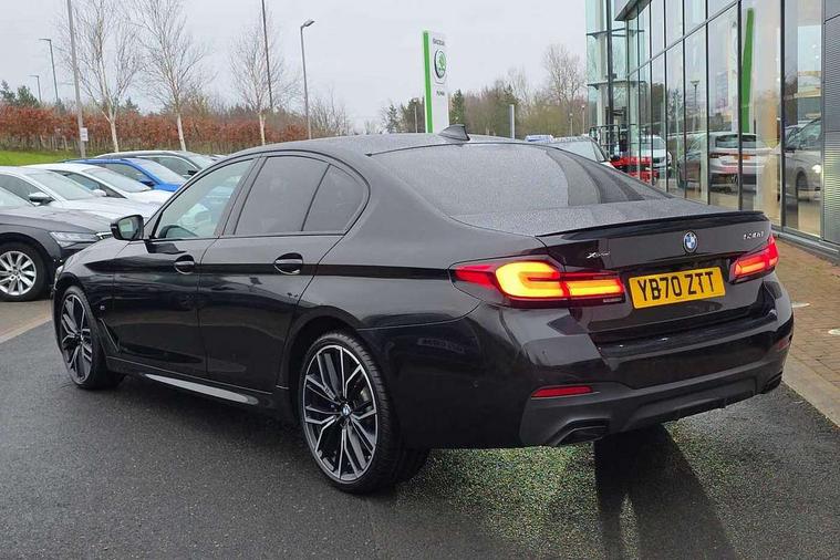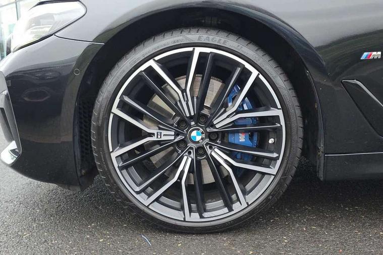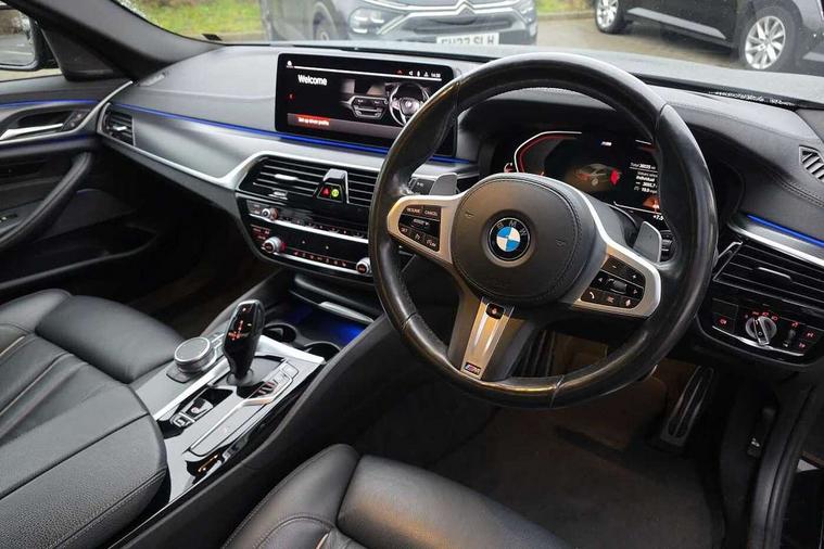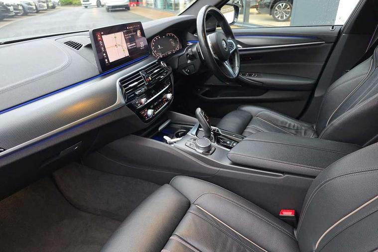 32GB hard disc drive (HDD) memory, Active Guard, BMW ConnectedDrive online services, BMW Live Cockpit Professional sat nav system with 12.3" instrument display and high resolution control display, BMW Teleservices, Brake pad wear indicator, Cruise control with brake assist, Driving experience switch, Electric Power Steering (EPS) with Servotronic, iDrive touch controller with shortcut buttons, Intelligent emergency call, Multifunctional instrument panel, Oil sensor for level and grade, On board computer inc. average speed, fuel consumption, liquid crystal Info display, journey computer, outside temperature display, personal profile, On-board diagnosis - OBD, Powered by Operating System 7.0, Service interval indicator, Speed limiting function, Stop/start button, 48V Mild hybrid technology, Diesel particulate filter, Drive performance control with ECO PRO comfort + sport mode, Engine cover with twin turbo designation, M sport suspension, Steptronic sport transmission with gearshift paddle switches on steering wheel, DAB Digital radio, Favourite buttons, Acoustic glazing, All round anti-corrosion system, Automatically dimming rear view mirror, BMW Individual high gloss shadow line includes exterior mirror frame, window frame surround, B pillar finish, air breather in high gloss black, Body colour door handles, Body coloured bumpers, Door handle illumination, Dynamic brake lights with LED technology, Electric front and rear windows with fingertip open/close + anti-trap facility and comfort closing function, Electrically adjustable and heated exterior mirrors includes integrated direction indicators and automatic parking function, Follow me home headlight function, Heated windscreen washer jets, High gloss black active air stream kidney grille, Interior rear view electrochromatic mirror with automatic anti dazzle function, LED daytime running lights, LED third brake light, M designation on front side panels, left and right in chrome, Rain sensor with automatic headlight activation, Trapezoidal visible exhaust tailpipes, xDrive designation on tailgate, 12V power socket in front and rear, Armrest - front and rear integrated door trim, centre console includes storage compartment, rear centre includes 2 cupholders, Child seat ISOFIX attachment with rear outer seats includes top tether, Cup holders (2 front and 2 rear), Front and rear footwell lights, Front reading lights, Height and length adjustable steering column and activation via lateral lever on the steering column, Illuminated M door sill finishers, Lockable glove compartment with light, M specific pedals, M specific velour floor mats, Multifunction controls for leather steering wheel, Rear headrests, Three spoke sport M leather steering wheel, Ambient lighting pack - 5 Series, Connected package professional - 5 Series, Expanded exterior mirror pack - 5 Series, M Aerodynamic pack - 5 Series, 3x3 point rear seatbelts, Airbags - driver/front passenger, rear and side, first and second row seats head airbags, front passenger seat airbag deactivation + knee airbag, Anti-lock braking system (ABS), Automatic Stability Control (ASC), Brake assist function, Brake energy regeneration, Cornering brake control (CBC), Crash sensor activating central locking release, hazard warning lights, fuel cut off and interior lighting, Deformation zones - front and rear with door reinforcements and bumpers up to 2.5 mph, DSC - Dynamic Stability Control, Dynamic brake control, Dynamic Traction Control - DTC, Electromechanical parking brake with automatic drive away release and auto hold function, Electronic brake force distribution, Engine drag torque control, Front and rear brake discs with interior ventilation, Front head restraints with anti-whiplash, Hill start assist, M Sport brakes in high gloss blue painted brake callipers with M designation, Mechanical child proof lock on rear doors, Passive protection for pedestrians, Side impact protection, Three point seat belts for all four seats, Two tone horn, Tyre pressure indicator, Warning triangle and first aid kit, Alarm system (Thatcham 1) with remote control and electronic engine immobiliser, Locking wheel bolts,