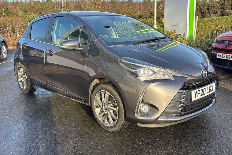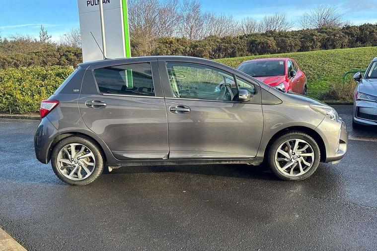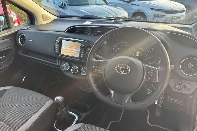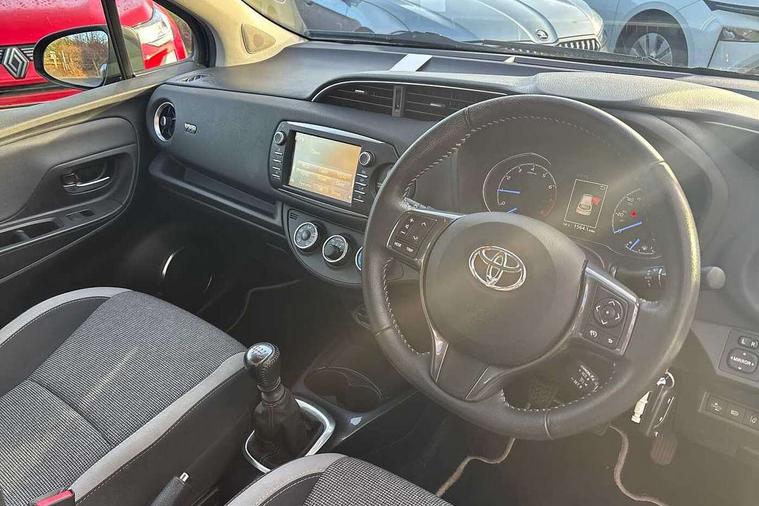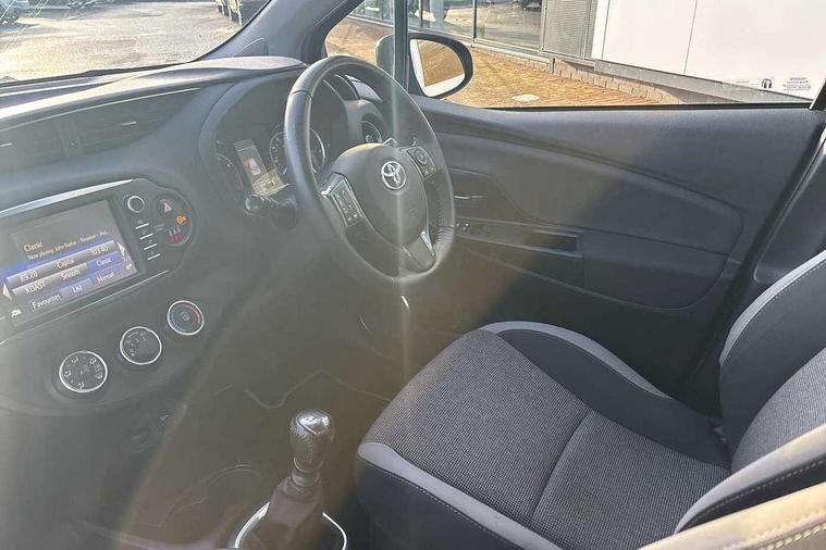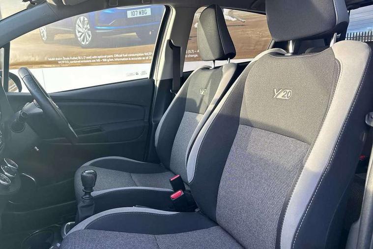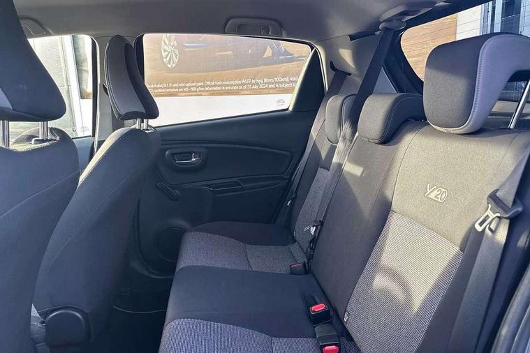 4.2" coloured LED TFT multi information display, Analogue speedometer, Analogue tachometer, Auto speed limiter, Bluetooth connectivity, Cruise control, External temperature gauge, Fuel indicator with low level warning, Key reminder warning, Lights on warning, Multi information display switches on steering wheel, Power Steering, Reversing camera, Trip computer, 6 speakers, Auxiliary input socket, Steering wheel mounted audio/telephone switches, Toyota Touch 2 with DAB, USB connection, Auto up and down function on drivers window, Automatic wipers, Bi-tone grey roof, Black lower front grille, Body colour bumpers, Body colour door handles, C pillar decal, Daytime running lights, Electric adjustable heated door mirrors, Electric front windows, Follow me home headlights, Front fog lights, Grey contrasting colour door mirrors, Grey door moulding, Grey door side sills, Grey front grille and fogs, Headlight cut-off reminder, LED High mounted stop lamp, Manual dimming rear view mirror, Privacy glass, Projector headlights, Rain sensitive windscreen wipers, Rear combination lights bulb type, Rear window defogger, Rear wiper, Turning signal integrated indicators in door mirrors, Y20 Badging, 12v power outlet - front, 3 adjustable rear headrests, 3 spoke leather steering wheel, 60/40 split folding rear seat, Active headrests, Boot light, Data Communication Module (DCM) connected services, Driver and front passenger personal light, Driver and front passenger Whiplash Injury Lessening seats, Fabric upholstery, Front and rear cup holders, Front map reading lights, Front seats with lumbar support, Glovebox, Height adjustable driver's seat, Height adjustable front head restraints, Illuminated entry system, Isofix seat fixing, Leather gearshift, Manual air conditioning, Map pockets on the backs of the front seats, Pollen filter, Removable rear parcel shelf, Sliding front seats, Soft touch inner door garnish, Tilt/telescopic steering column, Y20 badge interior and in seat trim, 3 point seatbelts on all rear seats, ABS+EBD+Brake assist, Collision mitigation braking system, Emergency brake light system (EBS), Front passenger airbag on/off switch, Front seatbelt reminder, Height adjustable front seatbelts with pre-tensioners and load limiters, Hill start assist control (HAC), Rear child proof door locks, Rear seat belt reminder, Road sign information display, Seatbelt warning lamp and buzzer, Supplemental restraint system (SRS) airbags - 7 airbags including driver, front passenger, curtain, side and knee airbags, Toyota safety sense including Road sign assist, Pre collision system, auto high beam and lane departure alert), Tyre pressure warning system, Vehicle stability control VSC + traction control, Engine immobiliser, Power and remote door locking, Interior satin accents, Soft touch instrument panel, 16" 10 spoke grey machined alloy wheels, Space saver spare wheel,