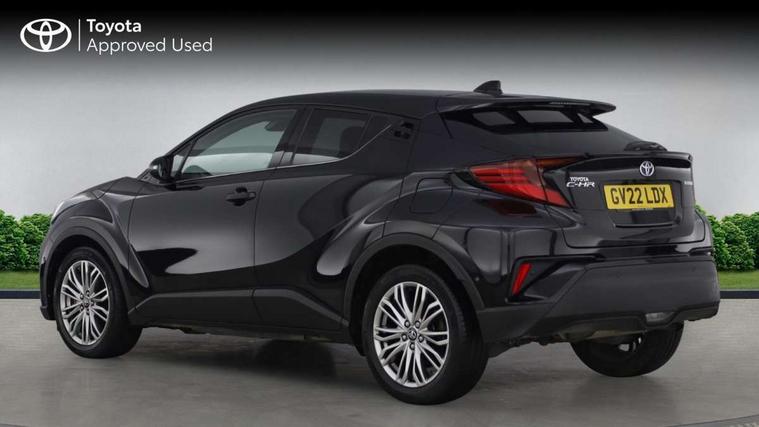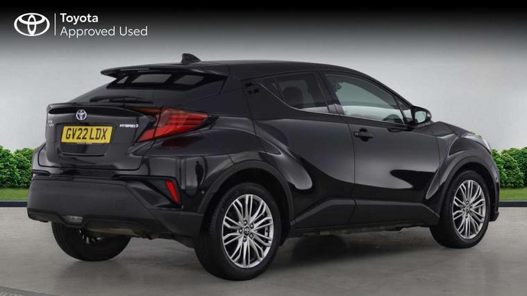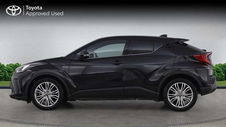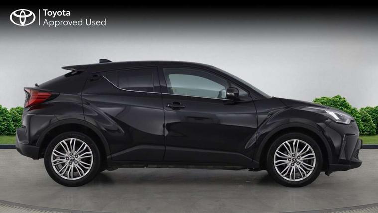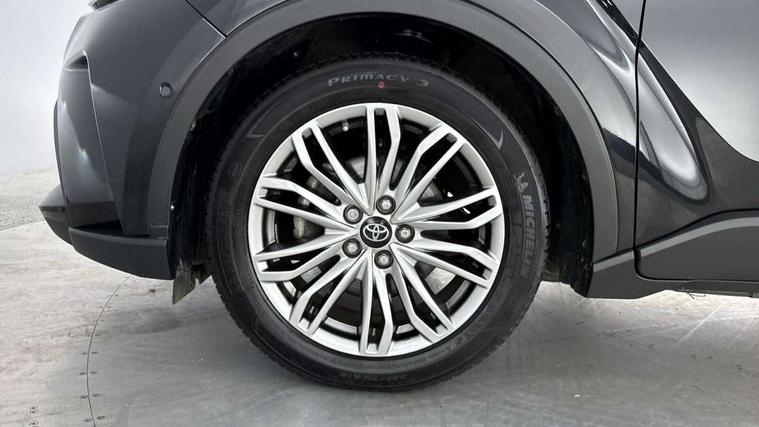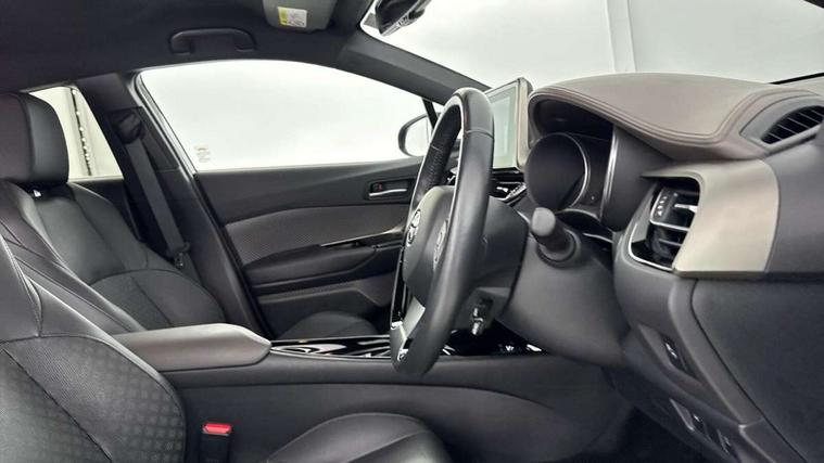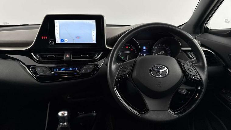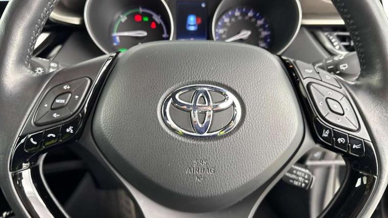 4.2" coloured TFT screen for multi-information display, Adaptive cruise control, Bluetooth connectivity, E-call, Electric power steering, Hybrid system indicator, Lane departure alert with steering control, Remote boot door release in cabin, Remote boot door release in key, Reversing camera, Road sign assist - RSA, Simple Intelligent parking assist, Touch 2 Go navigation system, Trip computer, Voice recognition, Vehicle Stability Control (VSC), 6 speakers, AM/FM radio, DAB Radio (Digital Audio Broadcasting), Toyota touch 2 multimedia system with 8" display, USB connector, Wi-fi connectivity, Adaptive front light system, Adaptive LED Headlights, Anti-jam protection on power windows, Auto high beam, Auto up and down function on all power windows, Automatic headlight levelling, Automatic headlights, Automatic headlights cut-off, Black and body coloured rear bumper, Black upper front grille, Body colour door handles, Body colour door mirrors, Body colour front spoiler lip, Body coloured front bumper, Boot door release with push button, Electric heated door mirrors, Follow me home headlights, Front and rear power windows, Honeycomb lower front grille, LED daytime running lights, LED fog lights, LED front light guide, LED High mounted stop light, LED rear brake lights, LED rear combination lights, Noise reduction layer on front windows and windscreen, Power adjustable door mirrors, Privacy glass, Rain sensor, Rear sequential indicators, Rear side wing doors, Rear spoiler, Rear tailgate, Rear window defogger, Rear window wiper, Shark fin antenna, UV-filter on driver and passenger windows, UV-filter on rear windows, 12v power outlet - front, 3 rear headrests, 3 seat bench in 2nd row, 3 spoke leather steering wheel, 60/40 split folding rear seat, Adjustable rear headrests, Adjustable speed limiter switch on steering wheel, Assist grips front and centre pillar, Audio and telephone switches on steering wheel, Black front door assist grips, Blue ambient lighting on front cup holders, Blue ambient lighting on front doors, Boot light, Chrome interior door handles, Driver and front passenger personal light, Driver and front passenger Whiplash Injury Lessening seats, Driver and passenger seatback pockets, Dual zone automatic air conditioning, Floor mats, Front cupholders, Front head restraints, Front sports seats, Glovebox with internal light, Hard tonneau cover, Heated driver and front passenger seats, Heated steering wheel, Hooks for luggage holding net, Humidifying Nanoe air purifier, Illuminated entry system, Isofix attachments on outer rear seats, Leather gearshift, Light on driver sun visor, Light on passenger sun visor, Manual telescopic steering wheel, Manual tilt steering wheel, Microphone on front personal light, Mirror on driver sun visor, Mirror on passenger sun visor, Multimedia switches on steering wheel, Pollen filter, Power adjustable lumbar support on driver seat, Power tilting cushion on driver seat, Shopping bag hooks, Single front passenger seat, Slow opening on lower glovebox, Voice recognition switch on steering wheel, Leather pack - C-HR, Tech with parking sensor pack - C-HR, 16 Disk front wheel brake, 3x3 point rear seatbelts, ABS+EBD+Brake assist, Electronic parking brake, Front and rear seatbelt reminder, Front passenger airbag on/off switch, Hill start assist control (HAC), Pre collision system with pedestrian detection, Pre-tensioners and force limiters, Rear door child safety locks, SRS Airbags - Driver + Front passenger, front side, front and rear curtain and driver's knee airbags, Toyota safety sense, Tyre pressure monitoring system, Acoustic vehicle alert system (AVAS), Glass-breaking alarm sensors, Immobiliser, Intrusion alarm, Intrusion sensor, Motion sensor alarm, Power door locks, Power passenger window lock, Remote central locking, Black lower dashboard, Dark brown upper dashboard, Piano black console, Silver deco line on upper dashboard, Tyre repair kit,