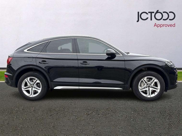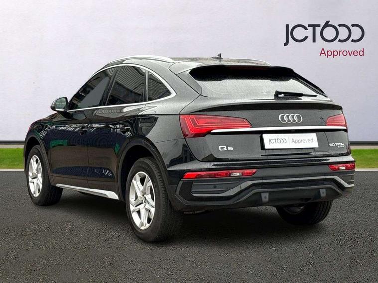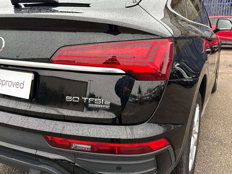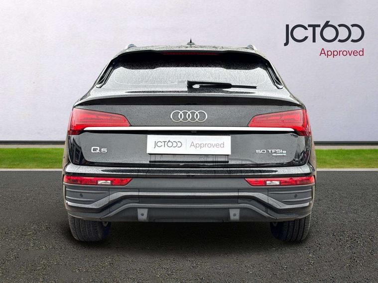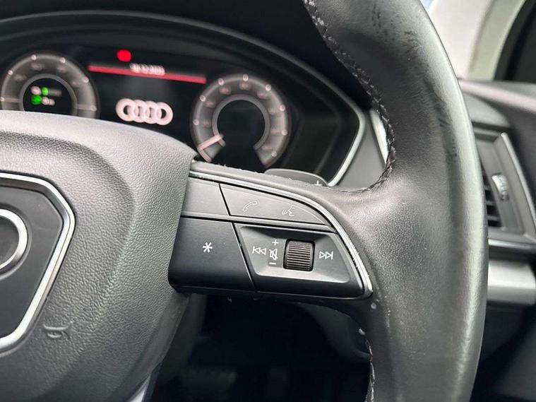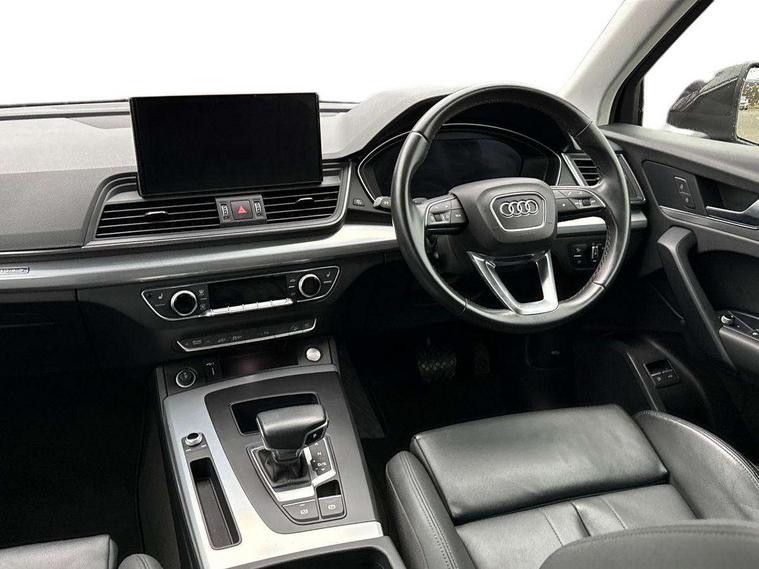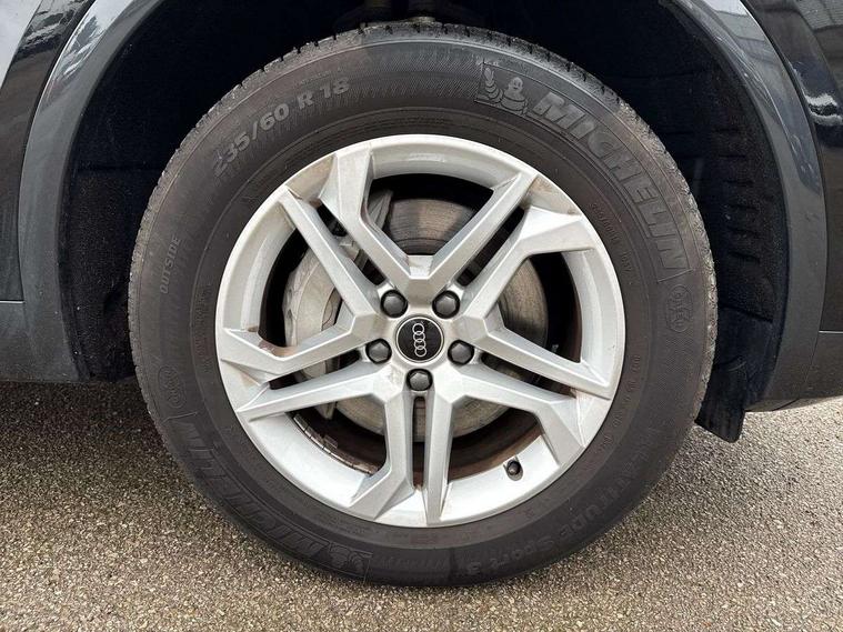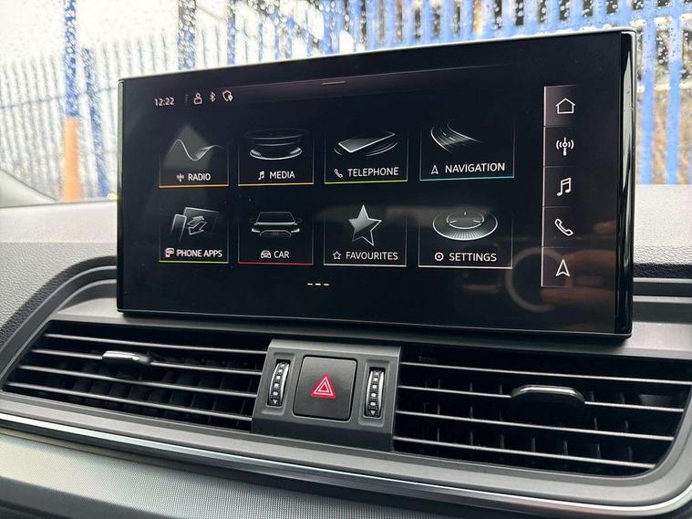 Audi connect safety and service (e-call), Audi connect with Amazon Alexa Integration, Audi drive select, Audi virtual cockpit plus with 12.3" screen and three different layout designs, Audi wireless smartphone interface, Automatic start-stop system with coasting functionality and efficiency programme, Bluetooth interface, Cruise control + speed limiter, Electro - mechanical power assisted steering, MMI navigation plus with 10.1" touch screen, Power tailgate, Reversing camera, Service interval indicator, Voice control system with Audi hotword activation "Hey Audi", 3 pin 10 amp domestic charging cable, 7.4 kW onboard charger, Dynamic suspension, Quattro on demand, Type 2 mode 3 22kW 32 amp charging cable, Type 2 socket for AC charging, DAB Digital radio, Acoustic windscreen, Air inlets in matt titanium black with blades in matt aluminium silver, Aluminium roof rails, Auto dimming door mirrors, Auto dimming rear view mirror, Automatic headlights and windscreen wipers, Body colour bumpers, Body colour door mirrors, Chrome plated exhaust trims, Daytime running lights, Door sills in Selenite silver, Electric adjustable/heated/folding door mirrors, Front and rear electric windows, High level LED brake light, LED headlights and LED tail lights, Lower bumpers painted in contrast Manhattan grey, Matt selenite silver underbody protection, Matt twilight grey radiator grille with chrome vertical struts, Rear chrome trim strip below lights, Rear diffuser strip in selenite silver, Rear side wing doors, Rear spoiler, Rear wiper, Roof bars, 2 x USB charging port with aux input socket, 3 rear headrests, 3 spoke multifunction leather steering wheel with shift paddles, 40:20:40 split folding 3 rear bench seat in 2nd row with rear centre armrest, Comfort front centre armrest, Deluxe 3 zone electronic climate control, Door sills trims with aluminium inlays, Front/rear floor mats, Heated front seats, Height adjustable front head restraints, Height/reach adjustable steering column, ISOFIX child seat mounting and top tether, Manual seat adjustment with 4-way electric lumbar support, Rear seat bench plus, Silver cloth headlining, Single front passenger seat, Sunvisors with vanity mirrors, Tool kit, Trunk roller cover, Twin leather upholstery + front sports seats, High gloss pack - Q5, LED interior light pack - Q5, 3 point seatbelts on all seats, 6 airbags - Driver, front passenger, curtain and side airbags, Electrically operated child locks on rear doors, Electromechanical parking brake, Electronic stabilisation control including ABS, ASR and EDL, Front passenger airbag deactivation, Hill descent control, Hill hold assist, Multi collision brake assist, Pop-up bonnet for pedestrian protection, Pre sense city, Seat belt force limiter, Seatbelt monitoring, Tyre pressure warning, Warning triangle and first aid kit, Anti theft alarm, Anti-theft wheel bolts, Keyless Go access/ignition system, Remote central locking, Aluminium rhombus inlay, 18" 5 twin spoke dynamic design alloy wheels, Tyre repair kit,