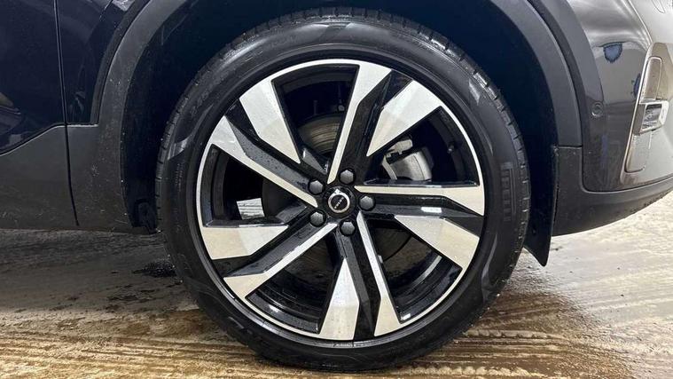 12.3" Progressive Driver Display, 360 degree surround view parking camera with side proximity sensors, 9" centre console portrait touch screen, Adjustable steering wheel force, Android auto (Wired), Apple carplay (wired), Bluetooth handsfree system, Driver alert control, Driver assistance (pilot assist and adaptive cruise control), Driver awareness - Blind spot information system with steer assist, cross traffic alert with autobrake and rear collision warning and mitigation, E-call, Front park assist, Google automotive services - Enabled entertainment apps, navigation with google maps, voice recognition with google assistant, Hands free power tailgate, Intelligent speed assistance, Lane keeping aid, Oncoming Lane Mitigation, Rear park assist, Speed sensitive steering, Volvo cars services with app - Driving journal, emergency and breakdown call, engine remote start, remote door locking/unlocking and vehicle dashboard, Wireless/Inductive Mobile Phone Charging, Automatic transmission with start/stop and manual change functions, Dynamic chassis, DAB Digital radio, Premium Sound by Harman Kardon, Dolby Pro Logic II Surround Sound, Dirac Unison, 12 speakers/600W and subwoofer, Steering wheel mounted remote controls, Active bending pixel LED headlights with adaptive shadow technology, Active high beam incorporating daytime running lights, Adaptive brake lights with high level LED brake lights, Auto dimming feature for exterior door mirrors, Auto dimming interior mirror, Automatic headlamp levelling, Dark tinted windows - rear side windows and rear screen, Front aluminium tread plates, Front and rear electric windows, Headlight cleaning system, High gloss black front and rear skid plate, High gloss black front bumper deco, High gloss black mesh front grille with high gloss black surround, High gloss black window trim, Home safe and approach lighting, Integrated roof rails in high gloss black, LED front fog lights with cornering function, Power glass tilt and slide panoramic sunroof with sun curtain, Puddle lights, Rain sensor with automatic windscreen wiper activation, Rear side wing doors, Rear wiper, Roof antenna, Roof spoiler, Visible VIN plate, 12V socket in front tunnel console and luggage compartment, 2-Zone electronic climate control with CleanZone air quality system and pollen filter, 3 seat bench in 2nd row, 3 Spoke tailored steering wheel with chrome trim, 60/40 versatile split folding rear seat, Centre console cupholders and storage, Flexible load floor and grocery bag holder, Floor mats, Front cabin courtesy lights, Front door pocket, front cupholder, ambient front door, rear reading, rear courtesy, instrument panel and tailgate lighting, Front footwell illumination, Front headrests, Front reading lights, Front seat cushion extensions, Front side step illumination (under door), Glovebox bag hook, Heated front seats, Height/reach adjustable steering column, High gloss centre tunnel deco, Illuminated glovebox, Illuminated luggage compartment, Illuminated vanity mirrors + ticket holder, Integrated waste bin, Isofix attachments on outer rear seats, Load cover, Load protection net, Multi directional lumbar support for driver and passenger seat, Power driver seat with memory + exterior mirrors memory, Power folding rear headrests, Power passenger seat, Rear armrest with cupholders, Single front passenger seat, Underfloor cargo storage, Climate pack without heated front seats - XC40, 3x3 point rear seatbelts, City safety with steering support with Pedestrian + cyclist + front collision warning with full auto brake and rear auto brake, Driver and passenger airbags, Drivers knee airbag, Electronic parking brake with auto hold, First aid kit, Front and outer rear seatbelt reminder and pretensioners, Front seats SIPS airbags, Hill descent control, Hill start assist, Inflatable curtain, Passenger airbag cut-off device, Power child locks on rear doors, Road sign information display, Run off Road Protection, SIPS (Side Impact Protection System), Slippery road and hazard light alert, Stability and Traction Control with Spin control, Engine Drag Control and Corner Traction Control, Tyre pressure monitoring system, Vehicle deceleration control with Anti-lock Brake System, Electronic Brake Distribution and Emergency Brake Assist, Warning triangle, WHIPS whiplash protection system - front, 2 x Key integrated remote control central locking including with deadlocking system and auto open/close windows and sunroof, Anti-theft alarm including immobiliser/volume sensor + level sensor, Keyless drive includes keyless entry and keyless start, Locking wheel nuts,