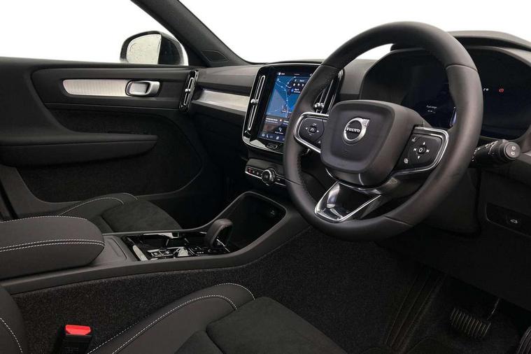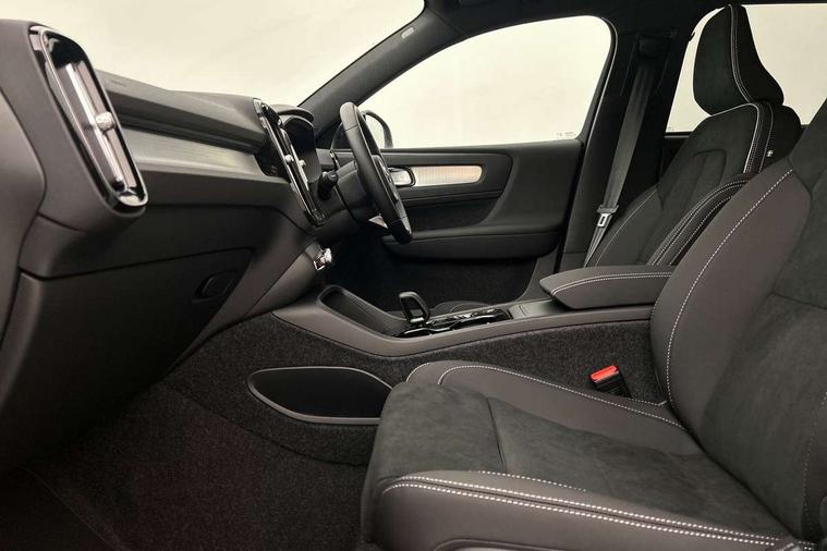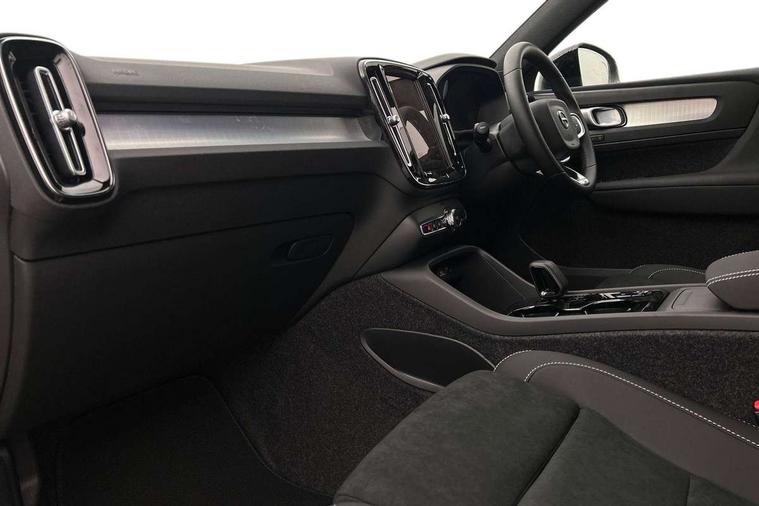 12.3" Progressive Driver Display, 9" centre console portrait touch screen, Adjustable steering wheel force, Android auto (Wired), Apple carplay (wired), Bluetooth handsfree system, Driver alert control, Driver assistance (pilot assist and adaptive cruise control), Driver awareness - Blind spot information system with steer assist, cross traffic alert with autobrake and rear collision warning and mitigation, E-call, Front and rear parking sensors, Front park assist, Google automotive services - Enabled entertainment apps, navigation with google maps, voice recognition with google assistant, Hands free power tailgate, Intelligent speed assistance, Lane keeping aid, Oncoming Lane Mitigation, Speed sensitive steering, Volvo cars services with app - Driving journal, emergency and breakdown call, engine remote start, remote door locking/unlocking and vehicle dashboard, Wireless/Inductive Mobile Phone Charging, Automatic transmission with start/stop and manual change functions, Dynamic chassis, DAB Digital radio, Steering wheel mounted remote controls, Adaptive brake lights with high level LED brake lights, Auto dimming feature for exterior door mirrors, Auto dimming interior mirror, Auto folding and heated power door mirrors, Automatic headlamp levelling, Automatic LED Headlights + Active high beam incorporating daytime running lights, Dark tinted windows - rear side windows and rear screen, Front aluminium tread plates, Front and rear electric windows, High gloss black front and rear skid plate, High gloss black front bumper deco, High gloss black front grille strikethrough and ironmark, High gloss black rear model, engine and volvo logo badges, High gloss black window trim, Home safe and approach lighting, Integrated roof rails in high gloss black, LED front fog lights, Puddle lights, Rain sensor with automatic windscreen wiper activation, Rear side wing doors, Rear wiper, Roof antenna, Roof spoiler, Visible VIN plate, 12V socket in front tunnel console and luggage compartment, 2-Zone electronic climate control with CleanZone air quality system and pollen filter, 3 seat bench in 2nd row, 3 Spoke tailored steering wheel with chrome trim, 60/40 versatile split folding rear seat, Centre console cupholders and storage, Charcoal carpet and floor mats, Charcoal headlining, Connect suede textile/microtech upholstery, Flexible load floor and grocery bag holder, Front headrests, Front seat cushion extensions, Glovebox bag hook, Heated front seats, Height adjustable passenger seat, Height/reach adjustable steering column, High gloss centre tunnel deco, High level illumination - Front door pocket, front side step (under door), tailgate, instrument panel, front door inlay, rear courtesy&reading lights, Integrated waste bin, Isofix attachments on outer rear seats, Load cover, Load protection net, Mid level illumination - Front footwell, luggage & glovebox compartment, front cabin courtesy & reading lights, illuminated vanity mirrors+ticket holder, Multi directional lumbar support for driver and passenger seat, Power driver seat with memory + exterior mirrors memory, Rear armrest with cupholders, Rear headrests, Single front passenger seat, Underfloor luggage compartment storage, Climate pack without heated front seats - XC40, 3x3 point rear seatbelts, City safety with steering support with Pedestrian + cyclist + front collision warning with full auto brake and rear auto brake, Driver and passenger airbags, Drivers knee airbag, Electronic parking brake with auto hold, First aid kit, Front and outer rear seatbelt reminder and pretensioners, Front seats SIPS airbags, Hill descent control - Off-road drive mode, Hill start assist, IC (Inflatable Curtains) - Full Length, Passenger airbag cut-off device, Power child locks on rear doors, Road sign information display, Run off Road Protection, SIPS (Side Impact Protection System), Slippery road and hazard light alert, Stability and Traction Control with Spin control, Engine Drag Control and Corner Traction Control, Tyre pressure monitoring system, Vehicle deceleration control with Anti-lock Brake System, Electronic Brake Distribution and Emergency Brake Assist, Warning triangle, WHIPS whiplash protection system - front, 2 x Key integrated remote control central locking including with deadlocking system and auto open/close windows, Anti-theft alarm including immobiliser/volume sensor + level sensor, Keyless drive includes keyless entry and keyless start, Locking wheel nuts, 20" 5 spoke high gloss black alloy wheels,