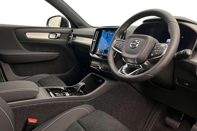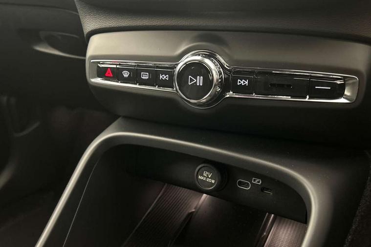 12.3" Progressive Driver Display, 9" centre console portrait touch screen, Adjustable steering wheel force, Android auto (Wired), Apple carplay (wired), Bluetooth handsfree system, Driver alert control, Driver assistance (pilot assist and adaptive cruise control), Driver awareness - Blind spot information system with steer assist, cross traffic alert with autobrake and rear collision warning and mitigation, E-call, Front and rear parking sensors, Front park assist, Google automotive services - Enabled entertainment apps, navigation with google maps, voice recognition with google assistant, Hands free power tailgate, Intelligent speed assistance, Lane keeping aid, Oncoming Lane Mitigation, Speed sensitive steering, Volvo cars services with app - Driving journal, emergency and breakdown call, engine remote start, remote door locking/unlocking and vehicle dashboard, Wireless/Inductive Mobile Phone Charging, Automatic transmission with start/stop and manual change functions, Dynamic chassis, DAB Digital radio, Steering wheel mounted remote controls, Adaptive brake lights with high level LED brake lights, Auto dimming feature for exterior door mirrors, Auto dimming interior mirror, Auto folding and heated power door mirrors, Automatic headlamp levelling, Automatic LED Headlights + Active high beam incorporating daytime running lights, Front aluminium tread plates, Front and rear electric windows, High gloss black front and rear skid plate, High gloss black front bumper deco, High gloss black mesh front grille with high gloss black surround, High gloss black window trim, Home safe and approach lighting, Integrated roof rails in high gloss black, LED front fog lights, Puddle lights, Rain sensor with automatic windscreen wiper activation, Rear side wing doors, Rear wiper, Roof antenna, Roof spoiler, Visible VIN plate, 12V socket in front tunnel console and luggage compartment, 2-Zone electronic climate control with CleanZone air quality system and pollen filter, 3 seat bench in 2nd row, 3 Spoke tailored steering wheel with chrome trim, 60/40 versatile split folding rear seat, Centre console cupholders and storage, Charcoal carpet and floor mats, Charcoal headlining, Connect suede textile/microtech upholstery, Flexible load floor and grocery bag holder, Front headrests, Front seat cushion extensions, Glovebox bag hook, Heated front seats, Height adjustable passenger seat, Height/reach adjustable steering column, High gloss centre tunnel deco, High level illumination - Front door pocket, front side step (under door), tailgate, instrument panel, front door inlay, rear courtesy&reading lights, Integrated waste bin, Isofix attachments on outer rear seats, Load cover, Load protection net, Mid level illumination - Front footwell, luggage & glovebox compartment, front cabin courtesy & reading lights, illuminated vanity mirrors+ticket holder, Multi directional lumbar support for driver and passenger seat, Power driver seat with memory + exterior mirrors memory, Rear armrest with cupholders, Rear headrests, Single front passenger seat, Underfloor luggage compartment storage, Climate pack without heated front seats - XC40, 3x3 point rear seatbelts, City safety with steering support with Pedestrian + cyclist + front collision warning with full auto brake and rear auto brake, Driver and passenger airbags, Drivers knee airbag, Electronic parking brake with auto hold, First aid kit, Front and outer rear seatbelt reminder and pretensioners, Front seats SIPS airbags, Hill descent control - Off-road drive mode, Hill start assist, IC (Inflatable Curtains) - Full Length, Passenger airbag cut-off device, Power child locks on rear doors, Road sign information display, Run off Road Protection, SIPS (Side Impact Protection System), Slippery road and hazard light alert, Stability and Traction Control with Spin control, Engine Drag Control and Corner Traction Control, Tyre pressure monitoring system, Vehicle deceleration control with Anti-lock Brake System, Electronic Brake Distribution and Emergency Brake Assist, Warning triangle, WHIPS whiplash protection system - front, 2 x Key integrated remote control central locking including with deadlocking system and auto open/close windows, Anti-theft alarm including immobiliser/volume sensor + level sensor, Keyless drive includes keyless entry and keyless start, Locking wheel nuts,
