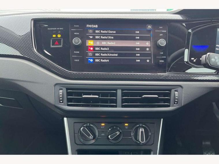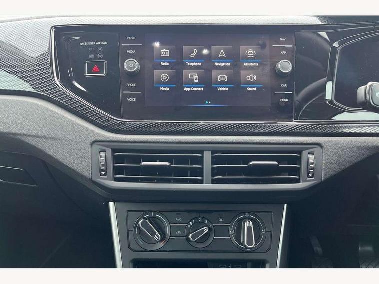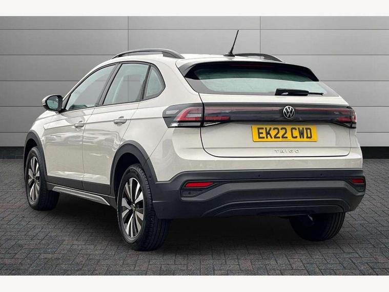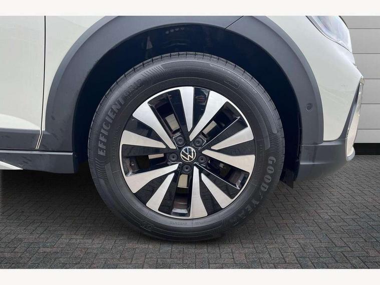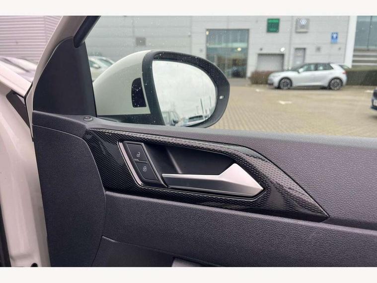 App-Connect including App-Connect Wireless, Driver alert system, e-Call (emergency call), Power Steering, Travel assist including emergency assist, Washer fluid level indicator, Wireless Charging including Bluetooth, Start-stop system with battery regeneration (recuperation - energy recovery during braking), Digital radio reception (DAB+), Diversity antenna for FM reception, WeConnect plus, Ambient lighting with logo projection, Aspherical driver's exterior mirror, Auto headlights, Body coloured bumpers, Body coloured exterior mirror housings and door handles, Electric windows, External USB type C socket and charging sockets, Front fog lamps with cornering function, Headlight range control, Heat insulating glass windscreen, LED headlamps, LED rear combination lamp, LED third brake light, Left convex exterior mirror, Power folding adjustable/heated exterior mirrors and front passenger exterior mirror lowering function, Rear fog light on one side, reversing light on both sides, Rear side wing doors, Rear wash/wipe with intermittent wipe setting, 'Slash/ Austin' Cloth upholstery, 12V socket in centre console, 2 front reading lights, 3 rear head restraints, 3 seat bench in 2nd row, Black carpets, Child seat anchor for child seat system i-Size, 2x top tether and child seat anchor in front on front passenger side, Door and side trim panels in titan black, Driver and front passenger seat height adjustment, Front centre armrest, Handbrake lever handle in leather, Height and reach adjustable steering wheel, Leather trimmed gear knob, Leather wrapped multifunction steering wheel, Luggage compartment floor, Luggage compartment light, Lumbar support for driver's and front passengers seat, Seat covers in titanium black, Single front passenger seat, Split folding backrest with centre armrest and unsplit rear seat bench, Storage compartment under front seats, Sun visors with illuminated vanity mirrors, Chrome Package - Taigo, Drivers assistance pack - Taigo, Light and Sight pack including High beam assist - Taigo, 2 x 3-point seatbelts/outer rear seats with ECE label, 3-point seat belts in front with pretensioner and height adjustment, 3-point seatbelt for centre rear seat, Driver and front passenger airbags with front passenger airbag de-activation, front side and curtain airbags, Driver and front passenger safety-optimised head restraints, Electronic stability control, Extended and predictive pedestrian/ cyclist protection, Front and rear disc brakes, Front curtain and side airbags with center airbag, Hill start assist, Manual rear child locks, Single tone horn, Tyre pressure loss indicator, Anti-theft alarm system with interior monitoring, backup horn, and towing protection, Anti-theft wheel bolts, Lava stone black gloss/matt decorative inserts in dash and front door panels, Low rolling resistance tyres,