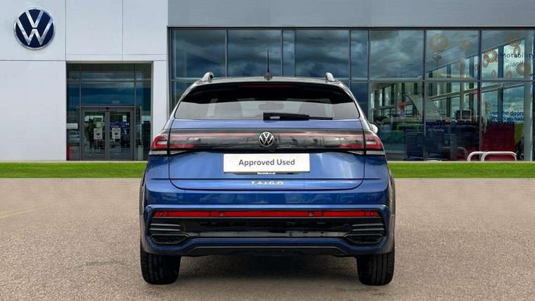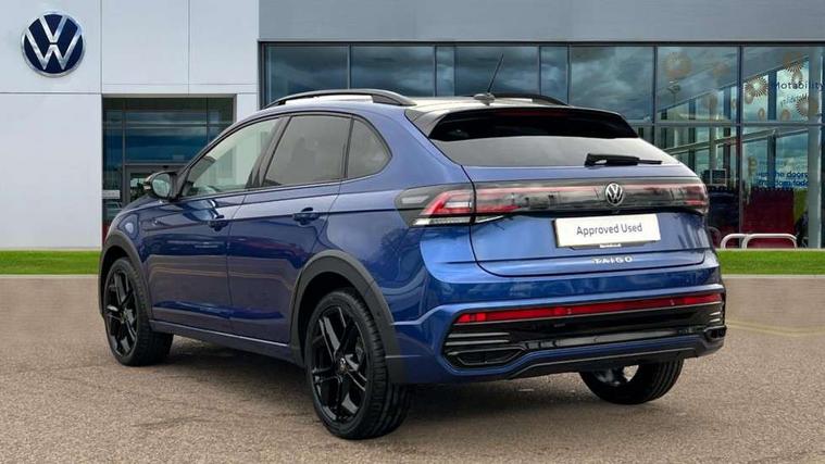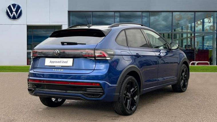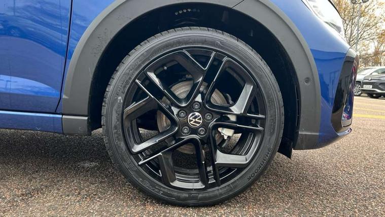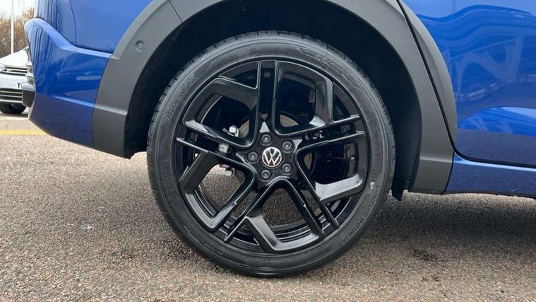 Advanced driver attention and drowsiness monitor, Digital cockpit pro - 10.25" high resolution TFT dash display screen with customizable menus and information, Driving profile selection, e-Call (emergency call), Power Steering, Predictive adaptive cruise control, Travel assist including emergency assist, Washer fluid level indicator, Wireless Charging including Bluetooth, Start-stop system with battery regeneration (recuperation - energy recovery during braking), XDS electronic differential lock for improved traction and handling, Digital radio reception (DAB+), WeConnect plus, Ambient lighting with logo projection, Aspherical driver's exterior mirror, Auto headlights, Body coloured bumpers, Body coloured door handles, Cornering headlights, Electric windows, External USB type C socket and charging sockets, LED rear combination lamp, LED third brake light, Left convex exterior mirror, Power folding adjustable/heated exterior mirrors and front passenger exterior mirror lowering function, Rear fog light on one side, reversing light on both sides, Rear side wing doors, Rear wash/wipe with intermittent wipe setting, 12V socket in centre console, 2 front reading lights, 3 rear head restraints, 3 seat bench in 2nd row, Air care climatronic air conditoning system with active combination filter and 2-zone temperature control, Black carpets, Black roof lining, Child seat anchor for child seat system i-Size, 2x top tether and child seat anchor in front on front passenger side, Chrome bezel for instrument cluster, vents, door handles + gear shift, Driver and front passenger seat height adjustment, Front + rear carpet mats, Front centre armrest, Front footwell illumination, Front sports comfort seats, Heated front seats, Height and reach adjustable steering wheel, Interior ambient lighting and surround lighting, Karoso artvelours cloth upholstery, Leather trimmed gear knob, Leather wrapped multifunction steering wheel, Luggage compartment floor, Luggage compartment light, Lumbar support for driver's and front passengers seat, Seat covers in grey + titanium black, Single front passenger seat, Split folding backrest with centre armrest and unsplit rear seat bench, Stainless steel pedals, Storage compartment under front seats, Sun visors with illuminated vanity mirrors, Black design pack - Taigo Black Edition, Black roof pack with mirror housing - Taigo, IQ.LIGHT - LED matrix headlights pack - Taigo, Light and Sight pack including High beam assist - Taigo, 2 x 3-point seatbelts/outer rear seats with ECE label, 3-point seat belts in front with pretensioner and height adjustment, 3-point seatbelt for centre rear seat, Adaptive driver and front passenger airbags with passenger airbag deactivation function, Driver and front passenger safety-optimised head restraints, Electronic stability control, Extended and predictive pedestrian/ cyclist protection, Front and rear disc brakes, Front curtain and side airbags with center airbag, Hill start assist, Manual rear child locks, Single tone horn, Tyre pressure loss indicator, Anti-theft alarm system with interior monitoring, backup horn, and towing protection, Grey anodised matte decorative inserts in dash and front door panels, 18" Misano black alloy wheels with diamond-turned surface, Breakdown kit, Low rolling resistance tyres,