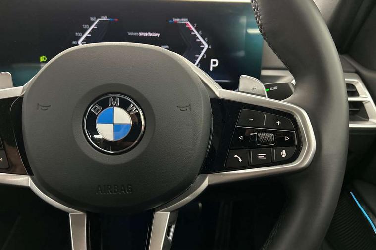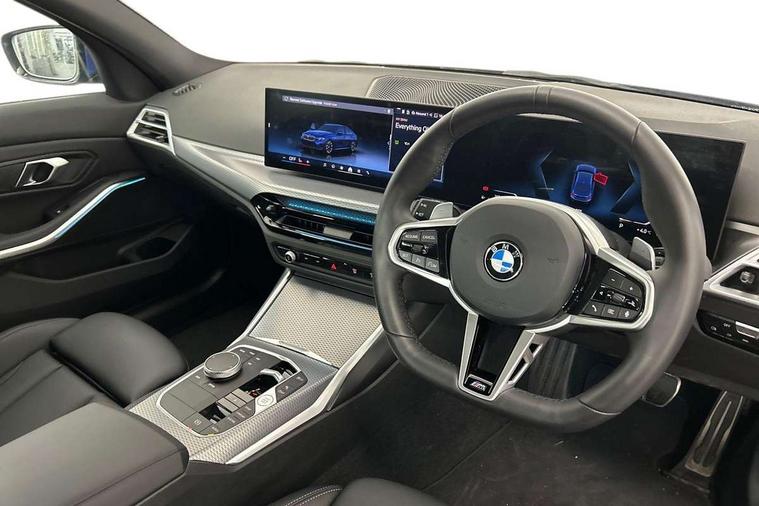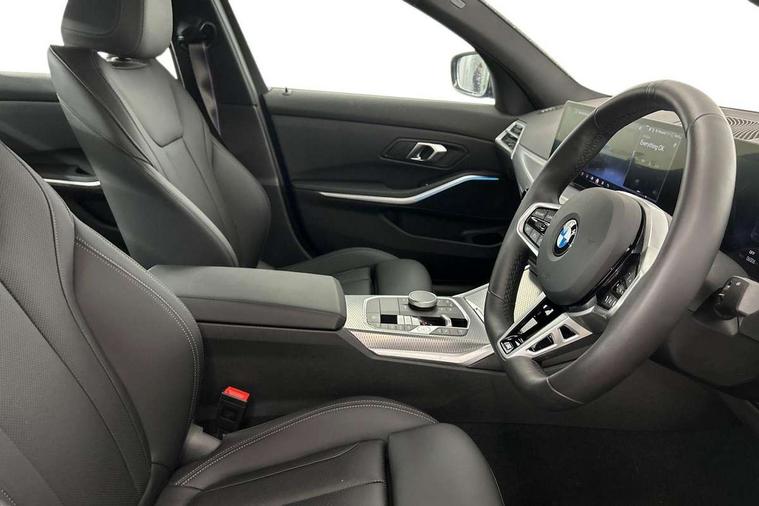 Active guard plus, Attentiveness assist, Automatic Start/stop button, Bluetooth Wi-Fi interface, BMW iDrive, BMW Teleservices, ConnectedDrive Services - last state call, Intelligent voice assist, 2 USB, 4G LTE connect, Live cockpit plus with Navigation + 12.3" instrument display + 14.9" display, Intelligent voice assist, 2 USB, 4G LTE connect, Oil sensor for level and grade, Personal e-SIM, Shifting point display, Variable sport steering, Double joint spring strut front axle, Fuel tank breather system, Steptronic Sport automatic transmission with steering wheel mounted gearshift paddles launch control and xtreme drive lever control, DAB tuner, 3rd brake light, Auto dimming rear view mirror, Automatic headlight beam throw control with load dependent regulating reaction, dynamic compensation of braking dive and acceleration squat, Bi-LED Low and high beam headlights, BMW emblem, engine compartment lid and tailgate, Body colour roof fin, Door sill strips, Electric windows - front and rear, with open/close fingertip control, anti-trap facility and comfort closing, Fading support, Follow me home headlight function, Front and rear bumper system with replaceable deformation elements, Front apron plastic in body colour, Fuel filler flap - right rear in body colour, Heat protection glazing on front windows and windscreen, High gloss chrome kidney frame with high gloss black kidney struts, LED daytime running lights, LED rear lights, LED turn indicator, Licence plate panel integrated into front bumper and tailgate, M high gloss shadow line exterior trim, Matt black B-pillar finsher, Matt black window recess cover, One piece front bumper cover including towing eye cover in body colour, Rain sensor with automatic headlight activation, Rear boot, Rear side wing doors, Reversing lights, Side frame decorative moulding black matt, Trailer stabilisation logic, Visible exhaust tailpipe finisher, Welcome lights in interior and door handle area, Windscreen washer jets, 12V power socket in front storage compartment, 2 front cupholder in centre console with clamping elements and matt black inlay, 3 seat bench in 2nd row, 3 spoke M Sport multifunction flat bottom leather steering wheel, 3 zone automatic air conditioning, 40:20:40 split folding rear seat with loading system, Anthracite headlining, Armrest integrated in front and rear door trim + front centre console armrest, BMW ID, Cruise control operation in steering wheel, Driving experience mode switch, Folding rear centre armrest with 2 cupholders, Front and rear headrests, Front and rear velour floor mats, Front reading light, Heated front seats, Height adjustable mechanically and infinitely variable steering column, Illuminated armrest storage compartment, Illuminated glove compartment, Illuminated luggage compartment, Lashing eyelets in luggage compartment, Single front passenger seat, Sunvisors with illuminated vanity mirrors and ticket pocket, Through load system, Toolkit located in luggage compartment, Connected pack professional - 3 Series Saloon/Touring, Interior and exterior mirror pack - 3 Series Touring/Saloon, M sport exterior styling pack - 3 Series Saloon/Touring, Parking assistant pack - 3 Series, 3x3 point rear seatbelts, ABS, Automatic Stability Control (ASC), BMW emergency call, Child locks on rear doors, Cornering brake control, Crash sensor activating of airbags, Unlocking doors, hazard warning lights, interior light, safety battery terminal, Drive-off assistant, Driver and front passenger with seat occupancy detection for driver's and passenger side, Driver and passenger side airbags, body protection at side and airbags deploy from seat backrests, Dry braking, DSC - Dynamic Stability Control, Dynamic brake control, Dynamic Traction Control - DTC, Electric parking brake including automatic hold function and automatic release of the parking brake when driving off, Electronic differential lock control (EDLC), Front airbag deactivation, Front airbags for driver and front passenger, Head airbags in 1st and 2nd row, head protection at side, curtain airbags open from headliner above 1st and 2nd row, Plastic fuel tank, Side impact protection, Tyre pressure sensors, Ventilated front and rear disc brakes, Warning triangle and first aid kit, Alarm system, Centre lock switch, Closing system with central locking, Electronic vehicle immobiliser, Locking wheel bolts, Tyre repair kit,