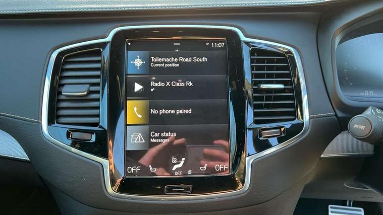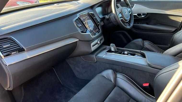 Metal mesh inlays, Tailored Instrument Panel and Door Tops with Contrast Stitching, Tempa spare wheel and jack, Anti-theft alarm including immobiliser/volume sensor + level sensor, Care key with user defined top speed, Key integrated remote control central locking + fuel flap with deadlocking system and auto open/close power windows, Keyless drive (includes keyless entry and keyless start) with remote tag, Locking wheel nuts, Private locking for glovebox and tailgate, DAB Radio (Digital Audio Broadcasting), Steering wheel remote infotainment controls, 7 three point seatbelts, City safety includes pedestrian, cyclist and large animal detection and front collision warning with full auto brake, Drivers knee airbag, Dual stage driver/passenger airbags, First aid kit, Front seats SIPS airbags, Hill descent control, Hill start assist, IC (Inflatable Curtains) - Full Length, Passenger airbag cut-off switch, Power parking brake with auto hold function, Road sign information display, Run off Road Mitigation, Run off Road Protection, Seatbelt reminder and pretensioners for all seats, SIPS (Side Impact Protection System), Slippery road and hazard light alert, Stability and Traction Control with Spin control, Engine Drag Control and Corner Traction Control, Tyre pressure monitoring system, Vehicle deceleration control with Anti-lock Brake System, Electronic Brake Distribution and Emergency Brake Assist, Warning triangle, WHIPS whiplash protection system - front, Adaptive brake lights with high level LED brake lights, Auto dimming interior + exterior mirrors, Automatic headlight levelling system, Automatic LED Headlights + Active high beam incorporating daytime running lights, Body colour bumpers, Dark tinted windows for rear side windows and cargo area, Dual integrated exhaust pipes with high gloss black surround, Electric folding and heated door mirrors, Front and rear power windows, Heated washer nozzles, High gloss black Deco lower front bumper, High gloss black door mirrors, High gloss black lower rear valance, High gloss black mesh front grille with surround, High gloss black window surround, Home safe and approach lighting, Integrated roof rails in high gloss black, Puddle lights, Rain sensor with automatic windscreen wiper activation, Rear side wing doors, Rear wash/wipe with intermittent wipe setting, Roof antenna, Roof spoiler, Visible VIN plate, 12V socket front tunnel console, rear passenger compartment and cargo area, 2 seat bench in 3rd row, 3 seat bench in 2nd row, A-pillar parking ticket holder, Ambient door and instrument panel lighting, B Pillar ventilation, Bright metal luggage threshold, Cargo divider with grocery bag holder, Centre console cupholders and storage, Charcoal headlining, Driver's side lower dashboard storage compartment, Front and rear door pocket and front cupholder illumination, Front footwell and side step illumination, Front headrests, Front seat cushion extensions, Heated front seats, Height/reach adjustable steering column, Illuminated front and rear tread plates, Illuminated luggage compartment, Illuminated tailgate, Illuminated vanity mirrors + ticket holder, Illumination lockable glovebox compartment, Integrated sun curtains in rear doors, Load protection net, Lower dashboard, tunnel console, Lower door panel in blond, Multicolour theatre lighting, Outboard armrest with cupholder and storage for third row passengers, Power driver seat with multi directional lumbar support and memory for seat and exterior mirrors, Power folding 2nd row headrests, Power passenger seat with multi directional lumbar support and memory, Rear footwell and side step illumination, Rear headrests, Semi automatic load cover, Single front passenger seat, Sports floor mats, Sports leather gear knob, Sports pedals, Underfloor cargo storage, 12.3" Active TFT crystal driver's instrument display, 9" centre console portrait touch screen, Adjustable steering wheel force, Bluetooth hands free telephone connection, Drive mode settings, Driver alert control with lane keeping aid, Driver assistance (pilot assist and adaptive cruise control), Driver awareness - Blind spot information system with steer assist, cross traffic alert with autobrake and rear collision warning and mitigation, Emergency call service, Front and rear park assist, Handsfree power tailgate opening and closing, Oncoming Lane Mitigation, Remote engine start, Sensus navigation with European mapping and traffic information, Service interval indicator, Speed limiter, Speed sensitive steering, Trip computer, Voice activated control for key functions, Volvo on call, 8 speed automatic transmission with start/stop + manual change functions, All wheel drive system, Touring chassis,