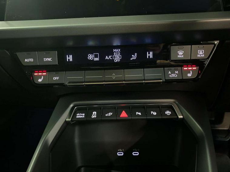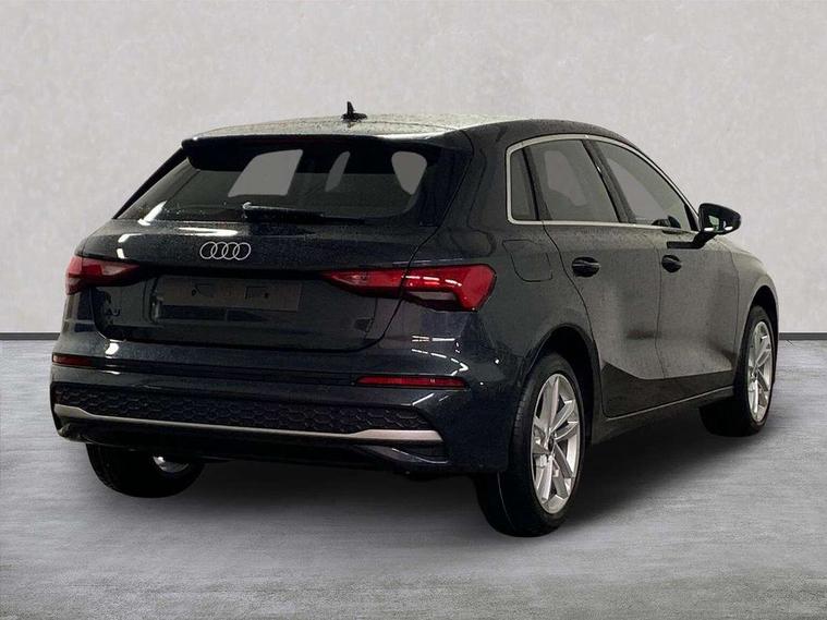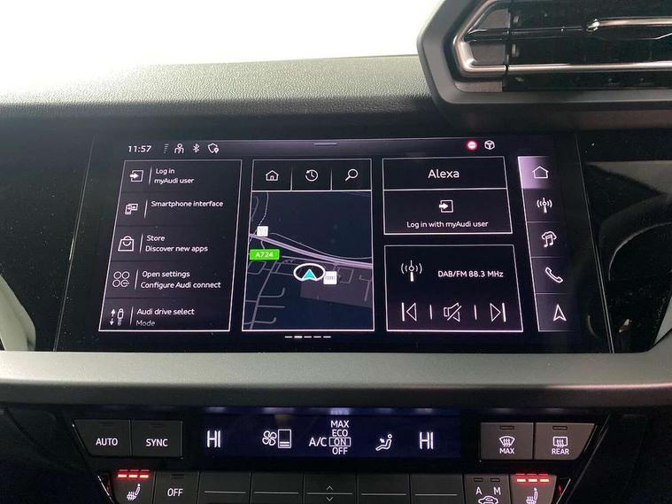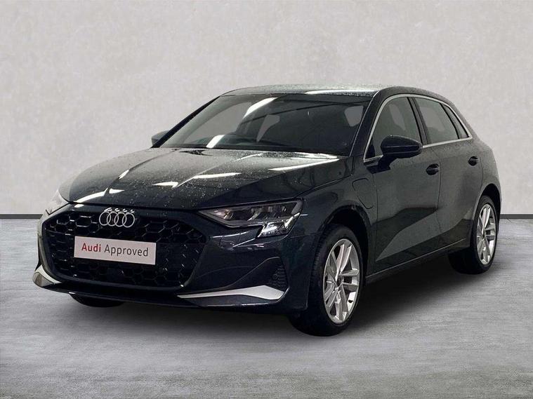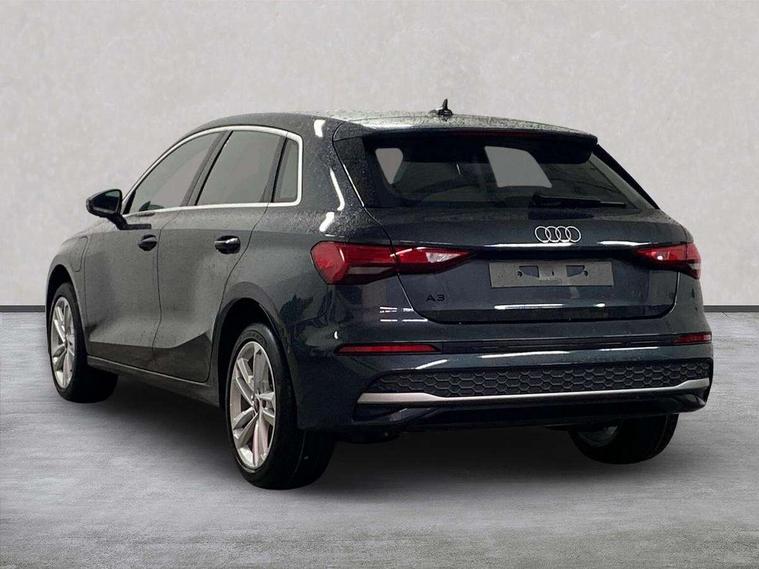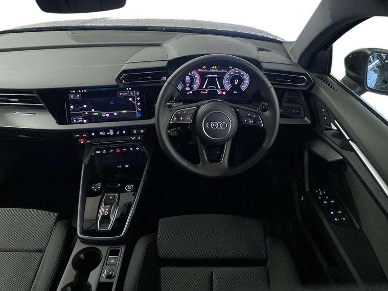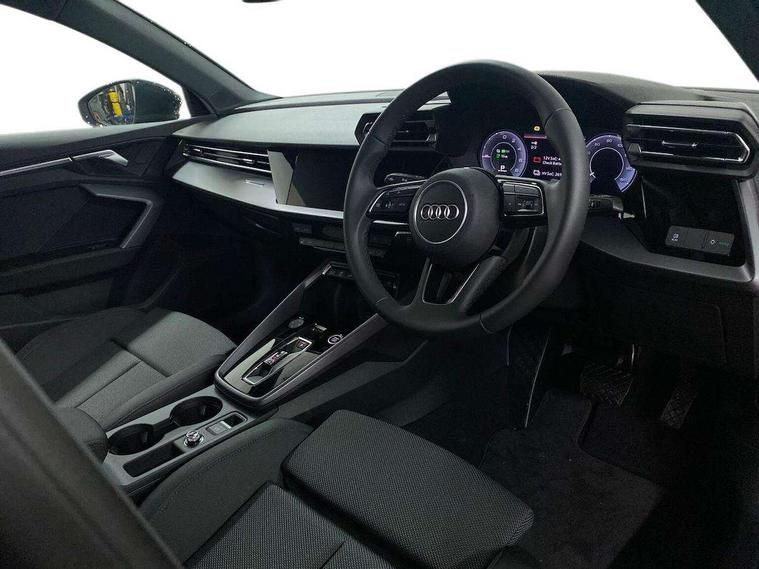 Adjustable speed limiter, Audi drive select, Audi smartphone interface with app store includes wireless Apple carplay, Android auto and Amazon alexa integration, Audi virtual cockpit plus - 12.3" full HD resolution dynamic digital instrument cluster, Automatic start/stop system with recuperation, Bluetooth interface, Camera based traffic sign recognition, Collision avoidance assistant, Cruise control, Distraction and Fatigue warning, e-Call (emergency call), Electromechanical power speed sensitive steering, Emergency assist, Lane departure warning system, MMI Navigation Plus with high resolution 10.1" colour touch screen display, Park Assist with parking system Plus, Service indicator, Trip computer, Voice control system with natural language interaction, 3 pin 10 amp domestic charging cable, CCS socket for DC charging, Charging cable for public charging, mode 3 (type 2), 32 A, Compact charging system, Industrial connector CEE 32 A, 230 V, length 1.6 m, Standard suspension, Type 2 socket for AC charging, Audi Phonebox light with wireless charging, Audi sound system - 10 loudspeakers including centre loudspeaker and subwoofer, DAB Digital radio, USB ports with charging function in the rear, 3rd brake light, Acoustic glass windscreen, Aluminium window trim, Auto dimming frameless rear view mirror, Body colour exterior mirrors, Body colour roof spoiler, Dipped beam, main beam, position light and turning light, Electrically adjustable/heated/folding/auto dimming door mirrors with integrated LED indications + kerb view function for passenger side, Exterior model badging, Front electric windows, Front radiator grill in high gloss dark chrome, Front side air inlets in grained matt black with silver frame, Heat insulating glass windscreen, LED daytime running lights, LED headlights and halogen rear lights, Light and rain sensors, Rear diffuser and grill in grained matt black with silver frame, Rear electric windows, Rear side wing doors, Rear window, rear door windows and rear side windows in clear glass, Rear wiper, 12V socket and storage compartment in front centre console, 3 seat bench in 2nd row, 3 spoke leather multifunction steering wheel with gear shift paddles, 3-zone deluxe automatic air conditioning, 4 way electrically adjustable lumbar support for driver and front passenger, 60/40 split folding rear seat bench, Black front and rear floor mats, Convenience auxiliary air conditioning, Front and rear headrests, Front centre armrest, Front door sill trims with aluminium inlay, Heated front seats, Height and reach adjustable steering wheel, Manual boot compartment lid, Manually adjustable front seats, Routine cloth upholstery with front sports seats, Seat side bolsters, Single front passenger seat, Steel grey cloth headlining, Aluminium interior elements pack - A3, LED interior lighting pack -A3, 3x3 point rear seat belts, Acoustic vehicle alerting system, Driver and front passenger airbag with passenger airbag deactivation, Electronic Stabilisation Control (ESC) including ABS, ASR and EDL, First aid kit with warning triangle and 2 safety vests, Front side airbags with head airbags and interaction airbag, Hill hold assist, Pre-sense front with pedestrian and cyclist detection, Seatbelt monitoring, Tyre pressure loss indicator, Anti theft alarm, Anti-theft wheel bolts, Electronically operated child locks, Immobiliser, Remote central locking with safelock, Black dashboard, Inlays in volcano grey fine paint finish, Tyre repair kit,