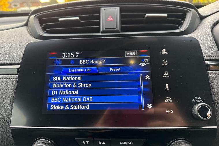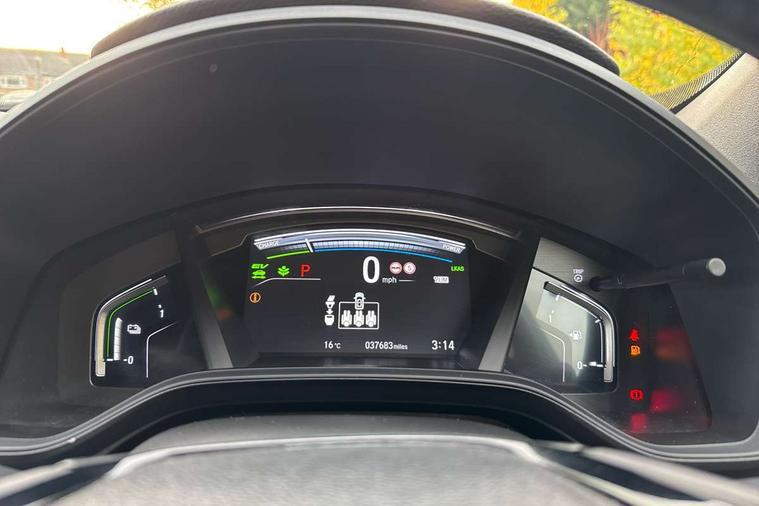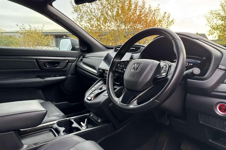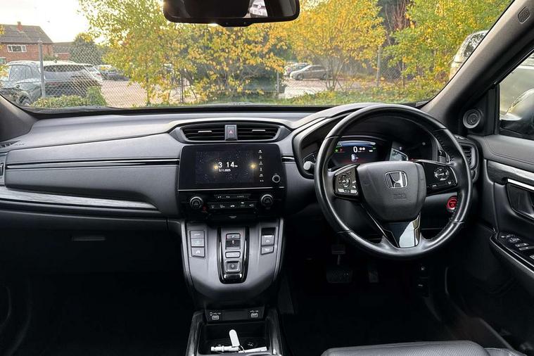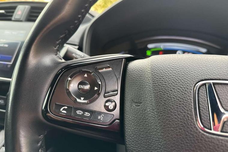 Adaptive cruise control, Agile handling assist, Bluetooth hands free telephone connection, Economy mode, Electric power steering, Emergency stop signalling system, Forward collision warning, Front and rear parking sensors, Honda CONNECT with GARMIN Navigation + 7" touchscreen, DAB radio, Apple CarPlay, Android Auto, Aha app integration and internet browsing, Intelligent multi info display, Lane departure warning system, Lane keep assist system, Low speed following, Rear view camera, Road departure mitigation, Speed limiter, Traffic sign recognition, Vehicle stability assist, 2 USB sockets in rear, 2x USB sockets in front, 9 speakers, DAB Digital radio, Dashboard centre speaker, Front tweeters, Steering wheel mounted controls, Subwoofer, Aspheric door mirrors, Auto dimming rear view mirror, Automatic headlights with dusk sensor, Black mirror caps, Body colour bumpers, Body colour door handles, Dark chrome grille, tailgate, front and rear bumper garnish, Door mirrors tilt when reversing, Electric front windows/one touch facility, Electric rear windows + one touch facility, Electrically adjustable and heated door mirrors, Electrically retractable door mirrors, High beam assist, LED daytime running lights, LED front fog lights, LED Headlights, LED rear lights, Pearlescent paint, Rain sensor, Rear privacy glass, Rear wiper, Shark fin roof aerial, Tailgate spoiler, Welcome home function, 60/40 split folding rear seat, Accessory sockets, Black edition embossed seats, Black headlining, Cargo hooks, Courtesy lights, Driver's electric adjustable lumbar support, Driver/passenger front seatback pockets, Driver/passenger sunvisors with illuminated vanity mirrors, Dual zone automatic climate control, Front centre armrest, Front map lights, Height adjustable driver's seat, Hybrid emblem, Illuminated glovebox, Isofix child seat preparation, Leather steering wheel, Leather upholstery, Paddle shift controls, Piano black interior door handles, Piano black shift knob, Piano black steering wheel, Rear air vents, Rear centre armrest, Rear headrests, Rear reading lights, Rear seat conversation mirror, Sunglasses holder with mirror, Tilt/telescopic adjustable steering wheel, Tonneau cover, Trunk light, 5 x 3 point seatbelts, ABS/EBD, Anti-whiplash front headrests, Brake assist function, Collision mitigation braking system, Deflation detection system, Driver airbag, Electronic parking brake with auto hold, Front and rear curtain airbags, Front and rear seat belts with emergency locking retractor (ELR), Front side airbags, Hill start assist, Passenger airbag deactivate switch, Honda super locks, Immobiliser, Security alarm, Smart entry + Smart start, Ultrasonic security sensor, Dark wood trim, 18" Black alloy wheels, Tyre repair kit,
