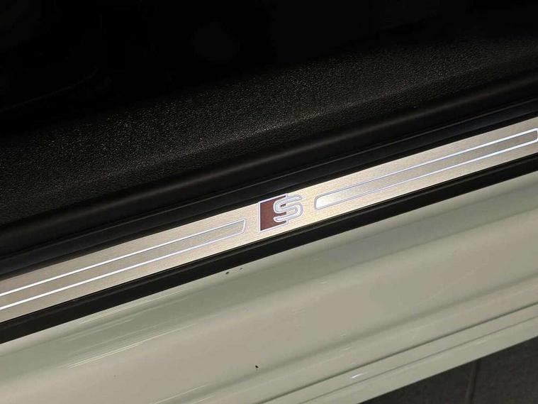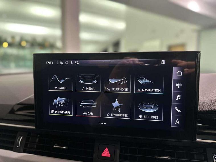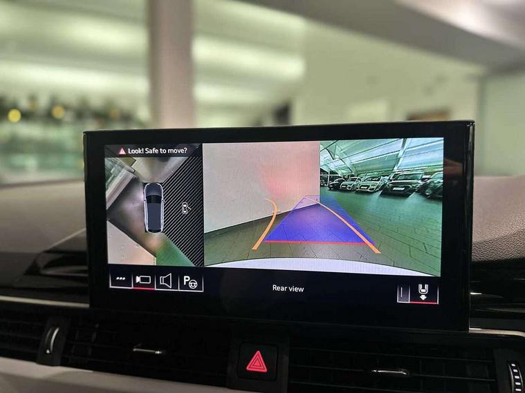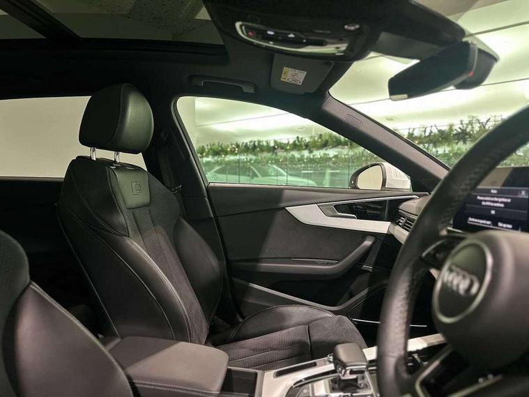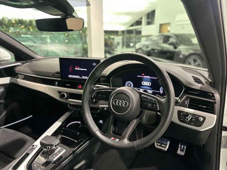 Audi connect safety and service (e-call), Audi drive select, Audi smartphone interface, Audi virtual cockpit, Automatic start-stop system with coasting functionality and efficiency programme, Bluetooth interface, Camera based traffic sign recognition, Electromechanical power steering, Email, calendar and text messages displayed via MMI, Front and rear parking sensors, Lane departure warning, MMI Navigation plus with MMI touch includes 10.1" high resolution colour MMI display, 3D map, Power operated tailgate, Rear view camera, Voice control system, 54 litre fuel tank, Sports suspension lowered by 23mm, 2 USB charging ports, 8 passive loudspeakers, DAB digital radio reception, Aluminium roof rails, Auto dimming rear view mirror, Body colour door handles, Body colour front spoiler lip, Body colour side sill trim, Body coloured door mirrors, Electric adjustable/heated/folding door mirrors with auto dimming, Grained matt black side air inlets with matt aluminium silver inlay, High beam assistant, Honeycomb structure radiator grille in grained matt black, LED headlights with LED rear lights + dynamic rear indicators + headlight adjustment and high beam, turning light + LED daytime running lights, LED third brake light, Matt aluminium silver tailpipe trim, Privacy glass, Rain and light sensors, Rear side wing doors, Rear wiper, S Line badges on the front wings, S line front and rear bumpers with side skirts, S Line rear diffuser in matt anthracite black with trim strip in matt aluminium silver, S Line roof edge spoiler, Variable intermittent front wash/wipe, Windscreen with acoustic glazing, 3 spoke high multi-function sports leather steering wheel grips in perforated leather with S badging including paddle shift, 4 way electric lumbar support for driver and front passenger, 40/20/40 split folding 3 rear seat bench in 3 parts with rear centre armrest, Black carpets, Black cloth headlining, Black perforated leather gearknob, Contrast stitching on seats, steering wheel and gear lever gaiter, Deluxe 3 zone electronic climate control, Electric load area cover, Front and rear head restraints, Front centre armrest, Heated front seats, Illuminated door sill trims with S logo, ISOFIX child seat mounting and top tether, Manual seat adjustment, Single front passenger seat, Stainless steel pedals and foot rest, High gloss package - A4, LED Interior light pack - A4/S4, 3 rear seatbelts, 6 airbags - Driver, front passenger, curtain and side windows, Attention and drowsiness assist, Electronic Stabilisation Control (ESC) including ABS, ASR and EDL, Hill hold assist, Multi collision brake assist, Pop-up bonnet for pedestrian protection, Pre sense city, Rear door child safety locks, Seatbelt monitoring, Warning triangle and first aid kit, Anti theft alarm, Anti theft wheel bolts, Central locking, Keyless Go, Matt brushed aluminium inlays, Tool kit, Tyre repair kit,