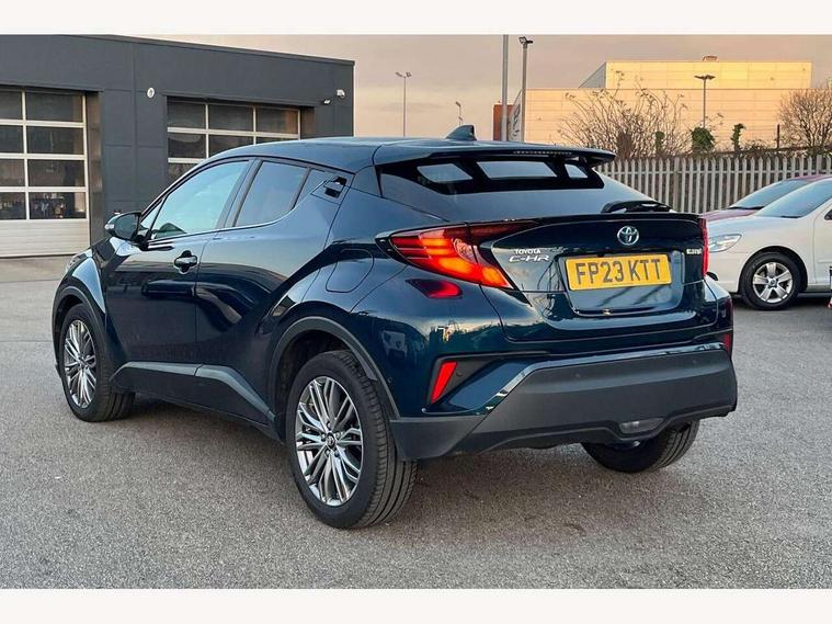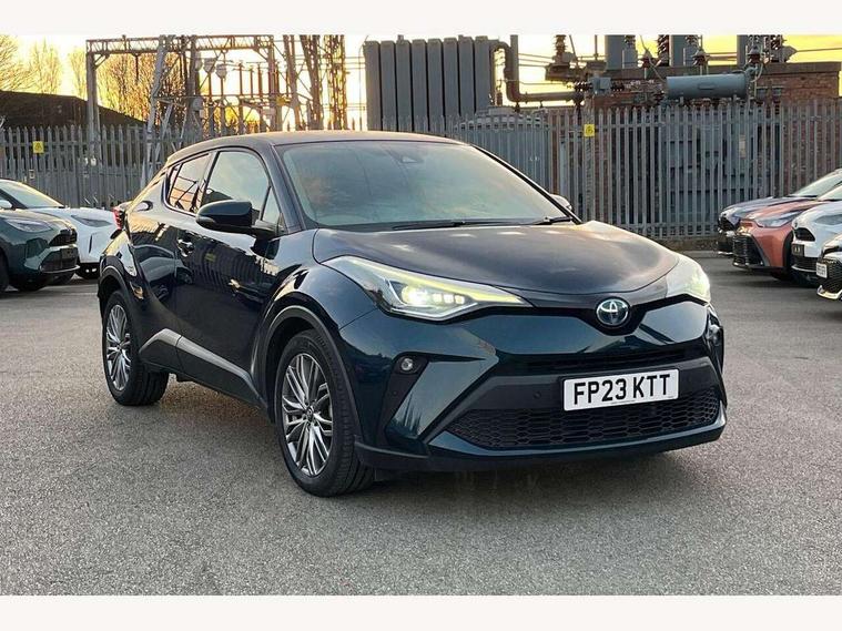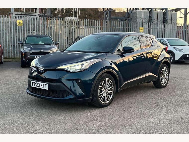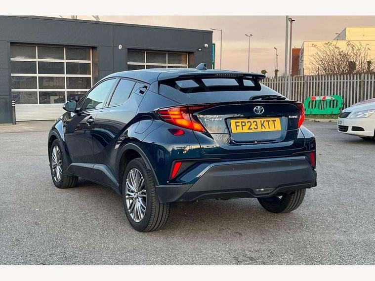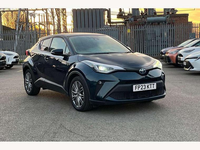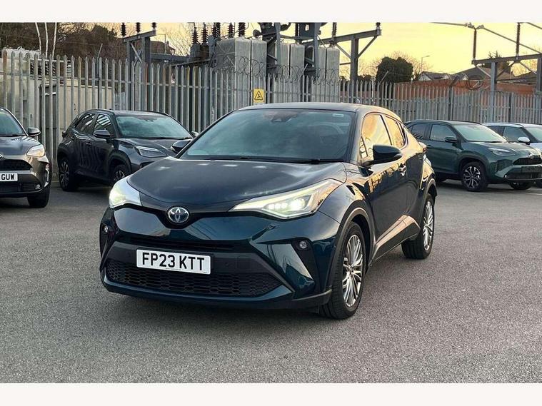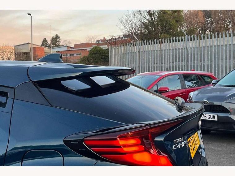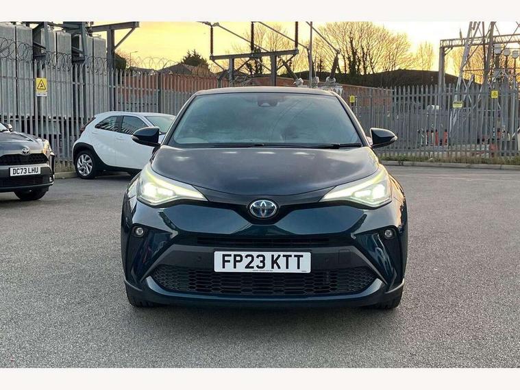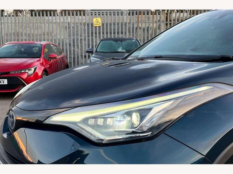 4.2" coloured TFT screen for multi-information display, Adaptive cruise control, Apple car play and Android auto, Bluetooth connectivity, E-call, Electric power steering, Hybrid system indicator, Lane departure alert with steering control, Lane trace assist, Push button tailgate release, Remote boot door release in cabin, Remote boot door release in key, Reversing camera, Road sign assist - RSA, Simple Intelligent parking assist, Smart voice assist, Touch 2 Go navigation system, Trip computer, Voice recognition, Wireless smartphone integration, Vehicle Stability Control (VSC), 6 speakers, AM/FM radio, DAB Radio (Digital Audio Broadcasting), Toyota touch 2 multimedia system with 8" display, USB connector, Wi-fi connectivity, Adaptive front light system, Adaptive LED Headlights, Anti-jam protection on power windows, Auto high beam, Auto up and down function on all power windows, Automatic headlight levelling, Automatic headlights, Automatic headlights cut-off, Black and body coloured rear bumper, Black lower front grille, Black upper front grille, Body colour door handles, Body colour door mirrors, Body colour front spoiler lip, Body coloured front bumper, Boot door release with push button, Electric heated door mirrors, Follow me home headlights, Front and rear power windows, Headlight cut off reminder, Honeycomb lower front grille, LED daytime running lights, LED fog lights, LED front light guide, LED High mounted stop light, LED rear brake lights, LED rear combination lights, Noise reduction layer on front windows and windscreen, Power adjustable door mirrors, Privacy glass, Rain sensor, Rear sequential indicators, Rear side wing doors, Rear spoiler, Rear tailgate, Rear window defogger, Rear window wiper, Shark fin antenna, UV-filter on driver and passenger windows, UV-filter on rear windows, Variable front intermittent wipers, 12v power outlet - front, 3 rear headrests, 3 seat bench in 2nd row, 3 spoke leather steering wheel, 60/40 split folding 2nd row rear seats, Adjustable rear headrests, Adjustable speed limiter switch on steering wheel, Assist grips front and centre pillar, Audio and telephone switches on steering wheel, Black front door assist grips, Blue ambient lighting on front cup holders, Blue ambient lighting on front doors, Boot light, Chrome interior door handles, Driver and front passenger personal light, Driver and front passenger Whiplash Injury Lessening seats, Driver and passenger seatback pockets, Dual zone automatic air conditioning, Floor mats, Front cupholders, Front head restraints, Front sports seats, Glovebox with internal light, Hard tonneau cover, Heated driver and front passenger seats, Heated steering wheel, Hooks for luggage holding net, Humidifying Nanoe air purifier, Illuminated entry system, Isofix attachments on outer rear seats, Leather gearshift, Light on driver sun visor, Light on passenger sun visor, Manual telescopic steering wheel, Manual tilt steering wheel, Microphone on front personal light, Mirror on driver sun visor, Mirror on passenger sun visor, Multimedia switches on steering wheel, Pollen filter, Power adjustable lumbar support on driver seat, Power tilting cushion on driver seat, Shopping bag hooks, Single front passenger seat, Slow opening on lower glovebox, Voice recognition switch on steering wheel, Leather pack - C-HR, Tech with parking sensor pack - C-HR, 16 Disk front wheel brake, 3x3 point rear seatbelts, ABS+EBD+Brake assist, Electronic parking brake, Front and rear seatbelt reminder, Front passenger airbag on/off switch, Hill start assist control (HAC), Pre collision system with pedestrian detection, Pre-tensioners and force limiters, Rear door child safety locks, SRS Airbags - Driver + Front passenger, front side, front and rear curtain and driver's knee airbags, Toyota safety sense, Tyre pressure monitoring system, Tyre pressure warning system, Acoustic vehicle alert system (AVAS), Glass-breaking alarm sensors, Immobiliser, Intrusion alarm, Intrusion sensor, Motion sensor alarm, Power door locks, Power passenger window lock, Remote central locking, Black lower dashboard, Dark brown upper dashboard, Piano black console, Silver deco line on upper dashboard, Tyre repair kit,