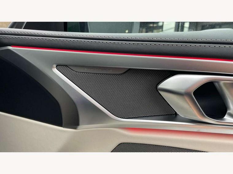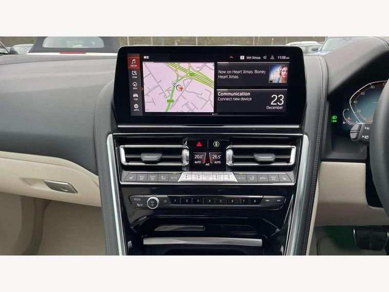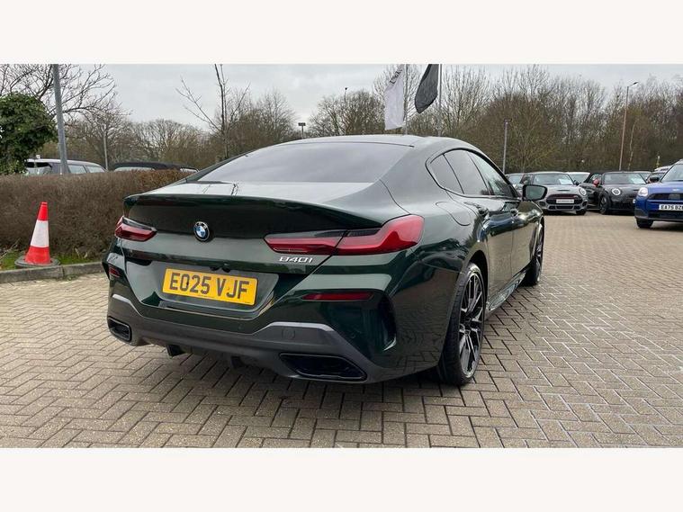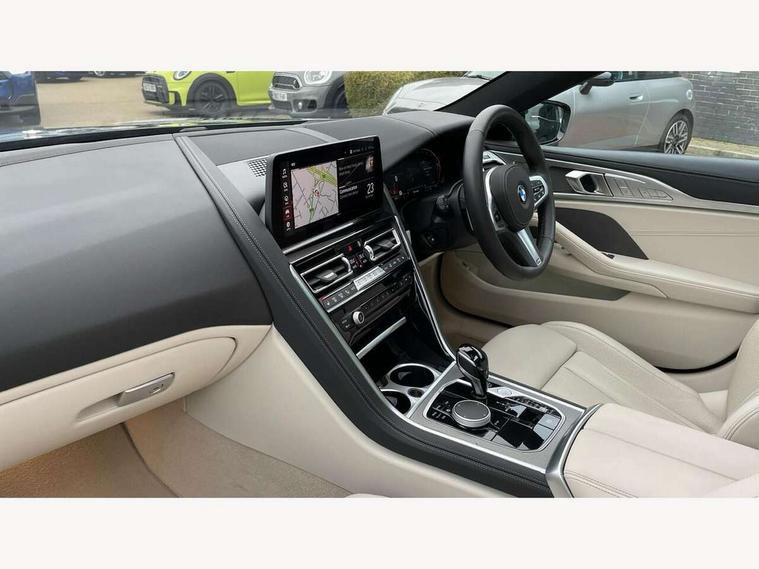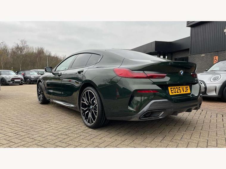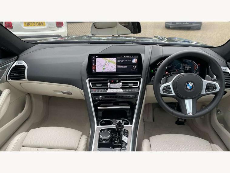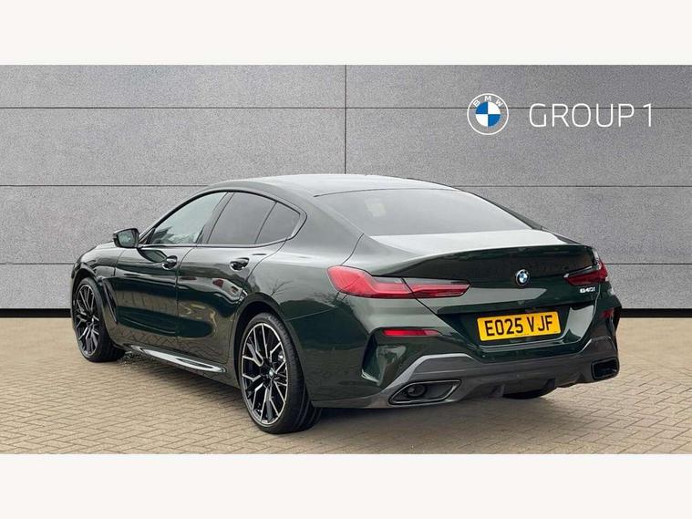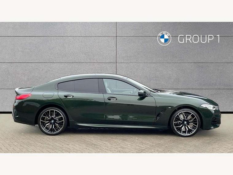 Automatic tailgate operation, remote opening with key, closing by tailgate button or remote control including tailgate in LED technology, Bluetooth hands free facility with USB audio interface, voice control and enhanced bluetooth + Wireless charging, BMW ConnectedDrive online services, BMW legal emergency call, BMW Live cockpit professional with 12.3" instrument display, BMW Teleservices, Brake pad wear indicator, Check control system, Condition based service, Drive experience control with Sport, Comfort, Eco Pro and Adaptive modes, Electric bootlid, Engine start/stop button, Head up Display, iDrive controller with shortcut buttons, Integrated owners handbook, Light on warning, Oil sensor for level and grade, On board computer, Outside temperature display, Service interval indicator, Servotronic system, Wi-Fi hotspot, Adaptive M suspension, Double wishbone front axle, Dynamic Damper Control, Eight speed sport automatic transmission, M Sport differential, Petrol Particulate Filter, Sport exhaust system, DAB Digital radio, Favourite buttons, Automatic windscreen wipers and automatic headlight, Carbon core, Climate comfort windscreen, Daytime driving lights front and rear active, Dynamic brake lights, Exterior mirrors - Floating design mirror, electric adjust/heated/folding, aspherical, Follow me home headlight function, Frameless interior mirror, Front and rear bumper system with replaceable deformation elements, Front electric windows, Front ornamental grille with kidney grille bars, Heat protection, sun protection glazing, Heated rear window, glass, Heated windscreen washer jets, High beam assistant, Illuminated door handles, Illuminated radiator grille iconic glow, LED rear lights, Model logo - right tailgate in chrome, M emblem on side panel in light chrome, badge on bonnet and tailgate, Rain sensor and automatic driving lights control, Rear boot, Rear side wing doors, Side window graphic in black high gloss, Sun protection glass, Thermally insulated windscreen, Third LED technology brake light in rear window, Welcome lights in interior and door handle area, 1 x 12V power socket in front centre console, 2 cup holders in front, 2 rear head restraints, 3 spoke M sport leather multifunction steering wheel with shift paddle, 4 zone control automatic air conditioning, 5 seats, 50/50 split folding rear seat, Ambient light with dynamic interior light, BMW ID, Front and rear seat heating, Front door pockets, Front entry lights doors, Front reading lights, Front sun visors with ticket holder and illuminated mirror, Interior lighting - Interior light front centre above interior mirror, luggage compartment light, automatic interior light system soft on/soft off, Lashing eyelets, Lockable glove compartment with light, Microfilter and active carbon filter, Steering column with adjustable height and length and activation via control on the steering column, Storage compartment under front centre armrest with light, 1 x 12V power socket and USB, Through loading function, Connected professional pack - 8 Series, M sport exterior styling aerodynamics pack - 8 Series, 3x3 point rear seatbelts, ABS/EBD, Active protection, Airbags - Driver and front passenger airbag with seat occupancy detection, knee, side and front passenger seat airbag deactivation, Brake discs, compound structure, Child locks on rear doors, Cornering brake control (CBC), Crash sensor activating central locking release, hazard warning lights, fuel cut off, interior lighting, safety battery terminal clamp and airbags, DSC - Dynamic Stability Control, Dynamic brake control, Dynamic Traction Control - DTC, Electromechanical parking brake with automatic drive away release and auto hold function, Front three point with pyrotechnical belt latch tensioner seat belts, belt force limiter and belt stopper, Head airbags for 1st and 2nd seat row, Hill start assist, Integrated brake system, ISOFIX child seat mounting for the two outer rear seats, Rear three point with pyrotechnical belt latch tensioner seat belts and belt force limiter, Side impact protection, Tyre pressure monitoring system (TPMS), Warning triangle and first aid kit, Alarm system (Thatcham 1) with electronic engine immobiliser, Centre lock switch, Closing system with central locking, Comfort access system, Locking wheel bolts, Vehicle key with exclusive M designation, Instrument and upper door panel in black walknappa leather with contrast stitching,