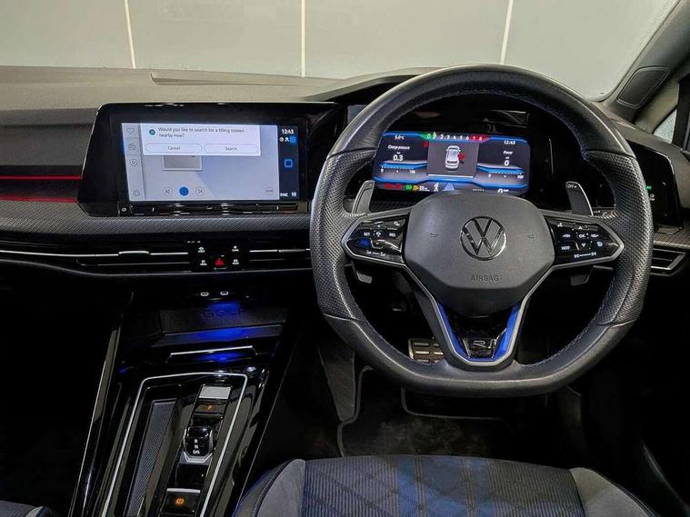 Adaptive cruise control (ACC) with speed limiter and front assist (reacting to vehicles pedestrians and cyclists), Car2X communication, Digital cockpit pro - 10.25" high resolution TFT dash display screen with customizable menus and information, Driver alert system, Dynamic road sign display, eCall - Emergency call service for SOS calls to emergency response, Lane assist, Lane change assistant, Mobile phone interface with wireless inductive charging function, Multifunction camera for distance control, PAS, Speedo, rev counter, electronic odometer, trip, service interval display, exterior temperature and fuel gauge, Start/Stop function, Travel assist with emergency side assist with electrically foldable door mirrors, USB-C ports in the front and rear centre console with increased charging performance, Warning buzzer and light for front seatbelts unfastened, Wireless app connect, 4Motion 4 wheel driver, Front differential lock, Petrol Particulate Filter, XDS electronic differential lock for improved traction and handling, Premium USB cable in choice of either Apple or Android smartphone compatibility, ''R' name plate, Ambient lighting, exterior illuminated styling elements at the sides, Auto dimming rear view mirror, Automatic headlamp activation with Coming home and Leaving home feature, Automatic headlights, Body colour bumpers, Body colour door handles, Body colour rear roof spoiler, Front and rear electric windows, Heat insulating glass windscreen, Heated rear windscreen, High level 3rd brake light, Highway light, Illuminated front grille, IQ.Light - LED Matrix headlights, dynamic headlight control with advanced high beam control matrix dipped main beam + LED DRL + 22 LED lights, LED front fog lights with 5 honeycomb design, LED License plate illumination, LED rear combination lamp inlcuding dynamic turn signal, Matt chrome effect door mirrors with integrated indicators, Performance rear spoiler, Rain sensor, Rear fog light on one side and reversing lights on both sides, Rear side wing doors, Rear tinted glass 65% light absorbing from B pillar backwards, Rear windscreen washer and wiper with interval delay, Remote electrically heated, adjustable and foldable door mirrors, including door mirror puddle lights and reverse activated kerb-view adjustment on pa, Welcome light, 12V socket in front centre console, 12V socket in luggage compartment, 3 rear head restraints, 3 seat bench in 2nd row, 3 zone climate with controls in the rear, Aluminium gear knob, Ambient lighting - Customisable 30 colour ambient lighting, Brushed stainless steel pedals, Chrome plated surround to electric mirror button, window switch and air vent surrounds, Drivers and front passengers sun visors with vanity mirrors, Front + rear carpet mats, Front centre armrest with storage compartment, Front cupholders x 2, Front passenger seat, Front reading lights x 2 incorporating LED technology, Front seat lumbar support adjuster, Front sports seats, Glovebox, Height adjustable front seats, Height and reach adjustable steering wheel, Isofix child seat preparation for 2 rear child seats and front passenger seat, Leatherette door armrests and centre armrest, Luggage compartment lighting, R leather wrapped multi function sports heated steering wheel with extended paddle shift, Removable luggage compartment cover, Soul black instrument panel, Soul black roof lining, Split folding backrest with centre armrest and unsplit rear seat bench, Woven fabric storage compartments in front and rear doors, R styling pack - Golf, 3 point height adj front seatbelts + pretensioners, 3 rear three point seatbelts, ABS, Blue brake callipers in front with R logo, Child locks on rear doors, Driver and front passenger airbag with front passenger airbag deactivation, Drivers and front passengers safety optimised head restraints, Electronic parking brake with auto hold, ESC (Electronic Stability Control), Extended pedestrian protection measures, Front and rear passengers curtain airbag system including front side airbags, Front centre airbag, Front disc brakes, Front side airbags with curtain airbags, Rear disc brakes, Two tone horn, Tyre pressure monitoring system, Alarm with interior protection and deactivation via infotainment system, Electronic engine immobiliser, Keyless entry with start/stop button on centre console, Carbon grey decorative inserts in dash and front door trim panels, High gloss black centre console, Tyre mobility kit Includes 12V compressor and tyre sealant,