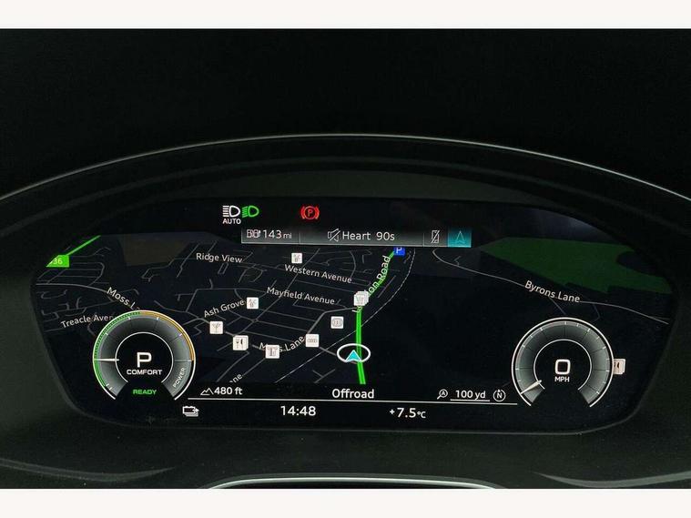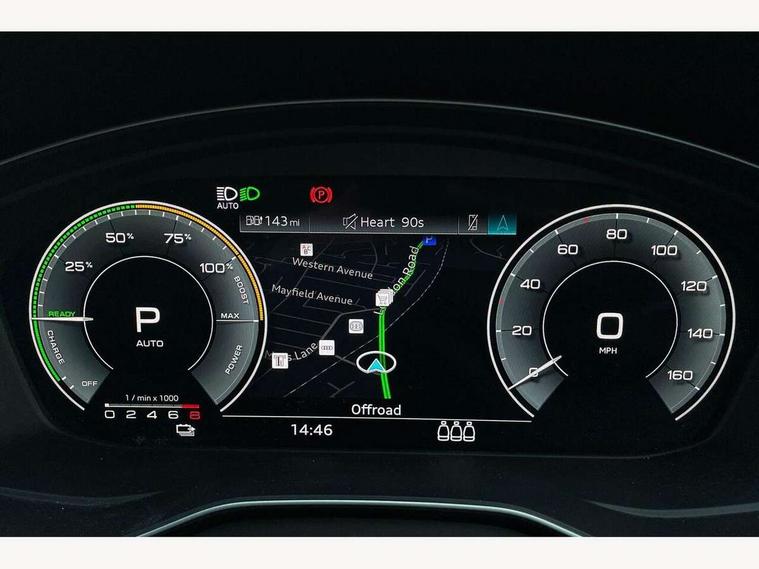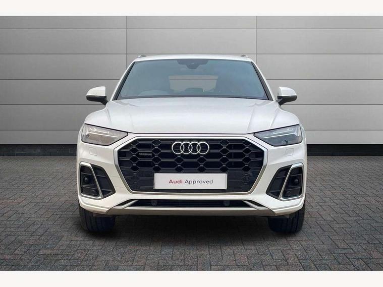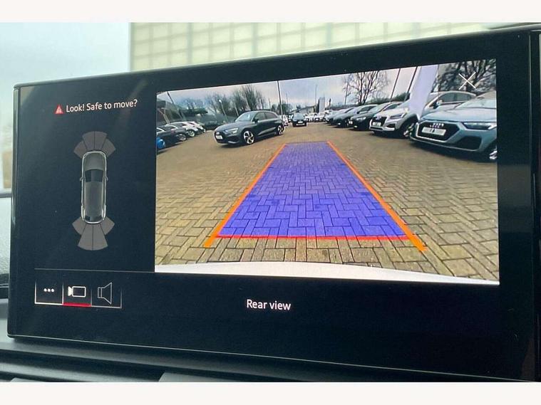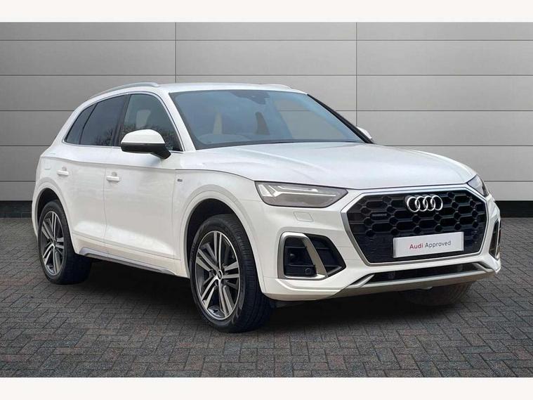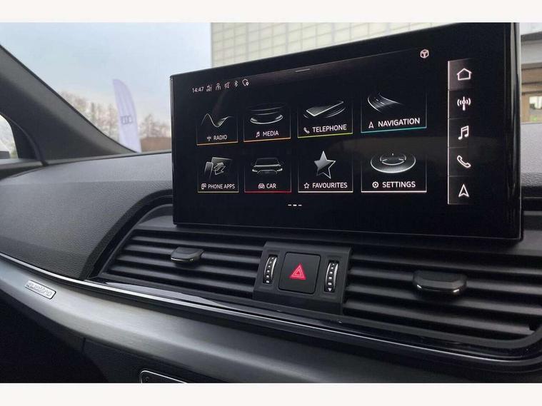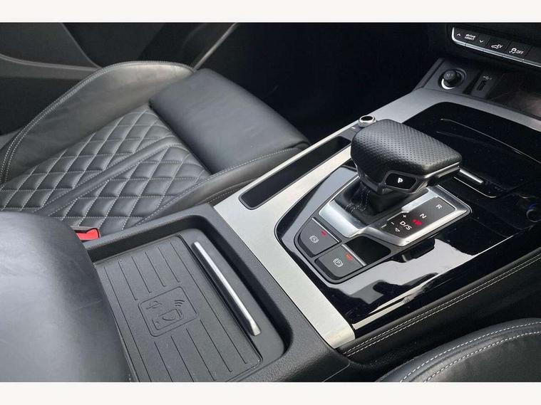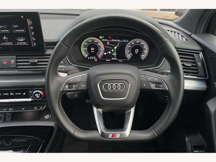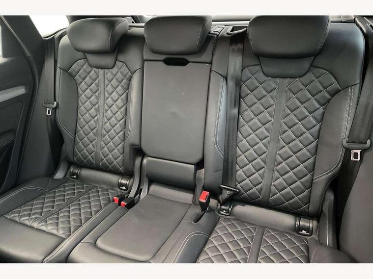Advanced key with electric hands free boot opening system, Audi connect safety and service (e-call), Audi connect with Amazon Alexa Integration, Audi drive select, Audi virtual cockpit plus with 12.3" screen and three different layout designs, Audi wireless smartphone interface, Automatic start-stop system with coasting functionality and efficiency programme, Bluetooth interface, Electro - mechanical power assisted steering, MMI navigation plus with 10.1" touch screen, Power tailgate, Reversing camera, Service interval indicator, Voice control system with Audi hotword activation "Hey Audi", 3 pin 10 amp domestic charging cable, Dynamic suspension, Quattro on demand, Type 2 mode 3 22kW 32 amp charging cable, Type 2 socket for AC charging, Audi sound system, DAB Digital radio, Acoustic glass for front and door windows, Aluminium roof rails, Audi beam, Audi matrix LED headlights with dynamic front and rear indicators, Auto dimming rear view mirror, Automatic headlights and windscreen wipers, Body colour bumpers, Body colour door mirrors, Body colour rear diffuser with matt aluminium silver surrounds, Body colour underbody protection, Chrome plated exhaust trims, Door sills in Selenite silver, Electric adjustable/heated/folding door mirrors, Front air inlet surrounds in aluminium, Front and rear electric windows, Front radiator grille in honeycomb design, Headlight washers, Lower bumpers painted in contrast Manhattan grey, Rear chrome trim strip below lights, Rear diffuser strip in selenite silver, Rear privacy glass and rear side windows, Rear spoiler, Rear wiper, Roof bars, 2 x USB charging port with aux input socket, 3 rear headrests, 40:20:40 split folding rear seat with rear centre armrest, Black cloth headlining, Comfort front centre armrest, Contrast stitching on seats, steering wheel and gear lever gaiter, Deluxe 3 zone electronic climate control, Fine Nappa leather upholstery with diamond pattern contrast stitching + front sport seats with S embossed logo, Front/rear floor mats, Fully electrically adjustable seats, Gear lever in black leather, Heated front seats, Height adjustable front head restraints, Height/reach adjustable steering column, Illuminated door sill trims with S logo, ISOFIX child seat mounting and top tether, Massage function for front seats, Rear seat bench plus, Sunvisors with vanity mirrors, Tool kit, Trunk roller cover, Extended interior upholstery pack - Q5, High gloss pack - Q5, LED interior light pack - Q5, 3 point seatbelts on all seats, 6 airbags - Driver, front passenger, curtain and side airbags, Electrically operated child locks on rear doors, Electromechanical parking brake, Electronic stabilisation control including ABS, ASR and EDL, Front passenger airbag deactivation, Hill descent control, Hill hold assist, Multi collision brake assist, Pop-up bonnet for pedestrian protection, Pre sense city, Seat belt force limiter, Seatbelt monitoring, Tyre pressure warning, Warning triangle and first aid kit, Anti theft alarm, Anti-theft wheel bolts, Keyless Go access/ignition system, Matt brushed aluminium inlays, 20'' 5 segment spoke design alloy wheels in contrasting grey with diamond cut finish, Tyre repair kit,