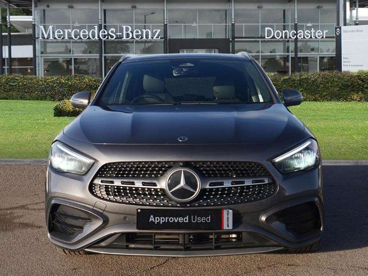 10.25 inch touchscreen central media display, 10.25" Digital instrument cluster display screen, Attention assist, Blind spot assist, Direct steering, DYNAMIC SELECT with a choice of driving modes (ECO, Comfort, Sport and Individual), ECO start/stop function, Fluid level warning indicator for fuel, oil, coolant and washer fluid, Hard-disk navigation, Hey Mercedes Voice activation, Lamp failure indicator, Lane keeping assist (LKA), Mercedes me connect including emergency call system, accident recovery, breakdown and maintenance management, Mercedes me remote services, Multi function trip computer, Outside temperature gauge, Owners manual and service booklet in English, Pre-installation of private car share, Radio aerial integrated into front and rear windshields, Service indicator (ASSYST), Smartphone integration with Apple CarPlay and Android auto, Speed limit assist, Wireless charging, Lowered comfort suspension, Rear axle multi-link, Bluetooth connectivity including audio streaming, DAB Digital radio, MBUX multimedia system, Mercedes Benz sound system (100 W) with 6 speakers, Adaptive brake lights, Adaptive highbeam assist, Aluminium roof rails, AMG front apron with front splitter in the colour of the vehicle with chrome trim element, AMG rear apron with visible tailpipe trim and chrome trim element, AMG specific/dual flow exhaust pipes in chrome (non-functional), Automatic headlamp activation, Beltline trim and window line trim strip in high gloss aluminium, Black grained side sill trim with chrome inlay, Car wash function, Dark privacy glass from B-pillar backwards, Electric front windows, Electric rear windows, Electrically adjustable and heated door mirrors with integrated LED indicators, Exhaust system with 2 Visible tailpipe trim elements and rear apron with trim in chrome, Heat insulating dark tinted glass, Heated glass rear windscreen + timer control, Interior mirror with black reading lamps and frameless, LED high performance headlamps with integrated LED daytime running lights, LED tail lights, LED third brake light, Rain sensor windscreen wipers, Rear fog lights, Rear side wing doors, Rear wiper, Wheel arch liners in the colour of the vehicle, 3 seat bench in 2nd row, 3 spoke flat bottom multifunction nappa leather steering wheel, 4 way lumbar support, 40:20:40 split folding rear seat backrests, Adjustable head restraints, Air conditioning - air vents with silver chrome surround, Air conditioning - One zone THERMATIC automatic climate control with automatically controlled air distribution, AMG floor mats, Artico man-made leather/Microcut microfibre upholstery with red contrast stitching, Auto Mercedes-Benz child seat recognition sensor, Black roof lining, Courtesy light in boot, Fluorescent jacket, Front centre armrest with stowage, Galvanished gear shift paddles on steering wheel in silver chrome, Heated front seats, Illuminated glovebox, Interior lighting - 64 colour Ambient lighting, Luggage net on driver/front passenger seat backrest, Manually height and reach adjustable steering column, Single front passenger seat, Sports pedals in brushed stainless steel with black rubber studs, Sports seats, Sports steering wheel, Stowage compartment in centre console, Stowage compartment with retractable cover, Sunvisors with illuminated vanity mirrors, Twin front cup holders, Two outer rear seat isofix and top tether child seat fixing points, Comfort seat pack - GLA Class, Interior lighting with light and sight pack - GLA, Keyless go comfort package - GLA, Mirror pack - GLA Class, Off road engineering pack - GLA, Parking package with reversing camera - GLA, USB package plus - GLA, Winter package - GLA, 3 rear 3 point seatbelts, ABS with Brake Assist, Active bonnet pedestrain safety measure which detects an impact and raises bonnet by 65mm, Active brake assist includes forward collision warning system with autonomous braking, Adaptive brake assist with hold function and hill start assist, Black seatbelts, Bonnet with power domes, Brake pad wear warning indicator, Childproof locks manually operated for rear doors and electrically operated for rear power windows, Crash responsive emergency lighting, Driver and passenger head and side airbags, Drivers knee airbag, Dual stage driver/passenger airbags, Electronic parking brake, ESP curve dynamic assist, ESP with ASR, Front and rear seatbelt reminder, Front brake callipers with Mercedes Benz logo lettering on front, Front brake discs internally ventilated and perforated, Front passenger seat occupancy sensor, Sports braking system, Tyre pressure monitoring system, Warning triangle and first aid kit, Window airbags, Alarm system with immobiliser and interior protection -Thatcham category 1, Guard 360 degree vehicle protection, Remote central locking and crash sensor with emergency opening function, Light longitudinal grain aluminium trim, 19" AMG 5 twin spoke light alloy wheels aerodynamically optimised, painted in high-gloss black and with a high-sheen finish RTG, Summer tyres, Tirefit tyre sealant kit,
