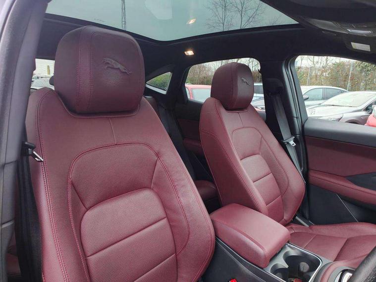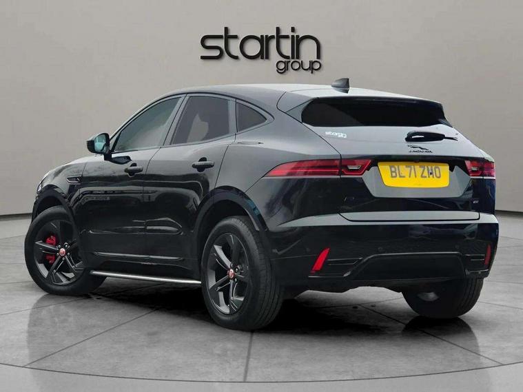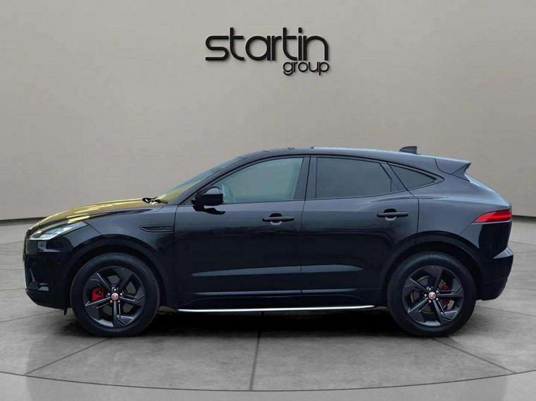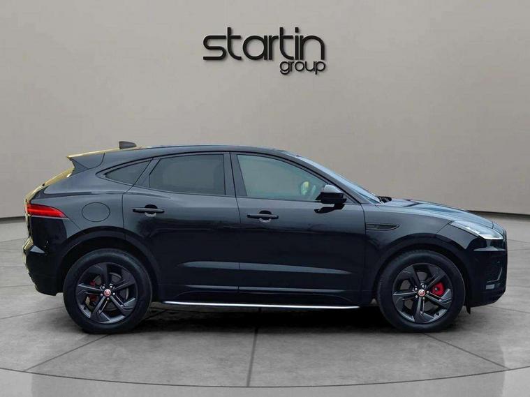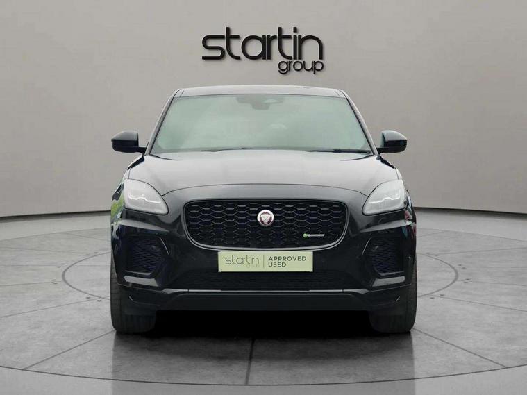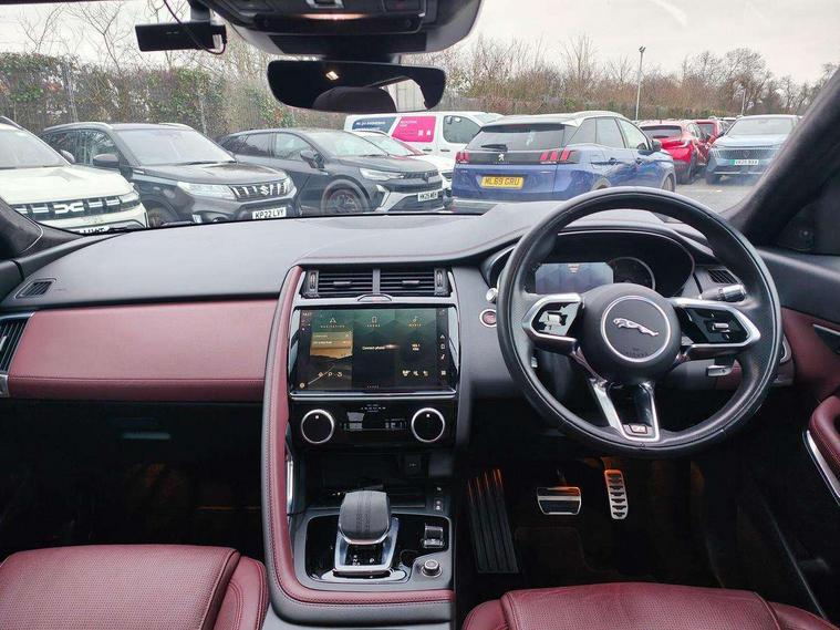 11.4" touchscreen with central ICP, 12.3" full digital instrument panel, Adaptive cruise control, Android Auto, Apple car play, Driver condition monitor, Eco driving style assistant, Electric power assisted steering, Emergency services call system, Front and rear parking aid, InControl remote, Jaguar drive control with adaptive surface response, Jaguar Toggle sport shift selector, Lane keep assist, Outside temperature gauge, Pivi pro connected infotainment system with smart settings and navigation pro, Push button start, Speed proportional steering, Traffic sign recognition with adaptive speed limiter, Trip computer, Voice control system, Configurable dynamics, Diesel particulate filter, Efficient Driveline, Passive suspension, AM/FM DVD MP3 radio, Bluetooth connectivity including audio streaming, DAB digital audio broadcast, Dynamic volume control, 3 flash lane change indicators, Approach Illumination, Auto high beam assist, Automatic headlights, Body colour door handles, Body colour upper spoiler, Body coloured side sills, Centre high-mounted stop light, Electric front/rear windows with one touch/auto up/down, Electric heated/power fold memory door mirrors with approach lights and auto dimming driver side, Embossed leaper for grained and windsor leather, Fixed panoramic glass sunroof, Heated washer jets, Heated windscreen, Jaguar script and leaper, LED tail lights, LED third brake light, Narvik black antenna pod and side pillar finisher, Narvik black door mirrors, Narvik black front and rear low bumpers, Narvik black lower side cladding, Privacy glass, R Dynamic badge, Rain sensor windscreen wipers, Rear fog lights, Rear side wing doors, Rear wash wiper, Satin black grained front outer grille, low grill mesh and low bumper valence, side fender vent mesh and finisher, rear tow eye cover and grille mesh, Twin exhaust tailpipe, Variable front intermittent wipers, 3 rear head restraints, 3 seat bench in 2nd row, 40:20:40 rear seat fold, Bright metal pedals, Carpet mats, Centre console with armrest, Enhanced ambient lighting, Hooks loadspace, ISOFIX on outer rear seats, Loadspace cover, Loadspace light, Loadspace storage net, Luggage tie-downs in loadspace, Manual height/reach adjust steering wheel, Multifunction steering wheel, Overhead lighting console, Passive front head restraints, Power sockets, R-Dynamic branded leather steering wheel, Rear air vents, Rear bench seats, Satin chrome gearshift paddles, Single front passenger seat, Sunvisors with illuminated vanity mirrors, Twin front cupholders, Two zone climate control, Exterior black pack - E-pace, 3x3 point rear seatbelts, ABS, All surface progress control (ASPC), Child locks on rear doors, Customer configurable autolock, DSC - Dynamic Stability Control, Electronic brake force distribution, Electronic parking brake, Emergency brake assist, Emergency braking, Front airbags with passenger seat occupant detector, Front and rear curtain airbags, Front and rear seatbelt reminder, Front passenger airbag deactivation, Front seatbelt pretensioners, Front side airbags, Height adjustable front seatbelts, Hill start assist, Low friction launch, Power child locks, Torque vectoring brake, Tyre pressure monitoring system, Intrusion sensor and alarm, Locking wheel nuts, Remote central locking,