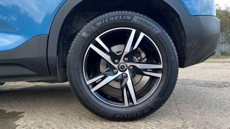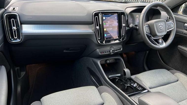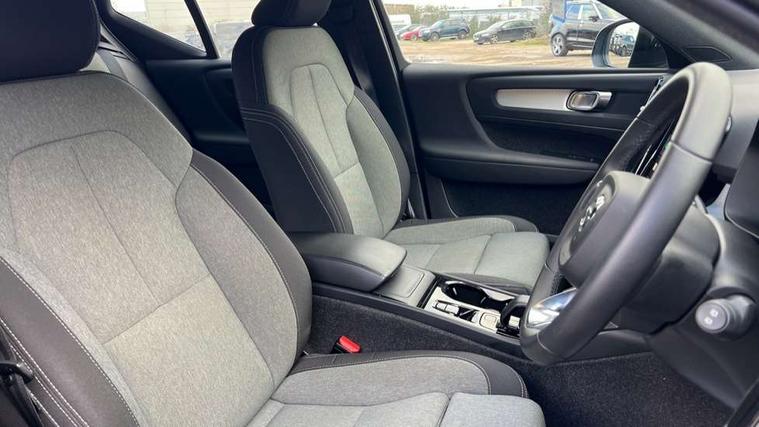 12.3" Progressive Driver Display, 360 degree surround view parking camera with side proximity sensors, 9" centre console portrait touch screen, Adjustable steering wheel force, Bluetooth hands free telephone kit, Cruise control, E-call, Front park assist, Google automatic services - Nav with google maps, apple carplay/android auto, voice recognition with google assistant, Hands free power tailgate, Lane keep assist with driver alert control, Oncoming Lane Mitigation, Rear park assist, Speed limiter, Speed sensitive steering, Wireless/Inductive Mobile Phone Charging, Dynamic chassis, DAB Digital radio, High performance sound, 8 speakers/250W, front USB and 2 rear type C USB, Steering wheel mounted remote controls, Adaptive brake lights with high level LED brake lights, Auto dimming feature for exterior door mirrors, Auto dimming interior mirror, Automatic headlamp levelling, Automatic LED Headlights + Active high beam incorporating daytime running lights, Front aluminium tread plates, Front and rear electric windows, High gloss black front and rear skid plate, High gloss black mesh front grille with high gloss black surround, High gloss black window trim, Home safe and approach lighting, Integrated roof rails in high gloss black, LED front fog lights, Puddle lights, Rain sensor with automatic windscreen wiper activation, Rear side wing doors, Rear wiper, Roof antenna, Roof spoiler, Visible VIN plate, 12V socket in front tunnel console and luggage compartment, 2-Zone electronic climate control with CleanZone air quality system and pollen filter, 3 seat bench in 2nd row, 3 Spoke tailored steering wheel with chrome trim, 60/40 versatile split folding rear seat, A-pillar parking ticket holder, Ambient front door and instrumental panel lighting, Centre console cupholders and storage, Flexible load floor and grocery bag holder, Floor mats, Front door pocket and front cupholder illumination, Front footwell illumination, Front headrests, Front reading light and theatre lighting, Front seat cushion extensions, Front tunnel pocket, Glovebox bag hook, Heated front seats, Height adjustable passenger seat, Height/reach adjustable steering column, High gloss centre tunnel deco, Illuminated glovebox, Illuminated luggage compartment, Illuminated tailgate, Illuminated vanity mirrors, Integrated waste bin, Isofix attachments on outer rear seats, Load protection net, Multi directional lumbar support, Power driver seat with memory + exterior mirrors memory, Rear armrest / integral cup holders / storage tray, Rear headrests, Rear reading and courtesy lights, Single front passenger seat, Underfloor cargo storage, Climate pack without heated front seats - XC40, 3x3 point rear seatbelts, City safety with steering support with Pedestrian + cyclist + front collision warning with full auto brake and rear auto brake, Drivers knee airbag, Dual stage driver/passenger airbags, Electronic parking brake with auto hold, First aid kit, Front and outer rear seatbelt reminder and pretensioners, Front seats SIPS airbags, Hill descent control, Hill start assist, Inflatable curtain, Passenger airbag cut-off device, Power child locks on rear doors, Road sign information display, Run off Road Mitigation, Run off Road Protection, SIPS (Side Impact Protection System), Slippery road and hazard light alert, Stability and Traction Control with Spin control, Engine Drag Control and Corner Traction Control, Tyre pressure monitoring system, Vehicle deceleration control with Anti-lock Brake System, Electronic Brake Distribution and Emergency Brake Assist, Warning triangle, WHIPS whiplash protection system - front, Anti-theft alarm including immobiliser/volume sensor + level sensor, Key integrated remote control central locking + fuel flap with deadlocking system and auto open/close power windows, Keyless drive includes keyless entry and keyless start, Locking wheel nuts,