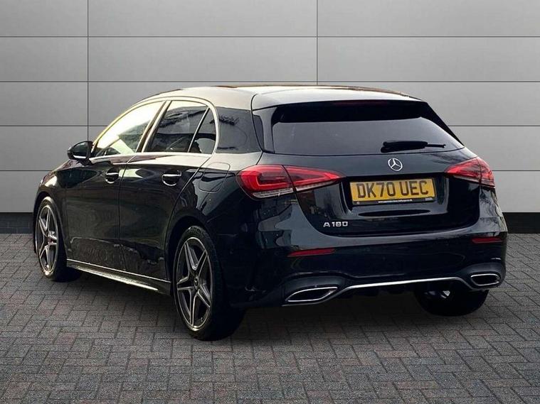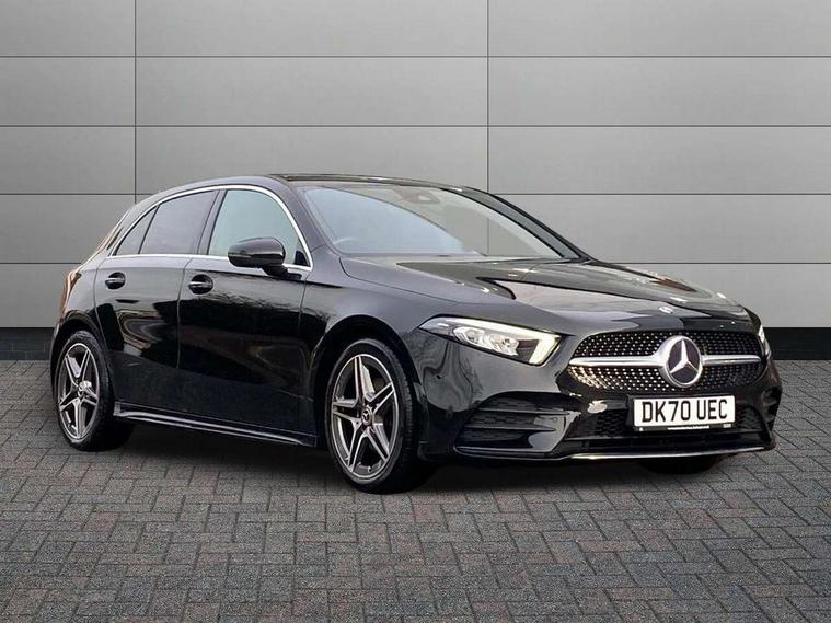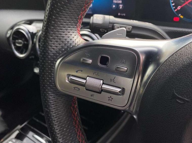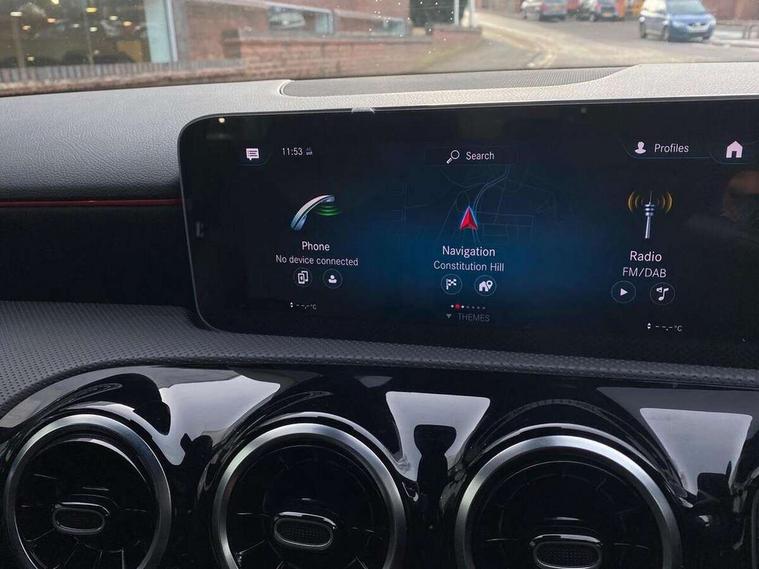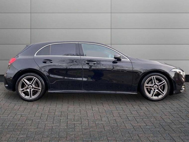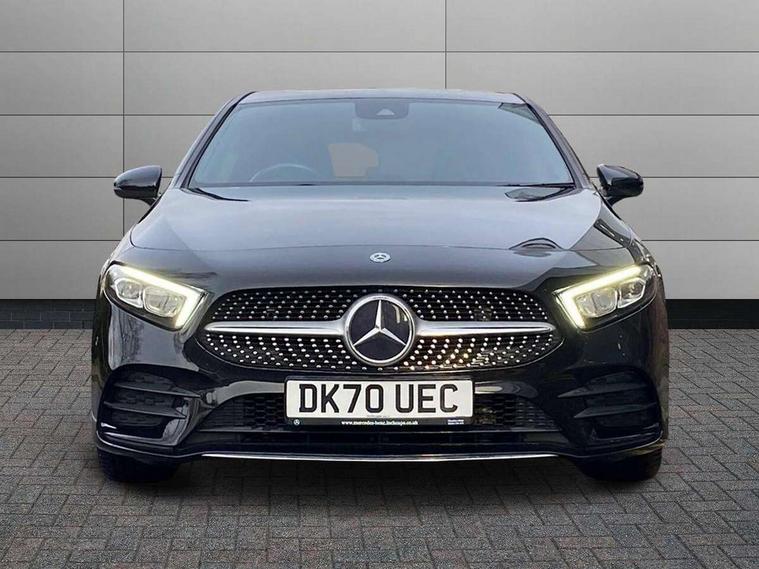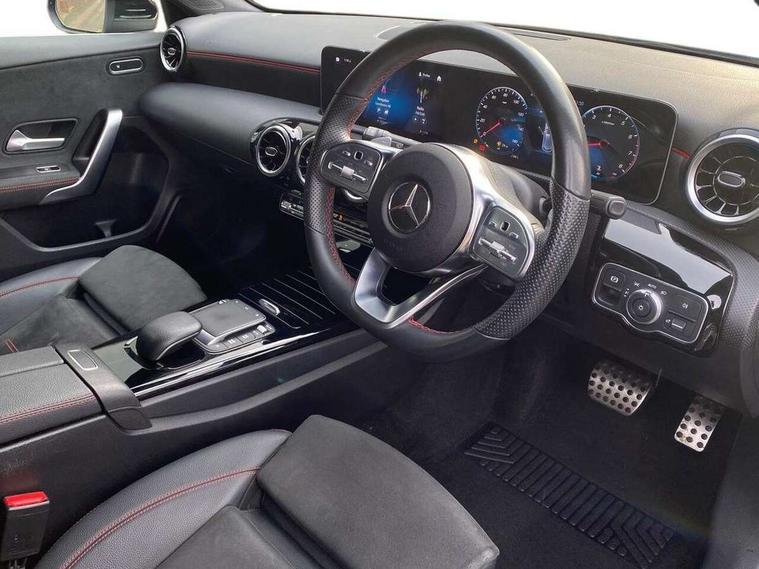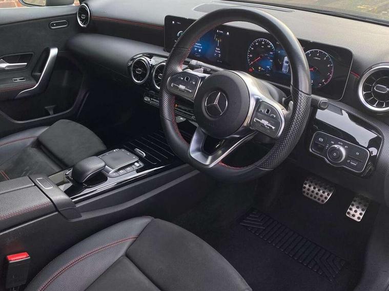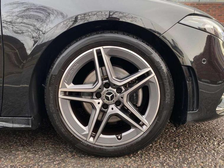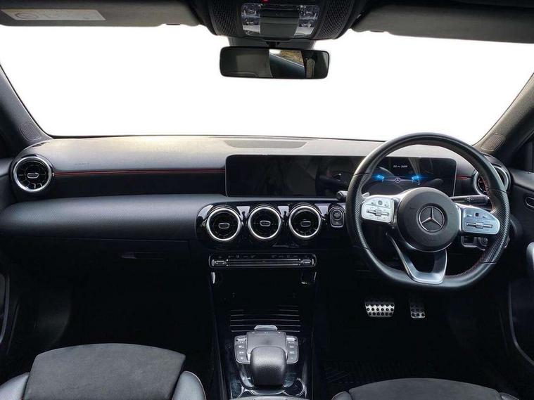 10.25" media display, 180 degree rear view camera with parking guidelines, 7" colour screen in instrument panel, Active lane keep assist, Active park assist with parktronic system including front and rear parking sensors, Attention assist, Brake pad wear indicator warning light, Car wash mode, Cruise control + speed limiter, Direct steering, Dual bluetooth interfaces, DYNAMIC SELECT with a choice of driving modes (ECO, Comfort, Sport and Individual), ECO start/stop function, Fluid level warning indicator for fuel, oil, coolant and washer fluid, Hard-disk navigation, Hey Mercedes Voice activation, Lamp failure indicator, Mercedes me connect including emergency call system, accident recovery, breakdown and maintenance management, Outside temperature gauge, Owners manual in English, Pre-installation for private car sharing, Pre-installation for Vehicle Monitoring, Pre-installation for Vehicle Setup, Preinstallation for Mercedes Benz link, Service indicator (ASSYST), Smartphone integration with Apple CarPlay and Android auto, Speed sensitive power steering, Trip computer, Wireless charging, Lowered comfort suspension, Rear axle torsion beam, 2 USB ports (type C) in rear stowage compartment and one in front of center console, 6 speakers, DAB Digital radio, MBUX multimedia system with DAB digital radio and touchpad including satellite navigation, Mercedes-Benz sound system - 100W, 4 Electric Front and Rear windows, Adaptive brake lights, AMG bodystyling - Front apron with splitter in chrome, rear apron with chrome trim and chrome visible trim elements in tailpipe, Black weather strip, Body colour bumpers, Body colour door handles, Body colour side skirt, Body coloured door mirrors, Chrome beltline trim, Diamond radiator grille with chrome pins and silver louvre + chrome insert, Electric adjustable and heated door mirrors with integrated LED side indicators, Exhaust system - Twin visible tailpipes in polished stainless steel, Headlamp assist automatic headlamp activation, Heated glass rear windscreen + timer control, LED high performance headlamps with integrated LED daytime running lights, LED tail lamp, LED third brake light, Privacy glass, Radio aerial, Rain sensing windscreen wipers with two sensitivity settings, Rear fog lights, Rear wiper, Window line trim strip in chrome, 3 Spoke flat bottom leather multi function steering wheel with perforated leather in grip area, 40:20:40 split folding rear seats, Artico man-made leather/Microfibre Dinamica upholstery with red contrast stitching, Auto Mercedes-Benz child seat recognition sensor, Black air vents with surround in silver chrome, Black roof lining, Brushed stainless steel sports pedals with rubber studs, Controller on centre console with chrome surround, Floor mats with stitched edging and AMG lettering, Front centre armrest with storage compartment, Front door sills with Mercedes Benz lettering, Front seat backs luggage nets, Front seat cushion length adjustment, Galvanished gear shift paddles on steering wheel, Heated front seats, Height/reach adjustable steering column, Interior mirror with reading lamps in black and frameless, Manual height adjustable front seats, Rear head restraints, Seat occupancy sensor for front passenger seat, Sports seats with integrated headrests, Stowage compartment in centre console with retractable cover, Sunvisors with illuminated vanity mirrors, Touchpad on center console, Twin front cupholders, Two zone thermotronic luxury automatic climate control, Light and sight pack - A Class, Mirror package - A Class, Seat comfort pack - A Class, 3 rear 3 point seatbelts, ABS with Brake Assist, Active bonnet, Active brake assist includes forward collision warning system with autonomous braking, Adaptive brake assist with hold function and hill start assist, Black seatbelts, Childproof locks manually operated for rear doors and electrically operated for rear power windows, Crash responsive emergency lighting, Driver and passenger head and side airbags, Drivers knee airbag, Dual stage driver/passenger airbags, Electronic parking brake, ESP curve dynamic assist, ESP with ASR, Front and rear seatbelt reminder, Front brake callipers with Mercedes Benz lettering, ISOFIX and top tether child seat fixing points in two outer rear seats, Tyre pressure monitoring system, Warning triangle and first aid kit, Window airbags, Alarm system/interior protection/immobiliser, Keyless Go, Remote central locking and crash sensor with emergency opening function, Urban guard vehicle protection system with immobiliser and interior protection, Dinamica microfibre trim in black, 18" AMG 5 twin spoke light alloy wheels in titanium grey with highsheen finish, Summer tyres, Tirefit sealant kit,