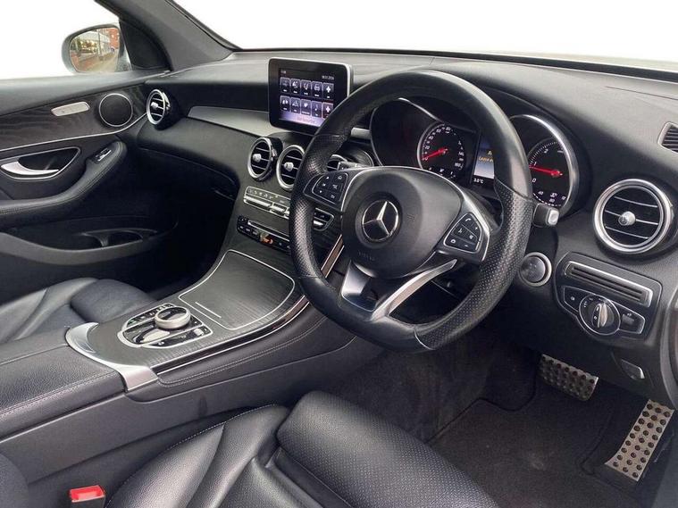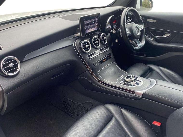 7" colour screen, Active park assist with parktronic system, Attention assist, Bluetooth interface for hands free telephone, Collision prevention assist plus, Crosswind Assist, DYNAMIC SELECT with a choice of driving modes (ECO, Comfort, Sport, Sport+ and Individual), Garmin Map Pilot navigation system with SD card, touchpad and voice control, Instrument cluster with 5.5-inch TFT multi-function display, Multi function trip computer, Outside temperature gauge, Power opening/closing tailgate, Remote boot release, Service indicator (ASSYST), Speed sensitive steering, Diesel particulate filter, 5 speakers, DAB Digital radio, Frontbass loudspeakers, Mercedes Audio 20 radio/single CD + telephone keypad, USB connection, Adaptive brake lights, Aerodynamic rear spoiler, AMG bodystyling, Automatic headlights, Body coloured bumpers, Chrome exterior trim, Electric windows one touch open/close, Electrically adjustable and heated door mirrors, Exhaust tailpipe finisher, Heated windscreen washers, LED daytime running lights, LED rear lamps, Privacy glass (to rear of B post), Rain sensor windscreen wipers, Range adjustable headlights, Rear wiper, Tinted glass all round, 2 cupholders in front centre console, 2 way rear head restraints, 3 spoke flat bottom AMG steering wheel in nappa leather, 4 way adjustable front head restraints, 4 way electric lumbar support for driver and front passenger, 40:20:40 split folding rear seats, AMG floor mats, AMG sports seats, Auto Mercedes-Benz child seat recognition sensor, Automatic climate control, Black roof lining, Dividing net - rear, Electric front seat height adjustment, Front armrest with storage box, Front door sills with Mercedes Benz lettering, Gearshift paddles, Heated front seats, Height/reach adjustable steering column, Illuminated glovebox, Multifunction steering wheel, Rear top tether child seat ISOFIX attachment, Sports pedals with stainless steel surfaces and rubber studs, Sunvisors with illuminated vanity mirrors, Easy-pack load compartment cover, Interior lighting pack - GLC, Mirror pack - GLC, Storage pack - GLC, 3 rear 3 point seatbelts, ABS with Brake Assist, Active bonnet, Adaptive brake system, Brake calipers with Mercedes-Benz lettering + perforated brake discs, Child proof door locks, Drivers knee airbag, Dual stage driver/passenger airbags, Electronic parking brake, ESP with ASR, Front and rear seatbelt reminder, Front passenger seat occupancy sensor, Front side airbags, Hill hold function, Tyre pressure monitoring system, Warning triangle and first aid kit, Window airbags, Alarm system/interior protection/immobiliser, Automatic door locking, Keyless Start, Remote central locking, All season tyres, Tyre inflation kit,