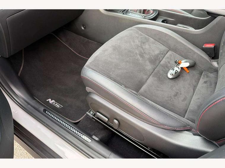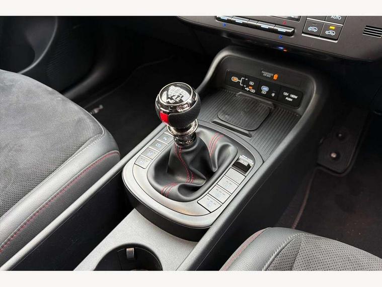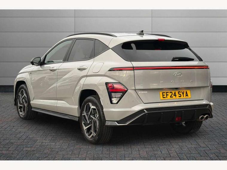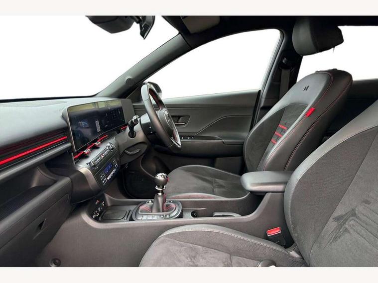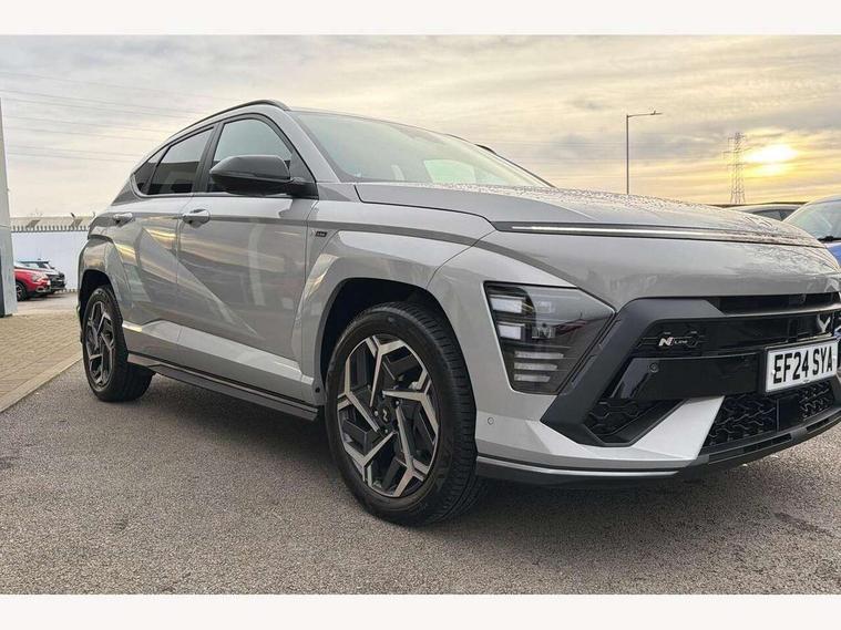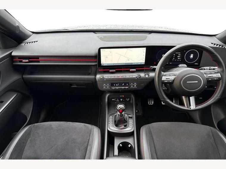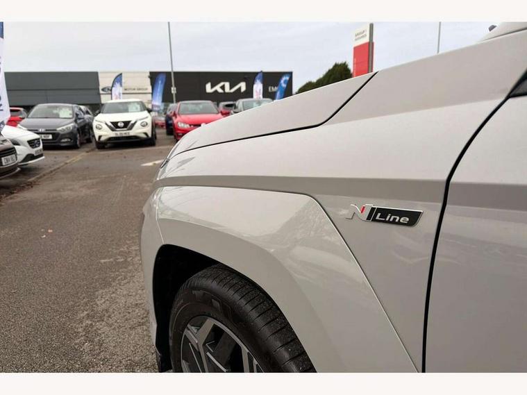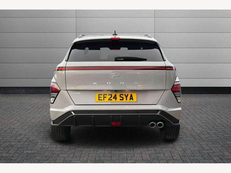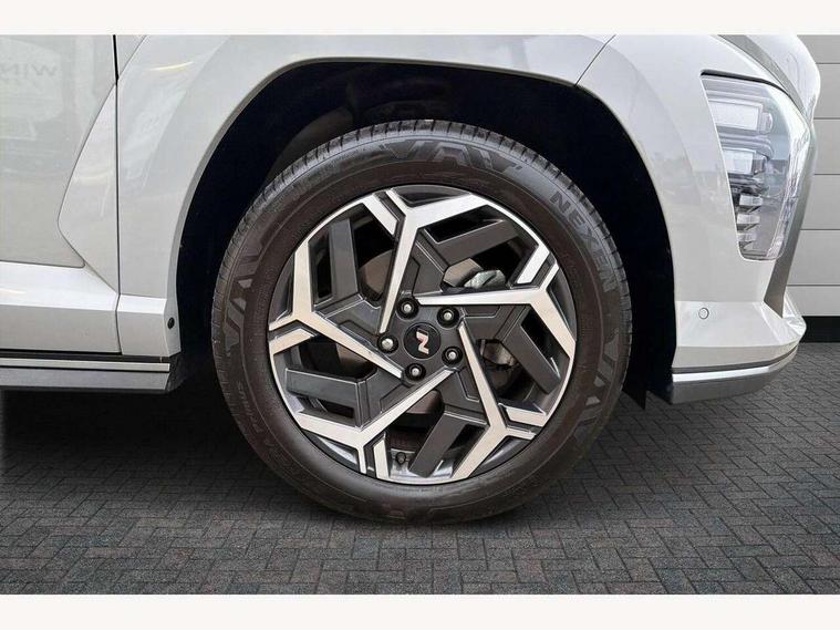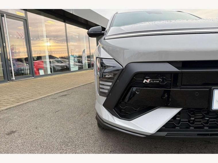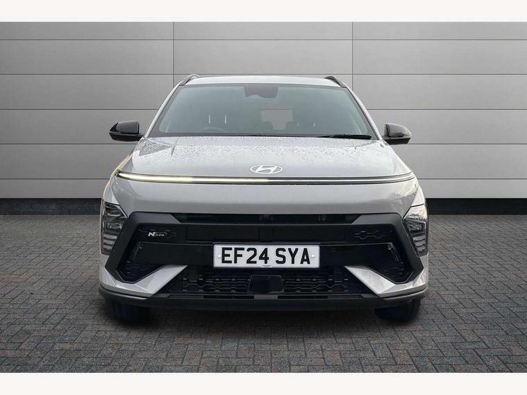 12.3" touchscreen centre console display satellite navigation with bluelink, live services and mapcare, Blind spot collision avoidance assist, Blind spot view monitor, Bluetooth connectivity with voice recognition, Cruise control, Digital clock, Driver status monitor (DSM), Driver supervision instrument cluster with 12.3" LCD display, eCall emergency call system, Feature on demand - Enabled, Forward collision avoidance assist (FCA 1.5) - Car, pededstrian, cycle and junction turning, Front parking sensor, Height adjustable power tailgate, Intelligent speed limit assist, Lane follow assist, Lane keep assist, Leading vehicle departure alert (LVDA), Parking Collision Avoidance Assist-Reverse (PCA-R), Parking distance warning - side, Parking system with rear camera and guidance system, PAS, Rear cross traffic collision avoidance (RCCA), Rear parking sensor, Roadside assistance, Safe exit warning (SEW), Surround view monitor, Windscreen washer fluid sensor and warning indicator, Wireless phone charging pad, Wireless Smartphone Integration includes Apple CarPlay and Android auto, 2 front USB C and 2 rear USB C charging points, Bose Premium Audio system with 7 premium speakers + subwoofer, DAB Digital radio, Steering wheel audio, phone and cruise controls, Auto dimming rear view mirror, Automatic headlights with dusk sensor, Automatic windscreen wipers with rain sensor, Body colour bumpers, Body colour exterior door handles, Body coloured wheel arch inserts, Door mirror LED indicator lights, Electric front windows with anti-trap mechanism and one touch control, Electric rear windows, Electrically adjustable and heated door mirrors, Gloss black door mirrors, Horizon centre LED DRL, LED projector headlights, LED upper and lower rear lights, Power folding door mirrors, Privacy glass - Rear windows and tailgate, Rear roof spoiler with integrated LED brake light, Rear side wing doors, Rear wiper, Roof rails, Solar glass with front door glass and windscreen, Tinted glass in front and rear doors, Windscreen auto defog function, 12V power outlet in front console, 2 zone climate control, 3 seat bench in 2nd row, 40/20/40 split folding rear seat, Adjustable head restraints, Aluminium pedals, Ambient lighting, Driver and passenger front seat pockets, Driver's seat electric adjustments, Driver's seat lumbar support, Driver/passenger sunvisors and illuminated vanity mirrors, Floor mats, Front passenger's seat electric adjustments, Heated front seats, Heated rear seats, Heated steering wheel, Height/reach adjustable steering column, Isofix rear child seat fastenings, Leather wrapped steering wheel and gear knob, LED centre interior light, LED front interior light, Luggage compartment LED lighting, Luggage net, Luggage shelf, Metal paint effect interior door handles, N Line Alcantara/leather upholstery, Parcel shelf, Rear centre armrest with cupholders, Rear centre console with air vents, Single front passenger seat, Ventilated front seats, Vertical adjustment rear head restraints, N Line exterior design pack - Kona, Trailer wiring package - Kona, Airbag - front, front side, curtain and centre front airbag, Anti-lock brake system (ABS), Childproof rear door locks, Downhill brake control, EBD + Brake Assist, Electric parking brake, Electronic stability control, Fasten seatbelt reminder, Fixed 3 point for second row centre passenger seatbelt, Front seatbelt pretensioners, Height adjustable front seatbelts, Hill start assist control (HAC), Passenger airbag deactivate switch, Rear seat alert, Traction control, Tyre pressure monitoring system, Alarm/immobiliser, Deadlocks, Folding key, Locking wheel nuts, Rear occupant alert, Remote central locking, Smart key with keyless entry and start/stop button, Five year annual vehicle health checks, Temporary mobility kit (TMK),