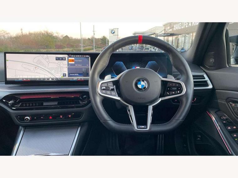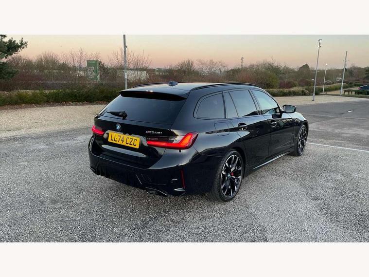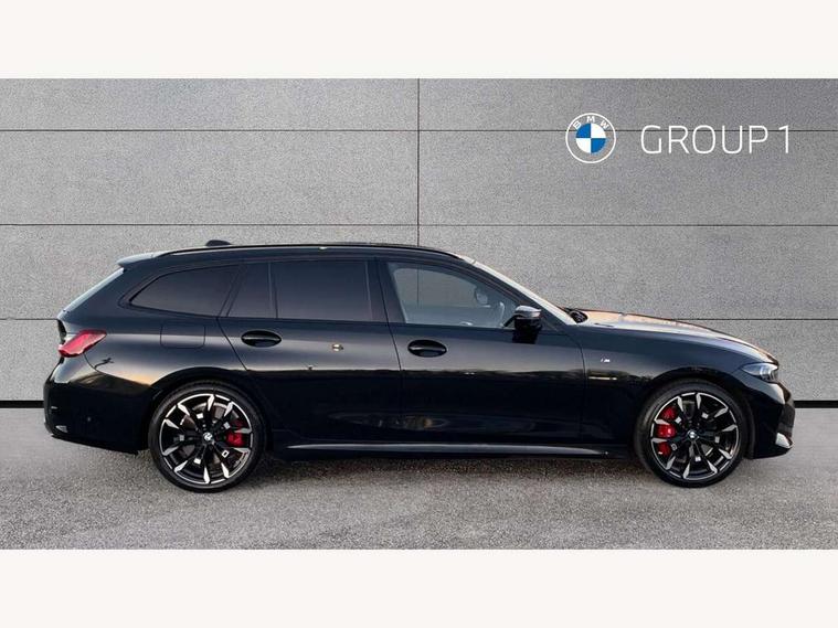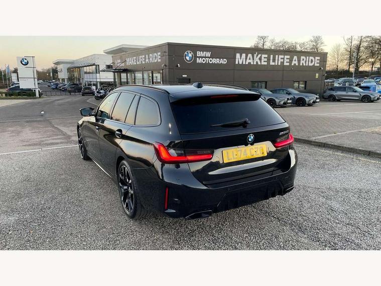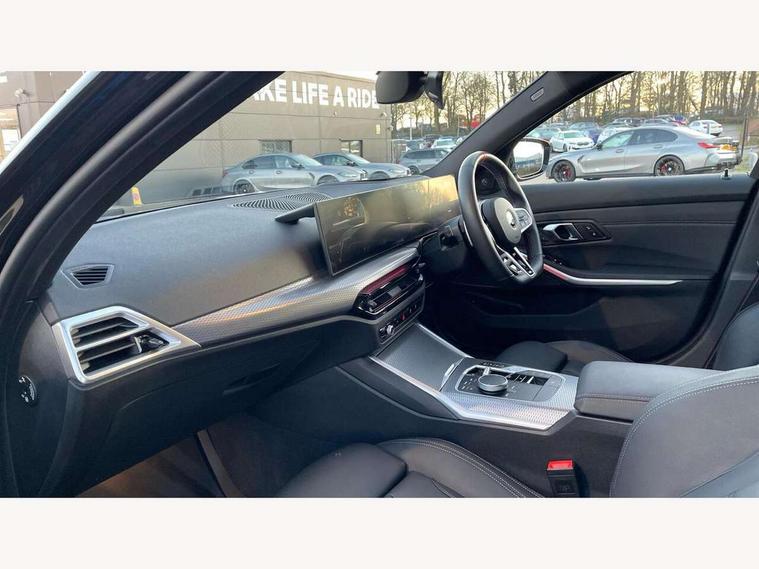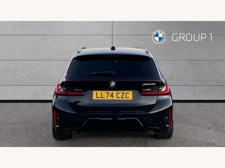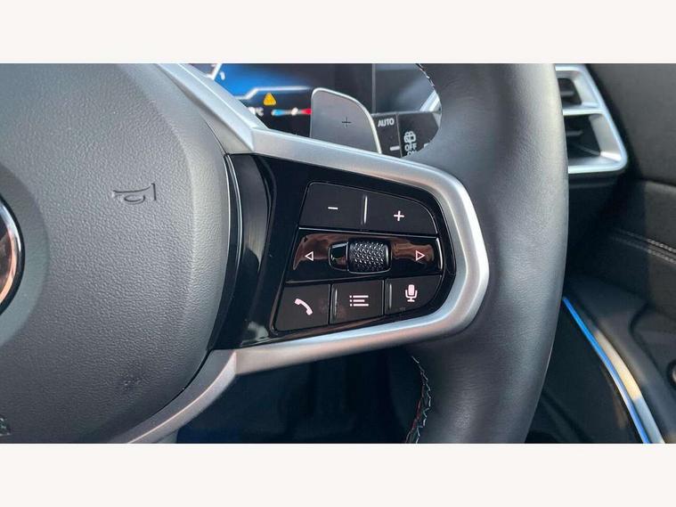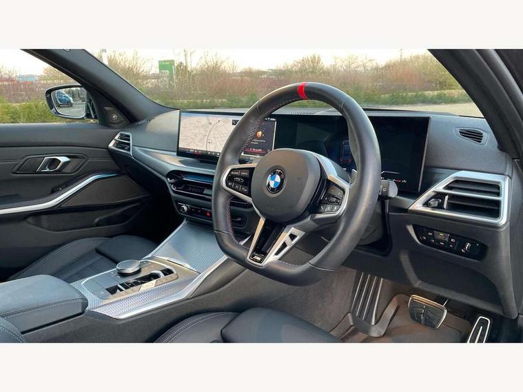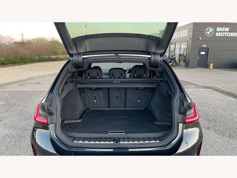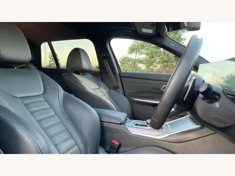 Active guard plus, Attentiveness assist, Automatic Start/stop button, Bluetooth Wi-Fi interface, BMW iDrive, BMW Teleservices, ConnectedDrive Services - last state call, Electric bootlid, Oil sensor for level and grade, Personal e-SIM, Shifting point display, Variable sport steering, 48V Mild hybrid technology, Double joint spring strut front axle, Fuel tank breather system, M Sport differential, Sport automatic transmission with steering-wheel mounted gearshift paddles and launch control, DAB tuner, 3rd brake light, Auto dimming rear view mirror, Automatic headlight beam throw control with load dependent regulating reaction, dynamic compensation of braking dive and acceleration squat, Bi-LED Low and high beam headlights, BMW emblem, engine compartment lid and tailgate, Body colour roof fin, Door sill strips, Electric windows - front and rear, with open/close fingertip control, anti-trap facility and comfort closing, Fading support, Follow me home headlight function, Front and rear bumper system with replaceable deformation elements, Front apron plastic in body colour, Fuel filler flap - right rear in body colour, Heat protection glazing on front windows and windscreen, Heated washer jets, High gloss shadow line roof rails, LED daytime running lights, LED rear lights, LED turn indicator, Licence plate panel integrated into front bumper and tailgate, M high gloss shadow line exterior trim, Matt black B-pillar finsher, Matt black window recess cover, One piece front bumper cover including towing eye cover in body colour, Rain sensor with automatic headlight activation, Rear side wing doors, Rear wiper, Reversing lights, Side frame decorative moulding black matt, Sun and heat protection glass dark tinted on rear windows and windscreen, Trailer stabilisation logic, Welcome lights in interior and door handle area, 12V power socket in front storage compartment, 2 front cupholder in centre console with clamping elements and matt black inlay, 3 seat bench in 2nd row, 3 spoke M Sport multifunction flat bottom leather steering wheel, 3 zone automatic air conditioning, 40:20:40 split folding rear seat with loading system, Ambient inside door handle light, Ambient light design projected onto the left and right entering and exiting area, Ambient lighting front and rear with 9 selectable colours, Ambient storage compartment lighting in the centre console, Anthracite headlining, Armrest integrated in front and rear door trim + front centre console armrest, BMW ID, Contour lighting in instrument panel and door trim panel, Cruise control operation in steering wheel, Driving experience mode switch, Dynamic ambient lighting for welcome, goodbye, open doors, phone call, Electric memory seats, Folding rear centre armrest with 2 cupholders, Front and rear ambient footwell lighting, Front and rear headrests, Front and rear velour floor mats, Front reading light, Heated front seats, Height adjustable mechanically and infinitely variable steering column, Illuminated armrest storage compartment, Illuminated glove compartment, Illuminated luggage compartment, Lashing eyelets in luggage compartment, Single front passenger seat, Sunvisors with illuminated vanity mirrors and ticket pocket, Toolkit located in luggage compartment, Connected pack professional - 3 Series Saloon/Touring, Interior and exterior mirror pack - 3 Series Touring/Saloon, M sport exterior styling pack - 3 Series Saloon/Touring, 3x3 point rear seatbelts, BMW emergency call, Child locks on rear doors, Crash sensor activating of airbags, Unlocking doors, hazard warning lights, interior light, safety battery terminal, Drive-off assistant, Driver and front passenger with seat occupancy detection for driver's and passenger side, Driver and passenger side airbags, body protection at side and airbags deploy from seat backrests, Dry braking, Dynamic brake control, Dynamic stability control + (DSC+) - Anti-lock Braking System (ABS) with brake assist and cornering brake control + Automatic Stability Control (ASC), Dynamic Traction Control - DTC, Electric parking brake including automatic hold function and automatic release of the parking brake when driving off, Electronic differential lock control (EDLC), Front airbag deactivation, Front airbags for driver and front passenger, Head airbags in 1st and 2nd row, head protection at side, curtain airbags open from headliner above 1st and 2nd row, Plastic fuel tank, Side impact protection, Tyre pressure sensors, Ventilated front and rear disc brakes, Warning triangle and first aid kit, Alarm system, Centre lock switch, Closing system with central locking, Electronic vehicle immobiliser, Locking wheel bolts,