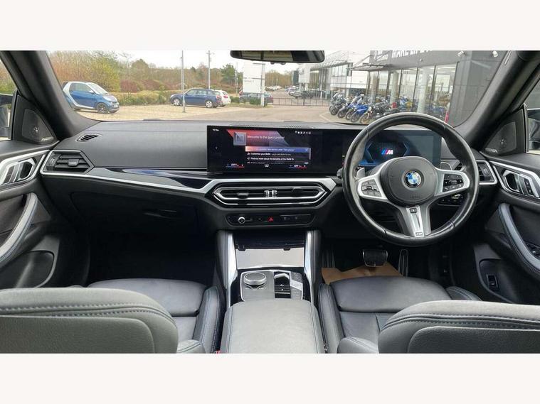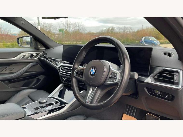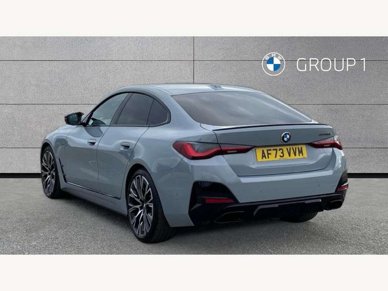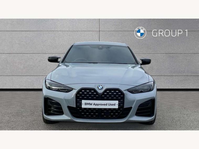 Active guard plus, Attentiveness assist, Auto start-stop, Bluetooth hands free facility with USB audio interface with audio streaming, BMW ConnectedDrive online services, BMW iDrive controller on centre console, BMW service history, BMW Teleservices, Brake pad wear indicator in front and rear, Check Control warning system for monitoring of lights and door/luggage compartment open warning, Condition based service, Electric bootlid, Electric power steering with Servotronic steering optimised at all speed ranges, Gearshift time display in manual mode, Instrument cluster with speedometer with mph readout, tachometer, fuel gauge and oil temperature gauge, Integrated owners handbook, Oil sensor for level and grade, warning by check control system, On board computer - average speed, fuel consumption, outside temp display with acoustic warning, clock/date, service interval, odometer/trip meter, Optimum shift indicator, Shifting point display, Tailgate, Variable sport steering, 48V Mild hybrid technology, 8 speed automatic steptronic transmission with gearshift paddles, Active sound design, Adaptive M suspension, Double joint spring strut front axle, Drive performance control - ECO PRO, comfort and sport modes, Low centre of gravity, M Sport differential, Petrol Particulate Filter, Sprint mode, Stroke dependent dampers, xDrive system permanent all-wheel drive variable torque distribution, 2x USB Type C ports in front centre console for charging and data transfer, 2x USB Type C ports in rear centre console for charging, DAB tuner, Electronic service booklet, Acoustic glazing, Automatic headlight beam throw control with load dependent regulating reaction, dynamic compensation of braking dive and acceleration squat, Automatic windscreen wipers and automatic headlight, Automatically dimming electrochromatic rear view mirror, BMW emblem on engine compartment lid and tailgate, BMW Individual high gloss shadow line with extended contents, BMW individual lights shadow line, Body colour fuel filler flap, Body colour roof fin, Brushed aluminium inserts in the front door sill finishers with BMW designation, Door sill strips, Dynamic brake lights, Electric windows - front and rear, with open/close fingertip control, anti trap facility and comfort closing function all round, Exterior mirrors - electrically folding with anti-dazzle, Fading support, Follow me home headlights, Front and rear bumper system, Front apron plastic in body colour, Green tinted heat protection glazing, High gloss shadow line exterior trim, Illuminated bow type door handles in body colour drivers side with door lock, Interior rear view electrochromatic mirror with automatic anti dazzle function, LED daytime running lights, LED front indicators, Licence plate panel integrated into front bumper and tailgate, Lightweight engineering, M designation on front side panels, left and right, M rear boot spoiler, Model designation on right side of tailgate, One piece front bumper cover including towing eye cover in body colour, Preparation for high beam assistant, Rear side wing doors, Rear wiper, Reversing light, Side frame decorative moulding black matt, Sun protection glass, Two part LED tailights in L-shape with components in smoked glass, brake light, LED turn indicator and rear fog light, Visible exhaust tailpipe finisher, Visible VIN plate, Welcome lights in interior and door handle area, Widened track and increased camber values for max transverse dynamics, agility and steering precision, Window recess cover black high gloss, Windscreen wipers with integrated heated washing jets, xDrive designation on left tailgate, 12V power socket in front centre console, 2 front cupholder in centre console with clamping elements and matt black inlay, 3 rear headrests, 3 seat bench in 2nd row, 3 spoke M sport leather multifunction steering wheel, 3 zone automatic air conditioning, 4 pieces lashing eyelets in luggage compartment, 40:20:40 split folding rear seat and rear centre armrest with two cupholders, Anthracite headlining, Armrest integrated in front and rear door trim + front centre console armrest, Battery in luggage compartment, BMW ID, Extended storage in Combination with sport seat net pocket on rear backrest, Four grab handles integrated in roof lining, Front and rear door pockets, Front and rear reading lights, Heated driver and front passenger seats, Height adjustable front headrests, Height adjustable mechanically and infinitely variable steering column, Illuminated armrest storage compartment, Illuminated glove compartment with separate small compartment, Luggage compartment seprating net on side trim left/right, Bag hook, 12V socket, TTH button, USB C charging in rear, Folding compartment on driver side, Make-up mirror lights, Single front passenger seat, Storage compartment in rear centre console, Sunvisors with illuminated vanity mirrors and ticket pocket, Toolkit located in luggage compartment, Velour front floor mats, Ambient lighting pack - 4 Series, Connected professional package - 4 Series, M sport exterior styling pack - 4 Series M440i, 3 point seatbelts on all seats, Battery safety cut-off, BMW emergency call, Brake energy regeneration, Braking pre-tensioning, Child proof locking system in rear door, Child seat ISOFIX attachment for the two outer rear seats, Coasting in idle in ECO PRO mode, Cornering brake control (CBC), Crash sensor activating of airbags, Unlocking doors, hazard warning lights, interior light, safety battery terminal, Driver and front passenger side airbags, integrated in the door side seat backrest bolsters for all seat variants, Driver/Front Passenger airbags, Dry braking, Dynamic brake control, Dynamic stability control + (DSC+) - Anti-lock Braking System (ABS) with brake assist and cornering brake control + Automatic Stability Control (ASC), Dynamic Traction Control - DTC, Electric parking brake including automatic hold function and automatic release of the parking brake when driving off, Electronic differe