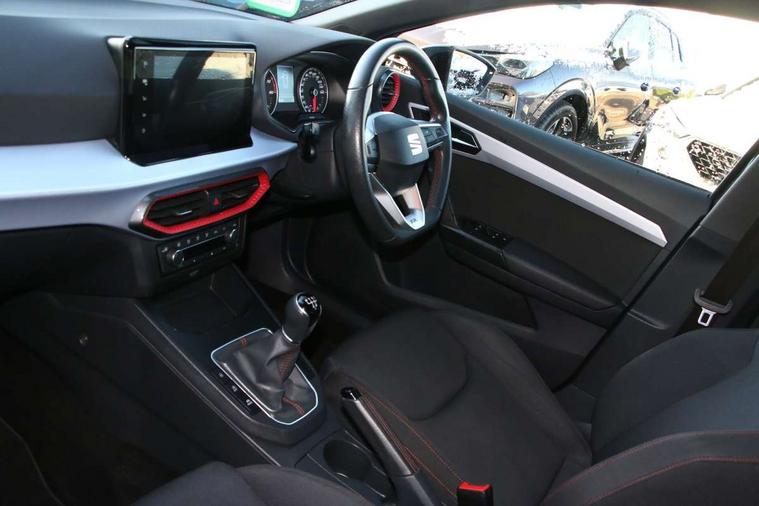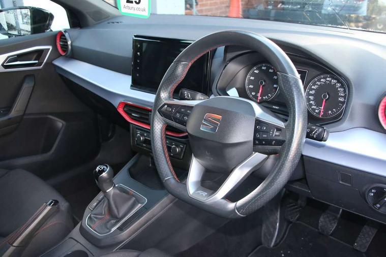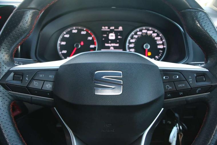 'Lights On' Reminder warning buzzer, 9.2" touchscreen navigation system with type C USB socket, Voice control and DAB/AM/FM radio, Auto start and stop system, Bluetooth audio streaming with handsfree system, Digital clock, E-call, Full link smartphone integration with mirror link, wireless apple carplay, Google android auto + USB Type C cable for apple and android devices, Lane assist, Low fuel warning light, Outside temperature gauge, Power Steering, Seat connect with safety, service, remote and online, SEAT drive profiles and ECO function, SEAT logo boot release, Speed limiter, Trip computer, Sports suspension, Auxiliary input socket, Radio/MP3 player, SD card slot, Steering wheel mounted controls, Anti theft roof antenna, Auto dimming rear view mirror, Automatic rain sensing wipers, Black door mirrors, Body colour bumpers, Body colour door handles, Brilliant black window surrounds, Dark tinted rear windows, Electric adjustable/heated/folding door mirrors, Electric front windows, Electric headlight adjustment, Electric rear windows, Front/rear fog lights, FULL LED automatic headlights with dynamic headlight range control, coming and leaving home, LED daytime running lights, LED tail lights, Rear roof spoiler with FR twin exhausts, Rear side wing doors, Rear wiper, Third brake light, 3 seat bench in 2nd row, 60/40 split folding rear seat, Ambient interior lighting, Chrome detailing and black headlining, Cloth upholstery, Dual zone climate control with combination filter, Front courtesy lights, Front cupholders x 2, Front reading lights, Gear shift indicator, Glovebox, Height adjustable front and rear headrests (five), Height adjustable front seats, Height/reach adjust steering wheel, Illuminated air vent surrounds, Illuminated boot, Instrument lighting with brightness control, Isofix, Leather multifunction flat bottomed sports steering wheel, Passenger sunvisor, Single front passenger seat, Sports seats, Sunvisors with mirror and driver side card holder, 3 point seatbelts on all 3 rear seats, ABS, Active front headrests, Child locks on rear doors, Electronic stability control, Energy recovery system, Front assist forward collision warning and autonomous emergency braking, Front driver and passenger side airbags with curtain airbag and front passenger airbag deactivation, Hill hold control, Multi-Collision braking, Seat belt reminder for front and rear seats, Tiredness recognition system, Tyre pressure monitoring system, Electronic engine immobiliser, Locking wheel bolts, Perimeter alarm and interior monitoring with backup horn and tow away protection, Remote central locking + deadlocks, 17" Alloy wheels in Brilliant silver,