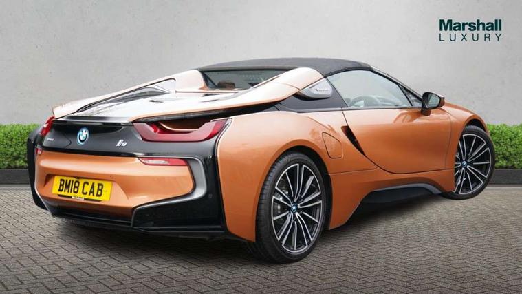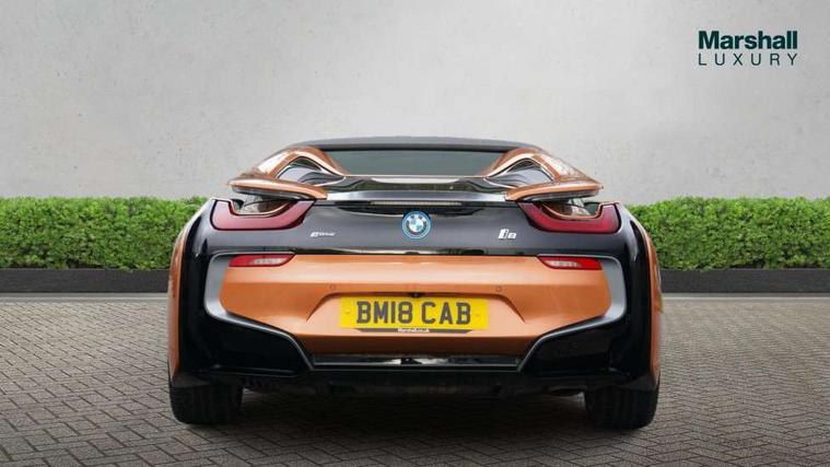 20GB Hard drive, BMW display key, Brake pad wear indicator warning light, Check control system, Cruise control with brake assist, Electric power steering, Enhanced bluetooth with wireless charging, Front/rear park distance control, Head up Display, iDrive controller and gear selector in ceramic black, iDrive Touch Controller with 8.8" colour display, Luggage compartment with electric unlocking via key remote control, Multifunctional instrument panel, Navigation System Professional Multimedia, On board computer, On-board diagnosis - OBD, Outside temperature display, Personal Profile, Service interval indicator, Stop/start button, Variable Damper Control, Double wishbone suspension, Drive Performance Control, Multi-link rear suspension, Aux input, BMW professional radio, DAB Digital radio, Harman/Kardon loudspeaker system, Wi-Fi hot spot, Aluminium bonnet in two tone body colour and high gloss black, Auto dimming door mirrors, Auto dimming rear view mirror, Body colour bumpers, Body colour door mirrors, Dynamic brake lights, Electric + heated aspheric door mirrors, Electric folding door mirrors, Electric front windows with fingertip open/close + anti-trap facility, Fogging sensor for front windscreen, Fuel filler cap, Green tinted heat insulating glass, Headlight washers, Heated windscreen washer jets, High gloss black kidney grille, LED welcome home lights, Rain sensor with auto light activation system, Twin exhaust tailpipe, Welcome lighting, 12V power outlets, Adjustable steering column, Ambient interior lighting, Anthracite Velour floor mats, Auxiliary air conditioning, Cup holders, Dual zone automatic air conditioning, Electrically adjustable front seats, Front centre armrest with storage compartment, Front footwell lights, Front seat back storage pockets, Glovebox, Heated front seats, Integrated front head restraints, LED reading lights, Passenger footwell storage net, Rear coat hooks, Removable load compartment cover, Sport multifunction leather steering wheel in black with satin silver accent with gearshift paddles, Storage nets, Sunvisors with vanity mirrors, ConnectedDrive Services pack - i8, Driving assistant pack - i8, ABS/EBD, Cornering brake control (CBC), Crash Sensor - activates hazard/interior lighting + unlocks doors, Deformation zones front and rear, Driver/Front Passenger airbags, Driver/front passenger side airbags, DSC+, Dynamic brake control, Dynamic Traction Control - DTC, Electromechanical parking brake, Front and rear head airbags, Front passenger airbag deactivation, Front seatbelt force limiters, Front seatbelt pretensioner, Gloss black brake calipers, Hill start assist, Passenger occupancy sensor, Rear seatbelts with pre-tensioners and load limiters, Tyre pressure monitoring system, Warning triangle and first aid kit, Comfort access system, Engine immobiliser, Key integrated remote control central locking, Keyless ignition, Locking wheel bolts, Remote control Thatcham category 1 alarm, Leather instrument panel, Tyre repair kit,