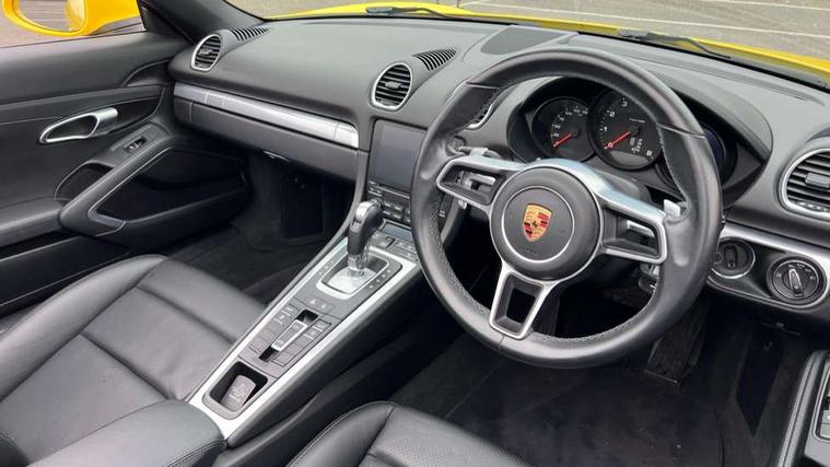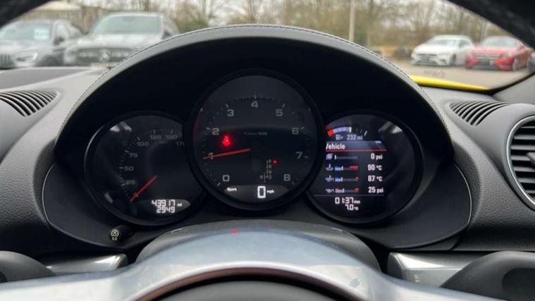 Black rev counter, Multi function display, On board computer, PCM navigation module, PCM voice control, Porsche communications management, Porsche Connect Plus, Sports button, Telephone module for PCM, Porsche stability management (PSM), Connect Plus with Apple CarPlay, wireless internet access, Carfinder, Remote Vehicle Status and Remote Services, DAB Digital radio, 2 speed front wipers + intermittent wipe, Automatic headlights, Automatically extending rear boot spoiler, Body colour bumpers, Coming home function, Door entry guards with logo, Electric heated rear glass window, Electric windows one touch open/close, Electrically operated hood with heated rear window, Green tinted glass, LED daytime running lights, LED rear lights, Top tinted windscreen, Twin exhaust tailpipe, Water repellent side windows, Wind deflector, Windscreen with grey top tint, 12V sockets in front centre console and passenger footwell, 2 cupholders, Active carbon filter, Air recirculation system, Clothes hooks on front seat backrests, Defrost switch, Electrically adjustable backrest, Footwell illumination, Front and rear luggage compartments, Front centre console storage box, Glovebox illumination, Height/reach adjust steering wheel, Ignition Lock illumination, Illumination of luggage compartment, Interior orientation lighting, Interior roof lining, LED reading lights, Lockable glovebox, Passenger footwell storage net, Steering wheel, gear lever and door pulls in smooth finish leather, Storage compartments in doors, 3 point automatic seatbelts, ABS+ABD, ASR, Black brake calipers, Driver and passenger airbags, Electronic parking brake, Front seatbelt pretensioners + load limiters, Head airbags, Passenger airbag deactivate switch, POSIP, Side (thorax) airbags, Tyre pressure monitoring system, Alarm, Porsche vehicle tracking system (VTS), Remote control central locking, Transponder engine immobiliser, Black instrument dials, Tyre repair kit, including sealant foam,