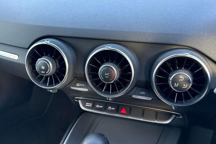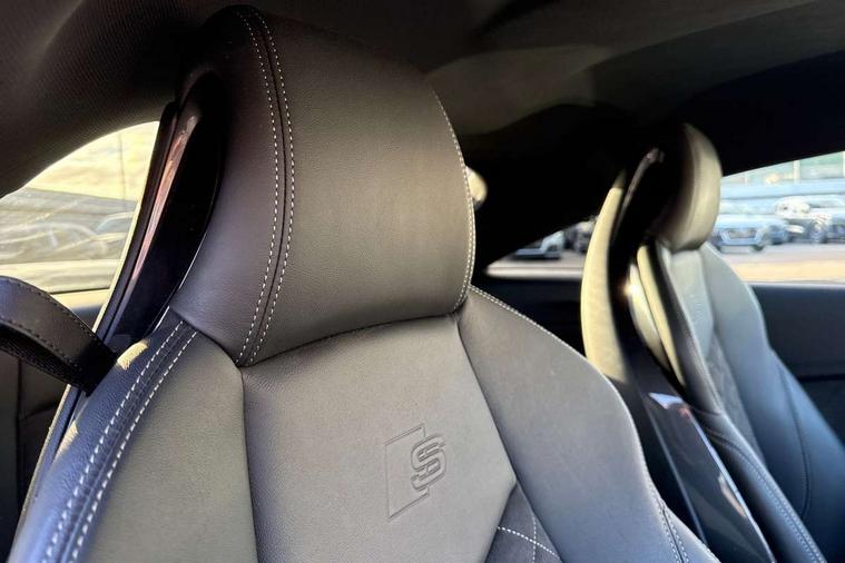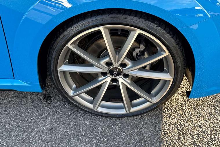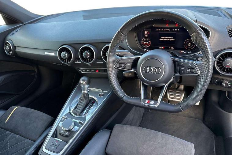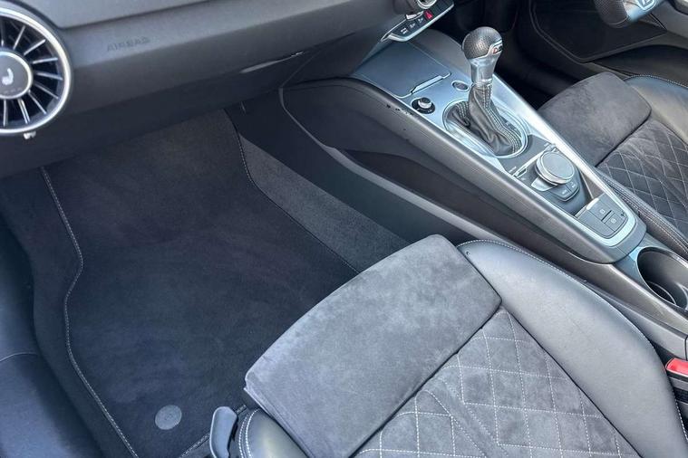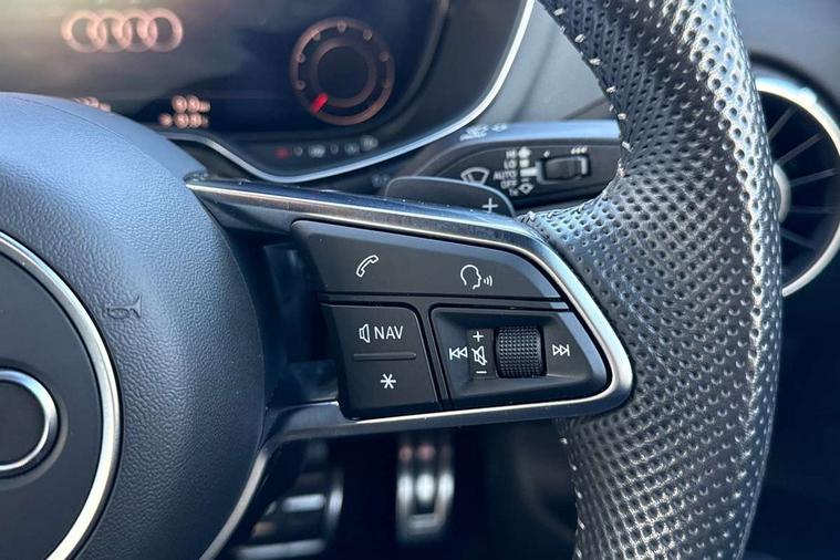 Audi drive select with 4 Pre configured modes, Audi smartphone interface, Audi virtual cockpit - 12.3" high-resolution LCD display with fully customisable instrument cluster, Cruise control + speed limiter, MMI touch panel, Mobile phone preparation with bluetooth interface, Progressive power assisted steering, Service interval indicator, Start/Stop system with energy recuperation, TP memo, Sports suspension, AM/FM radio, Bluetooth audio streaming, DAB Digital radio, MMI Radio with CD player and SD/XC card slot, Auto dimming rear view mirror, Auto headlight range control, Black chrome tailpipe, Dark privacy glass from B-pillar backwards, Electric folding door mirrors, Electric front windows, Electrically adjustable and heated door mirrors with integrated LED side indicators, Front fog lights, Green tinted heat insulating glass, LED daytime running lights, LED headlights with LED rear lights + dynamic rear indicators, Light and rain sensors, Sunband for windscreen, 12V socket, 3 spoke flat bottomed high multi-function leather sport steering wheel with gearshift paddles, 4 way electric lumbar support for driver and front passenger, Black headlining, Contrasting silver stitching in steering wheel, Door sill trims, Extended aluminium look with stainless steel pedals, Front centre armrest, Front super sports seats, Heated front seats, Height adjustable driver's seat, Height adjustable front head restraints, Height/reach adjust steering wheel, ISOFIX child seat mounting for front passenger seat with airbag deactivation, Manual adjustment of seat height, fore/aft position, seat angle, seat depth and backrest angle, Perforated leather gearknob in black, Rear head restraints, Rear top tether child seat ISOFIX attachment, Split folding rear seat, Tool kit, Black styling pack - TT, Non smoking pack - TT/TT RS, 3 point front seat belts, ABS, ASR traction control, Curtain airbags, Driver and front passenger airbag with front passenger airbag deactivation, EDL traction control, Electromechanical parking brake, ESP, First aid kit, Front side airbags, Head airbags, Hill hold assist, Seatbelt warning, Tyre pressure loss indicator, Warning triangle, Anti theft alarm, Anti theft wheel bolts, Immobiliser, Keyless Go, Remote central locking, Matt brushed aluminium inlays, Tyre repair kit,