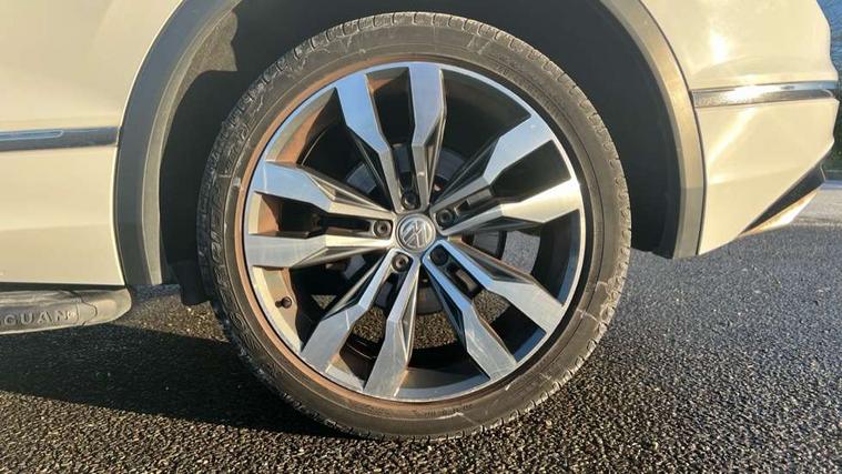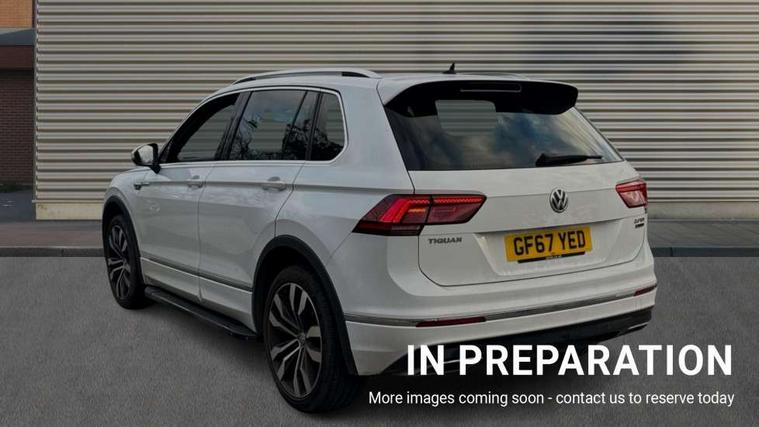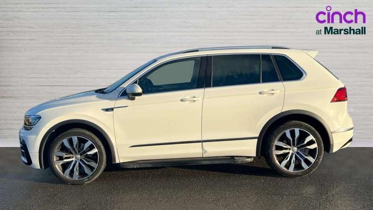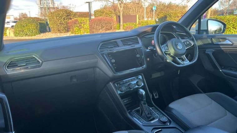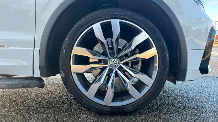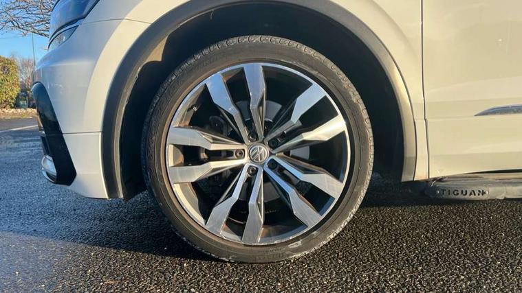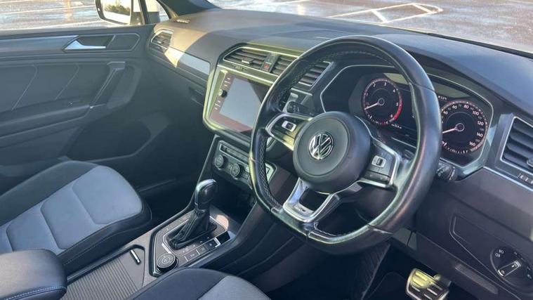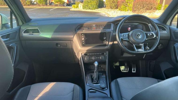 Active information display, Adaptive cruise control, App-Connect, Bluetooth phone integration system, Drive mode selector, Instrument cluster, Lane assist, Low washer fluid warning light, Outside temperature display, Progressive power assisted steering, Service interval indicator, Speed limiter, Warning lights, Diesel particulate filter, XDS electronic differential lock, 2x USB sockets in front, Aux-in socket, DAB Digital radio, SD card slot, Auto dimming interior mirror, Automatic activation of hazard warning lights, Black roof rails, Body colour door handles, Body colour door mirrors, Body colour rear spoiler, Body coloured bumpers, Chrome side window surrounds, Chrome trimmed radiator grille, Coming/leaving home lighting function, Dual chrome exhaust, Dusk sensor + auto driving lights, Electric folding door mirrors, Electric heated + adjustable door mirrors, Electric panoramic sunroof with sunblind, Front and rear electric windows, Heated rear window, LED headlights with dynamic light assist daytime running lights and cornering front fog lights, LED rear lights, Piano black rear diffuser, R Line body kit, Rain sensor windscreen wipers, Rear windscreen washer and wiper with interval delay, Silver under body guard, Tinted windows (B pillar backwards), Twin trapezoid chrome exhaust pipes, 12V Accessory socket in centre console, 3 rear headrests, 3 zone climate control, 4 load lashing points, 40:20:40 split folding rear seats, Bag hook in luggage compartment, Black headlining, Driver + front passenger lumbar support, Foldable passenger seatback, Front + rear carpet mats, Front centre armrest with 12v socket, Front centre armrest with storage + rear 2 air vents + cupholders, Front seatback folding tables, Height/reach adjust steering wheel, Illuminated driver/passenger vanity mirrors, Illuminated scuff plates, Interior light with delay, Isofix Preparation 2 Rear child seats, Leather gear knob, Lockable cooled glovebox, Luggage compartment lighting, Luggage compartment side storage, Map pockets on front seats, Passenger seat height adjuster, Rear cupholders, Removable luggage cover, Sliding/reclining rear seats, Stainless steel pedals, Storage compartment in driver's door, Storage compartment in passenger's door, Storage tray on dashboard, Sunglasses storage, Variable boot floor, Ambient lighting pack - Tiguan, 3 rear 3 point seatbelts, ABS+EBD+Brake assist, Active bonnet, Active pedestrian safety system, Curtain airbags, Driver/Front Passenger airbags, Driver/Passenger whiplash optimised head restraints, Drivers knee airbag, Electronic parking brake with auto hold, ESP with EDL + ASR, First aid kit, Front assist including city emergency braking, Front side airbags, Head airbag system, Height adjustable front 3 point seatbelts + pretensioners, Hill hold control, Passenger airbag deactivate switch, Passenger knee airbag, Pre crash system, Rear side airbags, Seatbelt warning lamp and buzzer, Two tone horn, Warning triangle, Alarm with interior protection, Electronic engine immobiliser, Remote central locking with 2 remote folding keys, Chrome door trim inserts, Piano black interior trim, 20" Suzuka alloy wheels + anti theft wheel bolts, Tyre repair kit,