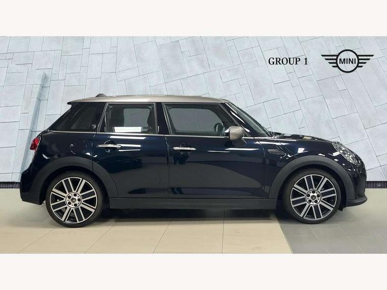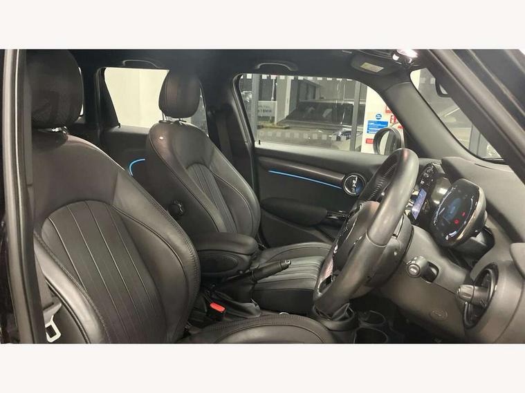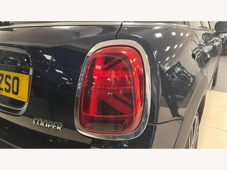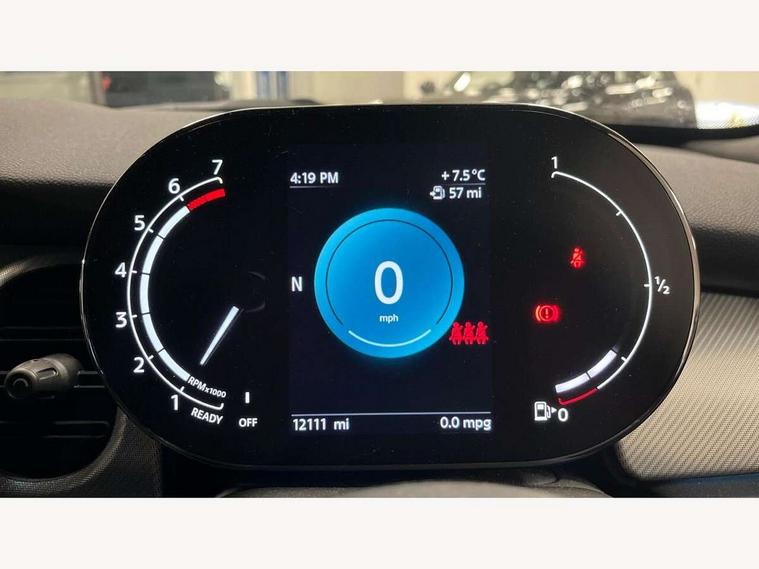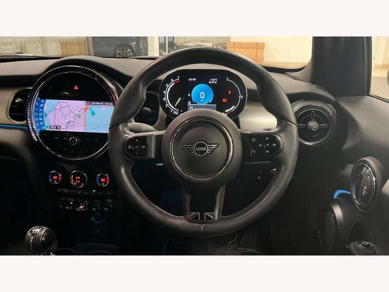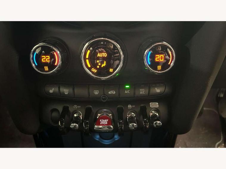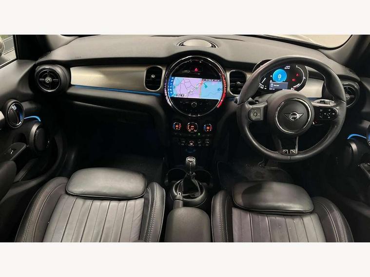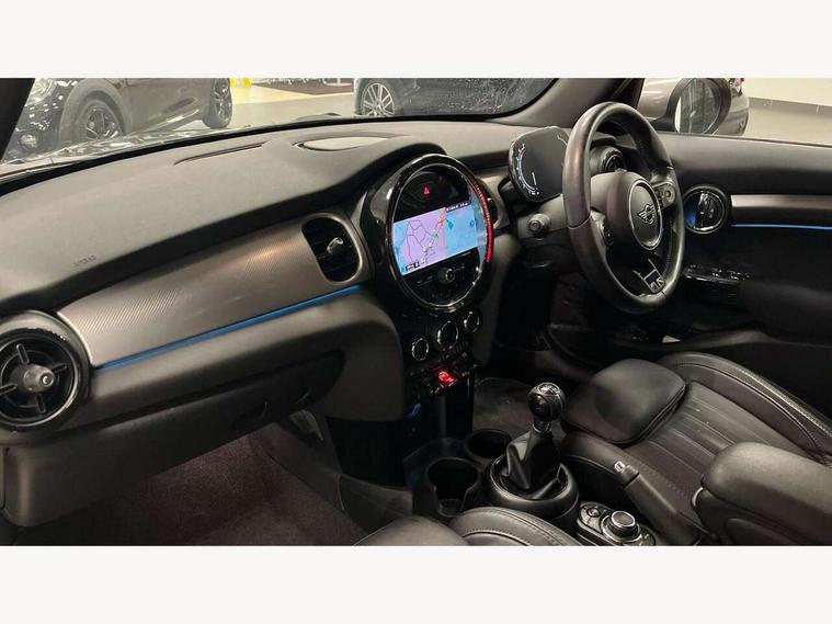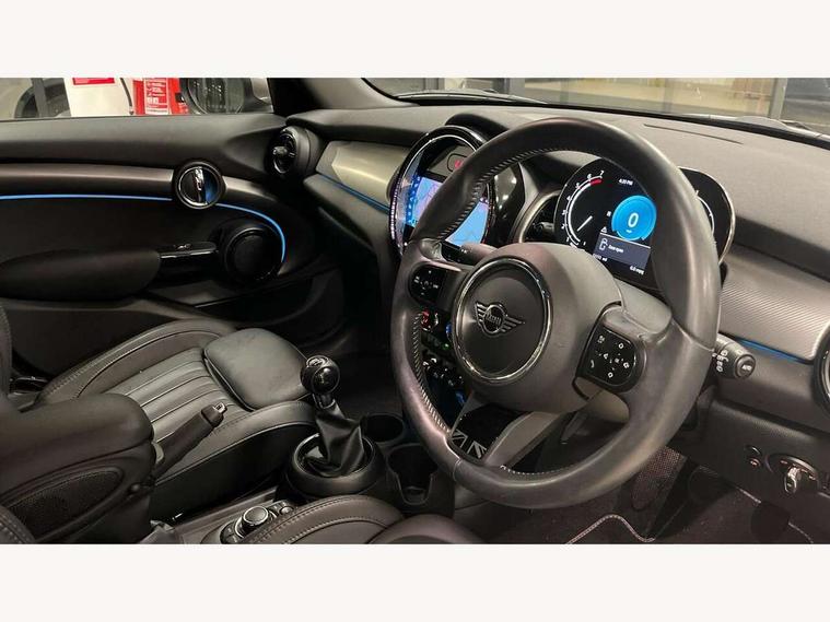 Automatic start/stop function with brake energy recuperation, Compatible mobile phone bluetooth with audio streaming, Cruise control with brake assist, Electro-mechanical speed dependant steering assistance, Flexible car sharing preparation, Instrument cluster, MINI Driving Modes - centre toggle switch to control driving setting (sport, mid and green), Mini E-call, MINI TeleServices, On board computer, Rear park distance control, Service interval indicator, 6 Speed manual transmission including gear change indicator display, Double Vanos system, Fully variable valve control, High precision injection, Performance Control, 6 speakers in front door trims and underneath front seats, 8.8" touchscreen with LED ring, FM tuner and DAB digital radio, Automatic headlight activation switch, Body colour fuel filler cap, Chrome line exterior - radiator grille bars, tailgate handle, lower front grille grating and rear central fog-light, Dynamic brake lights, Electric front+rear windows, Heated rear window, Heated windscreen washer jets, LED headlight with closed ring and daytime driving lights, Metal door sill strips with MINI imprint, Model logo Cooper on right of tailgate, Rain sensor window wipers, Rear fog lights, Rear LED lights with union jack design, Rear window wiper, Side scuttle panel with integrated indicator, Sun/heat protection glass, White indicator lenses, 12V Accessory socket in centre console, 4 lashing eyes in luggage compartment, 60/40 split folding rear seat, Anthracite headliner including grab handles and clothes hooks, Carbon black colour line - Knee roll and door armrest, Chrome interior highlights, Chrome line interior - air vents, gear lever base, door handles and speakers in doors, Cupholders, Front and rear head restraints, Front and rear isofix with front passenger airbag deactivation, Glove compartment, Height and length steering column adjustment, Interior lighting with 12 different colours across the dashboard, underneath door bezel with illuminated laser-engraved design on central display, Leatherette gearshift lever and handbrake gaiters, LED reading lights, vanity mirror lights, front foot well light and spotlight on front seats, Manual air conditioning, Mechanical seat adjustment - forward/back & backrest for front seats and driver seat height adjust, MINI yours badge on exterior pillar, Multifunction steering wheel, Storage compartments in doors, Sunvisors with vanity mirrors, Velour floor mats, Walknappa leather steering wheel with grey seam and MINI Yours badge on Piano Black lower steering wheel spoke, 3 point seatbelts on all five seats, 6 Airbags - front, side, head and seat belt tensioners, Anti-lock braking system (ABS), DSC - Dynamic Stability Control, Front and rear disc brakes, Hill start assist, Single tone fanfare horn, Tyre pressure monitoring system, Alarm system with tilt sensor, monitoring doors, bonnet interior and tailgate, Electronic vehicle immobiliser, Start/stop toggle with keyless go, Tool kit,