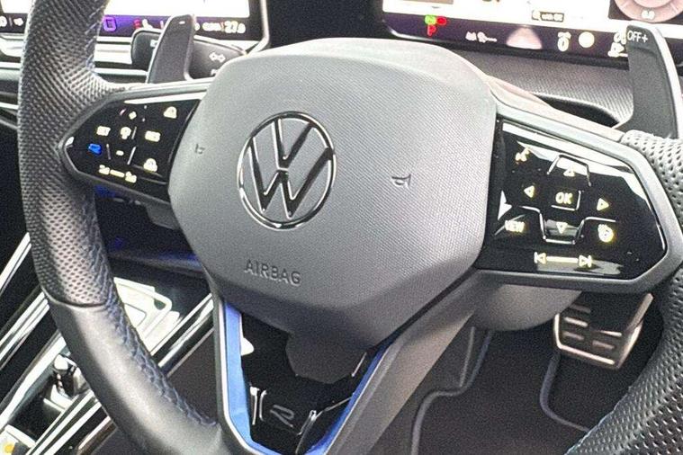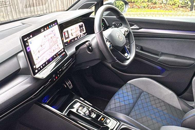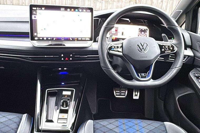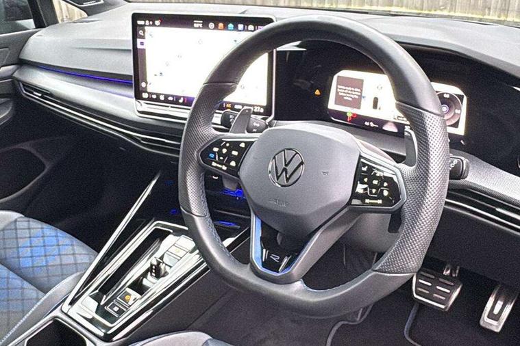 Activated carbon canister, Adaptive cruise control (ACC), Advanced driver attention and drowsiness monitor, Dynamic road sign display, E-Sim card for online connectivity, eCall emergency call system, Electronic maximum speed limit increased to 270 km/h, includes driving Modes 'drift' and 'special', larger roof spolier and GPS laptimer + G-Meter, Multi-color Digital cockpit pro, selection of different info profile possible, Multifunction front facing camera for distance control, Navigation system, Oncoming vehicle braking when turning including swerve support, Preparation for light assist system, Progressive steering, Side assist blind spot lane change system, rear traffic alert and exit warning system, Speed limiter, Speedo, rev counter, electronic odometer, trip, service interval display, exterior temperature and fuel gauge, Traffic jam assist, Voice enhancer and voice control, Warning signal and warning light for front and rear seatbelts not fastened, We connect plus preparation, We connect preparation, Wireless app connect, All wheel drive - 4Motion, Petrol Particulate Filter, Sports suspension, Start-stop system with battery regeneration (recuperation - energy recovery during braking), XDS electronic differential lock for improved traction and handling, 2 USB C ports in front, 2 USB charging sockets on the centre console in the rear charging capacity upto 45W, Comfort telephony + wireless charging, without wireless aerial connection, Digital radio reception (DAB), Diversity antenna for FM reception, Gaming platform via car app, Infotainment system with 12.9" display, Mobile phone interface with inductive charging feature, 3rd brake light, Auto dimming rear view mirror, Auto headlights, Automatic headlamp activation with Coming home and Leaving home feature, Black badge on B-pillar, Black mirror caps, Black strips on radiator grille and headlights, Body colour door handles, Darkened headlights, Darkened R Logos and VW logos in front, rear and on fender, Exhaust system with black tailpipe, Exterior ambient lighting with illuminated lighting animation and wake up/goodbye scenario, Exterior mirrors convex on the left and aspherical on the right, Front and rear electric windows, Front fog lamps and cornering light, Heat insulating windshield made of laminated glass, LED daytime running lights, LED matrix headlights with ambient light V2, advanced high beam, dynamic range contol with cornering, LED rear lamp with indicator, poor weather, R name plate, Rain sensor, Rear fog light on one side and reversing lights on both sides, Rear side wing doors, Rear tinted glass 65% light absorbing from B pillar backwards, Rear windscreen washer and wiper with interval delay, Remote electrically foldable door mirrors, puddle lights and reverse activated passenger's door mirror, Welcome light with surround lighting, 12V socket in front centre console, 12V socket in luggage compartment, 3 rear head restraints, 3 seat bench in 2nd row, 30 colour ambient lighting, illuminated center console storage compartment in front, Air care climatronic 3 Zone automatic climate control with rear air conditioning control panel, Aluminium gearshift handle, Brushed stainless steel pedals, Carpet mats, front and rear, Front centre armrest, Integrated front head restraints, ISOFIX anchors for child seats on outer rear bench seats and on front passanger seat compatible for i-Size, Luggage compartment lighting, Rear cupholder and loadthough, Single front passenger seat, Soul black instrument panel, Split folding backrest with centre armrest and unsplit rear seat bench, Storm grey roof lining, Sun visors with illuminated vanity mirrors, Driver assistance pack - Golf DSG Estate/Hatchback, R styling pack - Golf, Technology park and comfort pro package - Golf Hatchback, 3 point height adj front seatbelts + pretensioners, 3 rear three point seatbelts, ABS, Autonomous emergency braking front assist with pedestrian and cyclist monitoring, Child locks on rear doors, Disc brakes in rear incl. brake calipers in black with darkened R-logo, Driver and front passenger airbag with front passenger airbag deactivation, Electronic parking brake with auto hold, ESC (Electronic Stability Control), Extended pedestrian protection measures, Hill start assist, Two tone horn, Tyre pressure loss indicator, Volkswagen roadside assistance, Anti theft wheel bolts, Preparation for alcohol interlock, Wheel hub cover with darkened R-logo,