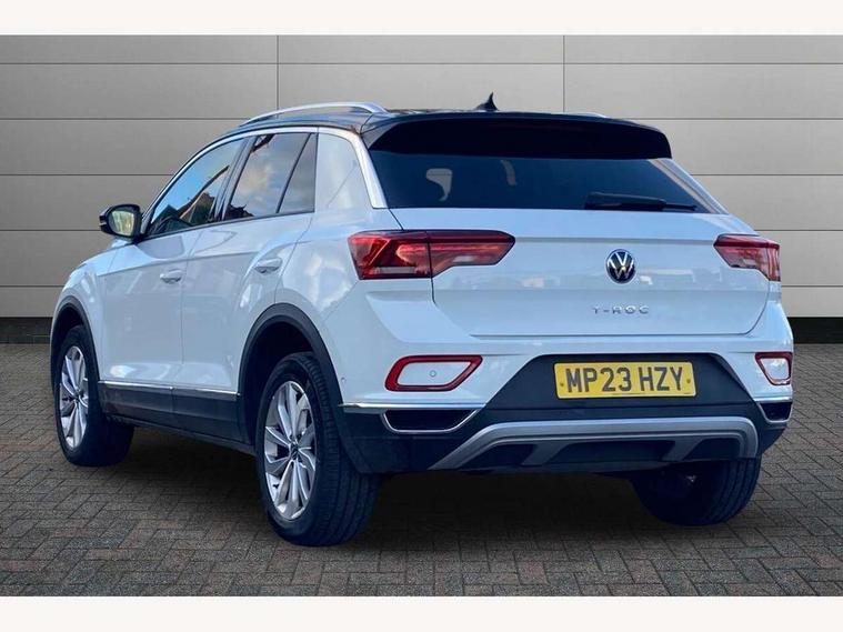 10.25" Digital cockpit pro, Bluetooth mobile phone interface, Driver alert system with fatigue detection, Driver tips and journey analysis, Emergency call service, Lane keeping system Lane Assist, Modified key software - reduce switch off time for key status change to Long no motion, Online services, Park assist including front and rear parking sensors, Service interval indicator, Tailgate/trunk lid release from outside, Think blue trainer driver tips and journey analysis, Warning sound and light for front seatbelts unfastened, Wireless app connect, Battery regeneration during braking, Start/stop function with battery regeneration, Diversity antenna for FM reception, Front and rear 6 speakers, Music playback - MP3, WMA and AAC files, Premium USB cable in choice of either Apple or Android smartphone compatibility, SD card slot, Simultaneous pairing of 2 compatible mobile devices, Title and cover art display, We Connect and We Connect Plus functionality, 3rd brake light, Auto dimming interior rear view mirror, Automatic hazard lights activation under emergency braking, Automatic headlight control with LED separate daytime running lights with coming/leaving home function, Body colour sports bumpers with silver metallic underbody fascia, Dynamic headlight range control with self adjusting whilst driving, Extended roof spoiler, Exterior mirrors aspherical on driver side, convex on front passenger side, External USB type C socket and charging sockets, Front windscreen wiper with intermittent wipe and 4 position delay, Heated rear window, LED Plus headlamps, LED rear combination lamps, LED rear number plate lights, LED tail lamp rear comination lamps, Light mode for poor weather, rain, fog or snow, Power windows with comfort operation and circuit breaker, Rain sensor, Rear exhaust tailpipe, Rear fog light on one side and reversing lights on both sides, Rear side wing doors, Rear wash/wipe with intermittent wipe setting, Remote electrically foldable door mirrors, puddle lights and reverse activated passenger's door mirror, 12V power socket in centre console, 3 rear head restraints, 3 seat bench in 2nd row, 4 load lashing points in luggage compartment, Air care climatronic air conditoning system with active combination filter and 2-zone temperature control, Chrome plated radiator grille inserts, air vent surrounds and light switch surrounds, Door and side trim panel with leatherette insert, Drawer under drivers seat, Front + rear carpet mats, Front centre armrest, Front comfort sports seats, Front cupholders x 2, Front footwell illumination, Instrument lighting, white adjustable panel illumination, Interior ambient lighting and surround lighting, Interior light delay, Isofix child seat preparation, Leather gearshift handle, LED interior light with switch off delay/dimmer and 2 front/rear LED reading lights, Load-through provision with cup holder when folded down ('Unsplit rear seat bench, split folding backrest, with centre armrest), Luggage compartment lighting, Non-folding front passenger seat backrest, Single front passenger seat, Storage compartment in left and right luggage area, Storage compartment in rear doors, Storage compartments in driver and front passenger doors, Sunvisors with illuminated vanity mirrors, Variable boot floor, height adjustable and removable, Driver assistance pack without proactive passenger protection - T-Roc, 3 point height adj front seatbelts + pretensioners, 3 point seatbelts in outer rear with ECE label, ABS, Child locks on rear doors, Driver and front passenger airbag with front passenger airbag deactivation, Driver and front passenger safety-optimised head restraints, Drivers seatbelt reminder, Electronic parking brake, Electronic Stability Control (ESC) inc EDL (Electronic Differential Lock) and ASR (Traction Control), Front and rear passengers curtain airbag system including front side airbags, Front assist with city emergency braking and pedestrian monitoring, Front seat side impact airbags, Predictive pedestrian protection, Rear disc brakes, Single tone horn, Tyre pressure loss indicator, Volkswagen roadside assistance, Alarm with interior protection, Anti-theft alarm system with interior monitoring, backup horn, and towing protection, Remote central locking with SAFELOCK, radio remote control with 2 remote control folding keys, Trims for alloy wheels,