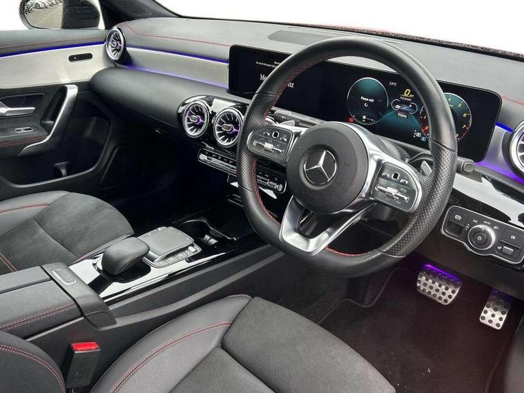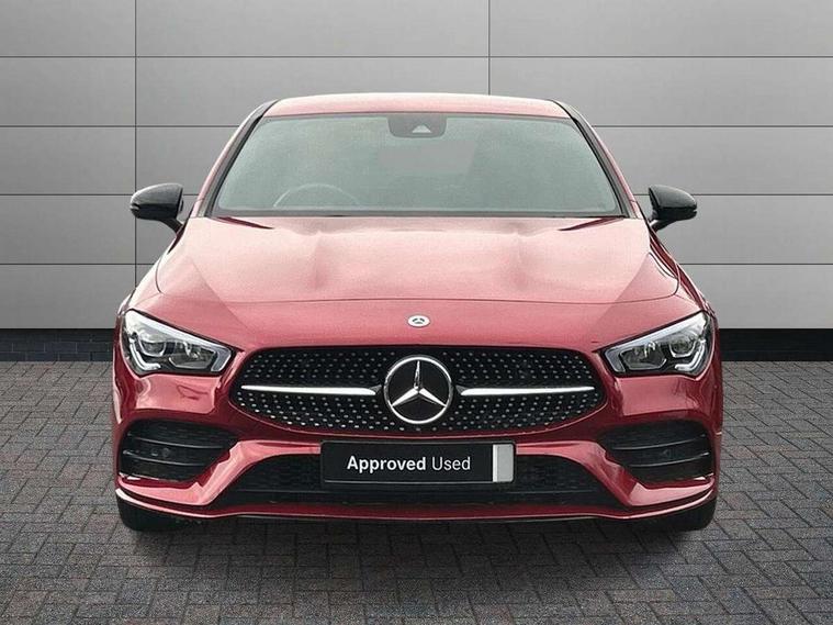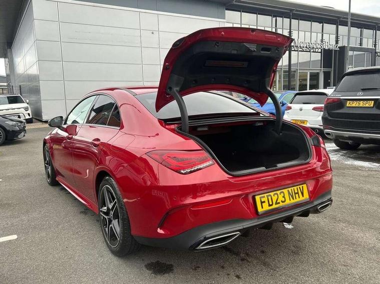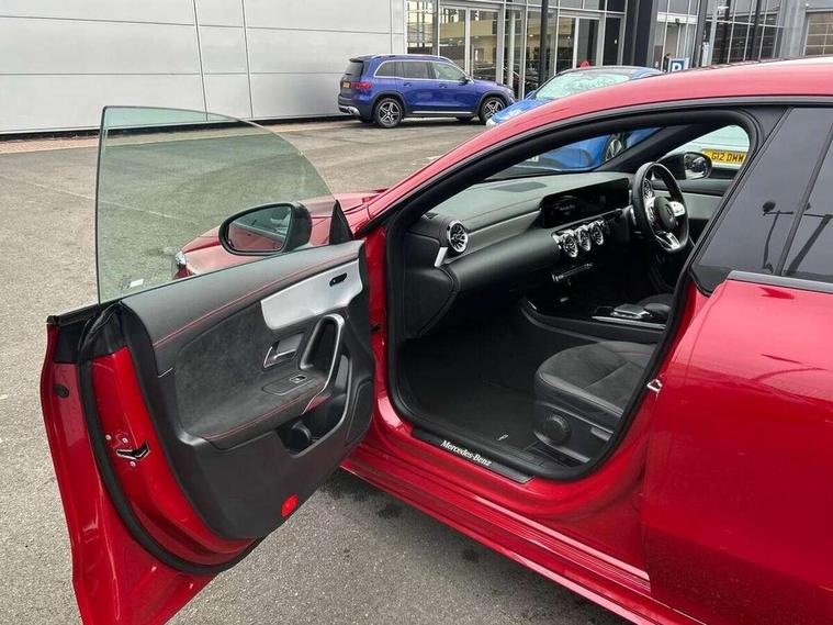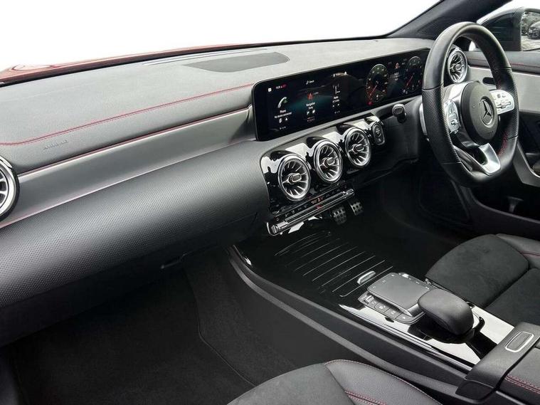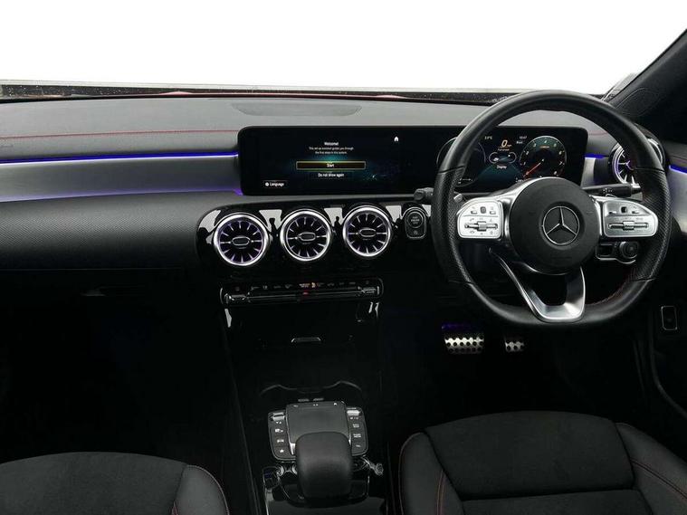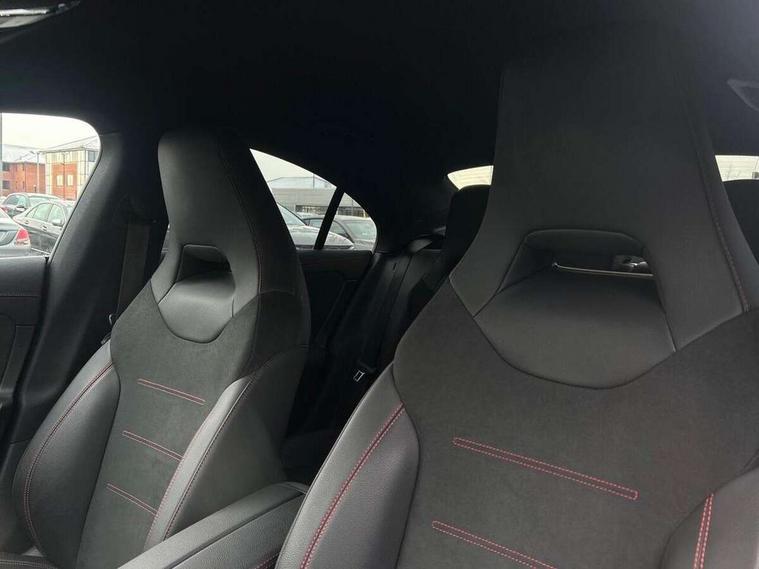 10.25 inch Instrument display with digital cockpit, 10.25 inch touchscreen central media display, Active lane keeping assist, Attention assist - Monitors steering behaviour and long journey fatigue, Bluetooth connection, Car wash mode, Cruise control with limiter, Direct steer system with speed sensitive power steering, DYNAMIC SELECT with a choice of driving modes (ECO, Comfort, Sport and Individual), ECO start/stop function, Fluid level warning indicator for fuel, oil, coolant and washer fluid, Hard-disk navigation, Hey Mercedes Voice activation, Lamp failure indicator, Mercedes me connect including emergency call system, accident recovery, breakdown and maintenance management, Mercedes me remote services, Outside temperature gauge, Owners manual and service booklet in English, Pre-installation of private car share, Preinstallation for Mercedes Benz link, Radio aerial integrated into front and rear windshields, Service indicator (ASSYST), Smartphone integration with Apple CarPlay and Android auto, Speed limit assist, Trip computer in multifunction display with current consumption indicator, Lowered comfort suspension, Rear axle multi-link, DAB digital radio tuner, MBUX multimedia system, Mercedes Benz sound system (100 W) with 6 speakers, USB (type C) ports (2) in stowage compartment and 1 in front of centre console, Adaptive brake lights, AMG body styling with AMG front apron and rear apron and visible exhaust tailpipe in chrome trim elements, AMG bodystyling side skirts, Body colour bumpers, Body colour door handles, Chrome beltline strips, Diamond radiator grille pins in chrome, Electric windows, Electrically adjustable and heated door mirrors with integrated LED indicators, Exhaust system with 2 Visible tailpipe trim elements and rear apron with trim in chrome, Headlamp assist automatic headlamp activation, Heated glass rear windscreen + timer control, High level LED third brake light, Interior mirror with black reading lamps and frameless, LED high performance headlamps with integrated LED daytime running lights, LED tail lamp, Privacy glass with dark tinting on rear side windows and rear window, Rain sensing windscreen wipers with two sensitivity settings, Rear boot, Rear fog lamp, Rear side wing doors, Variable front intermittent wipers, Window line trim strip in chrome, 3 seat bench in 2nd row, 3 spoke flattened bottom nappa leather multifunction steering wheel with perforated leather in grip area, 40:20:40 split folding rear seat backrests, Air conditioning - Two zone thermotronic luxury automatic climate control with display, Air vents with surround in silver chrome, Artico man-made leather upholstery, Automatic child seat recognition sensor, Black roof lining, Brushed stainless steel sports pedals with rubber studs, Floor mats with stitched AMG lettering, Front centre armrest with stowage, Front door sills with Mercedes Benz lettering, Galvanished gear shift paddles on steering wheel, Heated front seats, Illuminated glove compartment stowage, Interior lighting - 64 colour Ambient lighting, Luggage net on driver/front passenger seat backrest, Manually adjustable front seats, Manually height and reach adjustable steering column, Rear head restraints, Single front passenger seat, Sport seats with fixed head restraints, Stowage compartment in centre console with retractable cover, Sunvisors with illuminated vanity mirrors, Touchpad on center console, Twin front cupholders, Two outer rear seat isofix and top tether child seat fixing points, Light and sight pack - CLA, Mirror pack - CLA, Night package - CLA, Parking package - CLA, Seat comfort pack - CLA, Active bonnet pedestrain safety measure which detects an impact and raises bonnet by 65mm, Active brake assist includes forward collision warning system with autonomous braking, Adaptive brake assist with hold function and hill start assist, Anti lock braking system (ABS) with brake assist, Black seat belts, Bonnet with power domes, Brake pad wear warning indicator, Childproof locks manually operated for rear doors and electrically operated for rear power windows, Crash responsive emergency lighting, Driver and front passenger head and sidebags, Driver and front passenger windowbags, Drivers knee airbag, Dual stage driver and front passenger airbags, Electric parking brake, Electronic stability programme with acceleration skid control, ESP curve dynamic assist, Front and rear seatbelt reminder, Front passenger seat occupancy sensor, Three point rear seat belts, Tyre pressure monitoring system, Warning triangle and first aid kit, Guard 360 degree guard vehicle protection system with immobiliser and interior protection, Keyless Go starting function, Remote central locking and crash sensor with emergency opening function, Light aluminium with longitudinal grain interior trim, 18" AMG 5 twin spoke light alloy wheels painted in black with high sheen finish, Summer tyres, Tirefit tyre sealant kit,