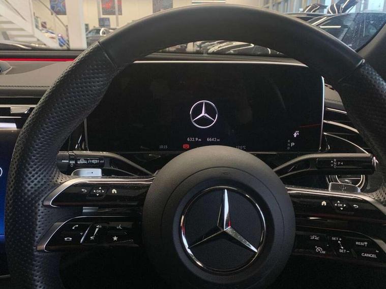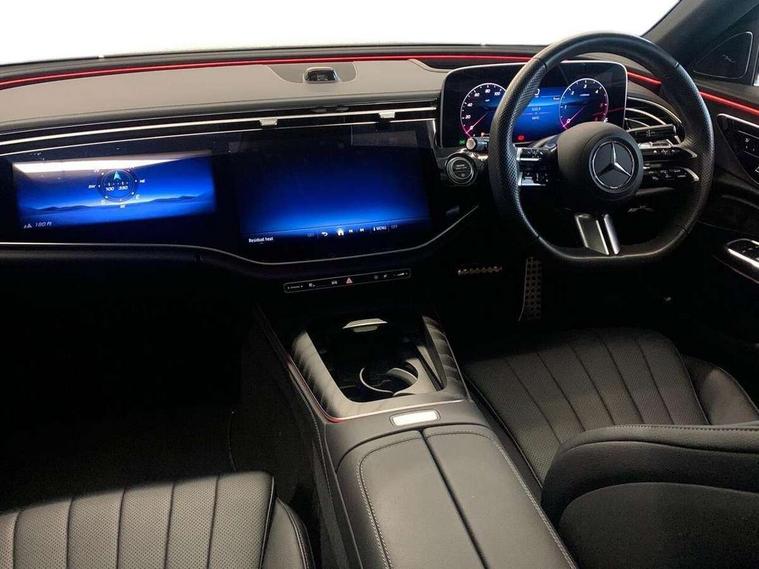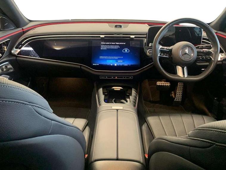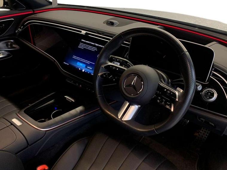12.3" high resolution cockpit display, 14.4" high resolution central media display with latest MBUX generation, 5G Communications module, Attention assist, Blind spot assist, Bluetooth, Brake wear warning display, Direct steer speed sensitive steering, Easy-pack tailgate - Powered opening/closing automatically, ECO start/stop function, Evasive manoeuvre support, Fluorescent jacket for driver, Hard disc navigation, Head up Display, MBUX navigation premium, MBUX voice control, Mercedes me connect including emergency call system, accident recovery, breakdown and maintenance management, Outside temperature display, Preinstallation for digital vehicle key, Preinstallation for live traffic, Remote bootlid closing, Remote Services Premium, Service indicator (ASSYST), Status display for rear seat belts in instrument cluster, Trip computer in multifunction display showing current fuel consumption, Wireless charging, Wireless smartphone integration with Apple CarPlay and Android auto, 48V Mild hybrid technology, 66 litre fuel tank, 9G TRONIC automatic transmission, Bluetec emission control, Diesel particulate filter, Integrated starter generator Gen 2, Rear air suspension with level control, Residual engine heat utilisation, Sporty engine sound system, Burmester 4D surround sound system, DAB Digital radio, Preinstallation for MBUX Entertainment Plus, Sound visualisation, 3rd brake light, Acoustic glass, Adaptive brake lights, Aerial integrated in rear window, AMG Line exterior, Auto dimming driver's door mirror, Auto dimming rear view mirror, Chrome roof rails, Digital air vent control, Electric folding door mirrors, Electric windows with one touch opening/closing and obstruction sensors, Electrically adjustable and heated door mirrors, Heat insulating privacy glass, Illuminated front door sills with Mercedes-Benz lettering, Illuminated radiator grille, LED daytime running lights, LED digital light with adaptive highbeam assist plus, Panoramic sliding sunroof, Pre-installation for roof rail systems, Rear side wing doors, Rear wiper, Surround lighting with logo projection, 3 seat bench in 2nd row, Active ambient lighting, AMG brushed stainless steel sports pedals with rubber studs, AMG floor mats, AMG line interior, Automatic child seat recognition sensor, Central stowage compartment with USB socket for use with Android Auto and Apple CarPlay, Comfort seats, Courtesy lights in rear grab handles with reading light functionality, Folding rear seat backrest, Front centre armrest with stowage compartment, Gearshift paddles in galvanised silver, Glove compartment - lockable, air conditioned and illuminated, Heated front seats, Heated steering wheel, Instrument panel and door beltlines in artico nappa look leather, Leather upholstery, Luxury front head restraints, Multifunction sports steering wheel in nappa leather, Roof liner in black fabric, Seat occupancy sensor for front passenger seat, Single front passenger seat, Steering wheel touch control buttons for audio and onboard settings, Sunvisors with illuminated vanity mirrors, THERMATIC 2 zone automatic climate control, Acoustic comfort pack - E Class, Energizing plus package with air balance - E Class, Keyless Go comfort package - E Class, MBUX superscreen pack - E Class, Memory package - E Class, Night pack - E class, Parking package with 360 degree camera - E Class, USB plus package - E Class, Winter pack - E Class, 3x3 point rear seatbelts, Active bonnet pedestrian safety measure which detects an impact and raises bonnet, Adaptive brake system with HOLD function and brake drying in the wet, Airbags - sidebag for driver and front passenger with combined thorax/pelvis bag, Anti-lock braking system (ABS), Automatic front passenger airbag deactivation, Central airbag, Childproof locks manually operated for rear doors and electrically operated for rear power windows, Driver and adaptive front passenger airbags, Electronic parking brake, Electronic Stability Programme, Hill start assist, ISOFIX child seat attachment points two outer rear seats, Knee airbags, Pedestrian protection, Pre-Safe anticipatory safety system, Tyre pressure monitoring system, Warning triangle and first aid kit, Window airbags, Alarm system/interior protection/immobiliser, Central locking with interior switch, automatic locking and crash sensor with emergency opening function, Digital vehicle key, Guard 360 degree vehicle protection plus, Increased anti theft protection, Urban guard vehicle protection plus, Centre console in black open pore ash wood trim and superscreen with passenger screen, 20" AMG multispoke design alloy wheels with black painted inserts and high sheen finish, Noise reduced tyres, Summer tyres, Tirefit,