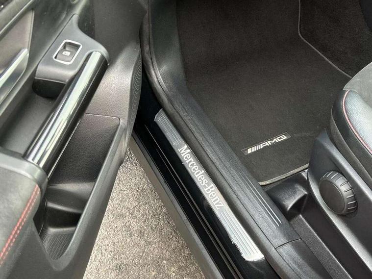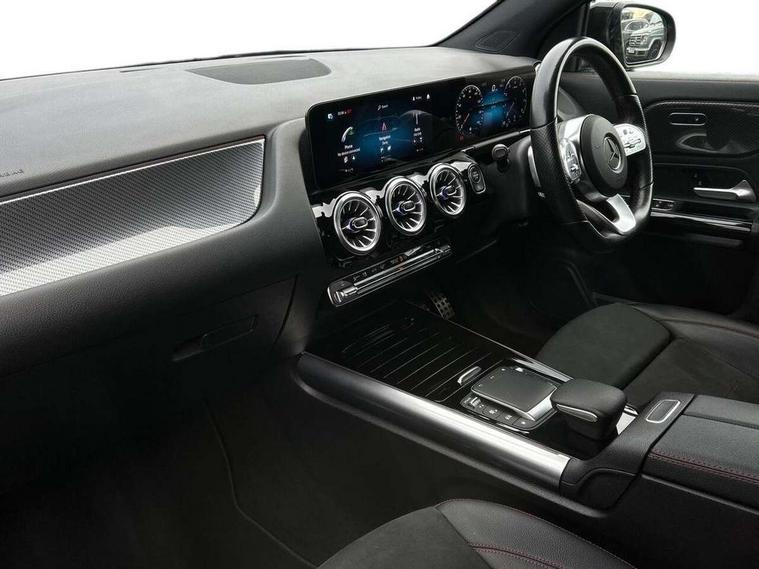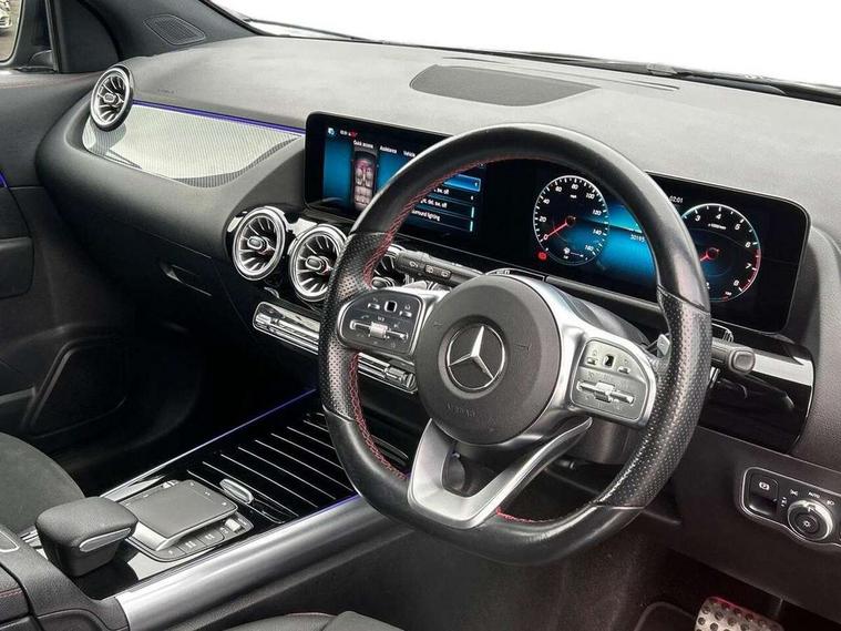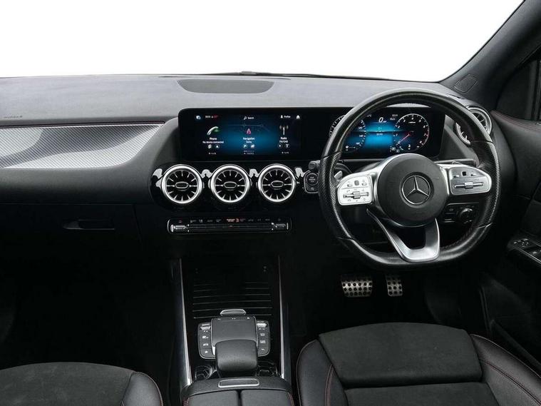 10.25 inch touchscreen central media display, 10.25" Digital instrument cluster display screen, Active lane keeping assist, Attention assist, Cruise control + speed limiter, Direct steering, DYNAMIC SELECT with a choice of driving modes (ECO, Comfort, Sport and Individual), ECO start/stop function, Fluid level warning indicator for fuel, oil, coolant and washer fluid, Hard-disk navigation, Hey Mercedes Voice activation, Lamp failure indicator, Mercedes me connect including emergency call system, accident recovery, breakdown management and maintenance, Mercedes me remote services, Multi function trip computer, Outside temperature gauge, Owners manual and service booklet in English, Pre-installation of private car share, Radio aerial integrated into front and rear windshields, Service indicator (ASSYST), Smartphone integration with Apple CarPlay and Android auto, Speed limit assist, Status display for rear seat belts in instrument cluster, Lowered comfort suspension, Rear axle multi-link, 2 USB ports (type C) in rear stowage compartment and one in front of center console, Bluetooth connectivity including audio streaming, DAB Digital radio, MBUX multimedia system, Media interface, Mercedes-Benz (225w) sound system with 10 speakers, Adaptive brake lights, Aerial for GPS, Aluminium roof rails, AMG front and rear apron, AMG specific/dual flow exhaust pipes in chrome (non-functional), Automatic headlamp activation, Beltline strips and weather strip in chrome, Black grained claddings with chrome parts, Body colour bumpers, Body colour door mirrors, Body coloured door handles with chrome insert for keyless entry, Car wash function, Dark privacy glass from B-pillar backwards, Electric front windows, Electric rear windows, Electrically adjustable and heated door mirrors with integrated LED indicators, Heated glass rear windscreen + timer control, Heated windscreen wash system, Interior mirror with black reading lamps and frameless, LED high performance headlamps with integrated LED daytime running lights, LED tail lights in two piece design, LED third brake light, Matt titanium grey front and rear apron trim, Pre-installation for trailer coupling, Rain sensor windscreen wipers, Rear fog lights, Roof spoiler, Single lamella raditor grille with chrome dotted diamond grille and inlay, 12V power socket in centre console, 3 spoke multifunction sports steering wheel in nappa leather with flattened bottom and perforated grip area, 40:20:40 split folding rear seats with backrest, Adjustable head restraints, Air conditioning - Two zone thermotronic luxury automatic climate control with display, Ambient lighting in front headrests, AMG floor mats with AMG lettering in front, Artico man-made leather/Microfibre Dinamica upholstery with red contrast stitching, Auto Mercedes-Benz child seat recognition sensor, Black roof lining, Brushed door pulls in silver chrome, Courtesy light in boot, Front centre armrest with stowage, Galvanished gear shift paddles on steering wheel, Heated front seats, illuminated door sills with changeable cover, Illuminated glovebox, Interior lighting - 64 colour Ambient lighting, Leather trimmed gearknob, Luggage net on driver/front passenger seat backrest, Manually height and reach adjustable steering column, Multi-gesture touchpad control on center console, Sports pedals in brushed stainless steel with black rubber studs, Sports seats, Stowage compartment in centre console, Stowage compartment with retractable cover, Sunvisors with illuminated vanity mirrors, Twin front cup holders, Two outer rear seat isofix and top tether child seat fixing points, AMG body styling pack - GLA, Comfort seat pack - GLA Class, Interior lighting with light and sight pack - GLA, Load compartment pack - GLA, Mirror pack - GLA Class, Parking pack - GLA, 3 rear 3 point seatbelts, ABS with Brake Assist, Active bonnet pedestrain safety measure which detects an impact and raises bonnet by 65mm, Active brake assist includes forward collision warning system with autonomous braking, Adaptive brake assist with hold function and hill start assist, Bonnet with power domes, Brake pad wear warning indicator, Childproof locks manually operated for rear doors and electrically operated for rear power windows, Crash responsive emergency lighting, Driver and passenger head and side airbags, Drivers knee airbag, Dual stage driver/passenger airbags, Electronic parking brake, ESP curve dynamic assist, ESP with ASR, Front and rear seatbelt reminder, Front brake callipers with Mercedes Benz logo lettering on front, Front passenger seat occupancy sensor, Internally ventilated brakes with perforated brake discs at the front, Tyre pressure monitoring system, Warning triangle and first aid kit, Window airbags, Alarm system with immobiliser and interior protection -Thatcham category 1, Keyless Go starting function, Remote central locking and crash sensor with emergency opening function, Urban guard vehicle protection, Vehicle key with decorative surround in chrome, Carbon structure trim, Chrome air vent surrounds, 19" AMG 5 twin spoke light alloy wheels aerodynamically optimised painted in tantalite grey with a high sheen finish, Summer tyres, Tirefit tyre sealant kit,