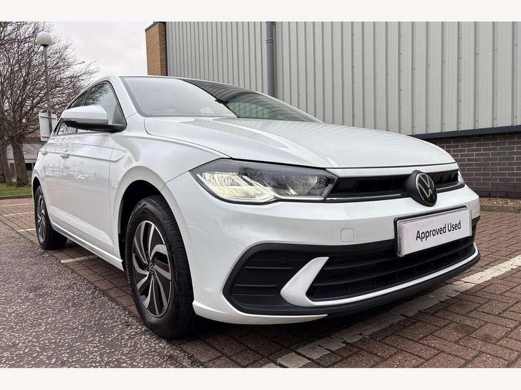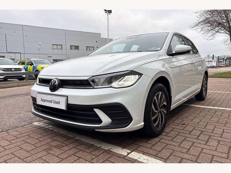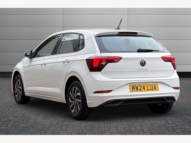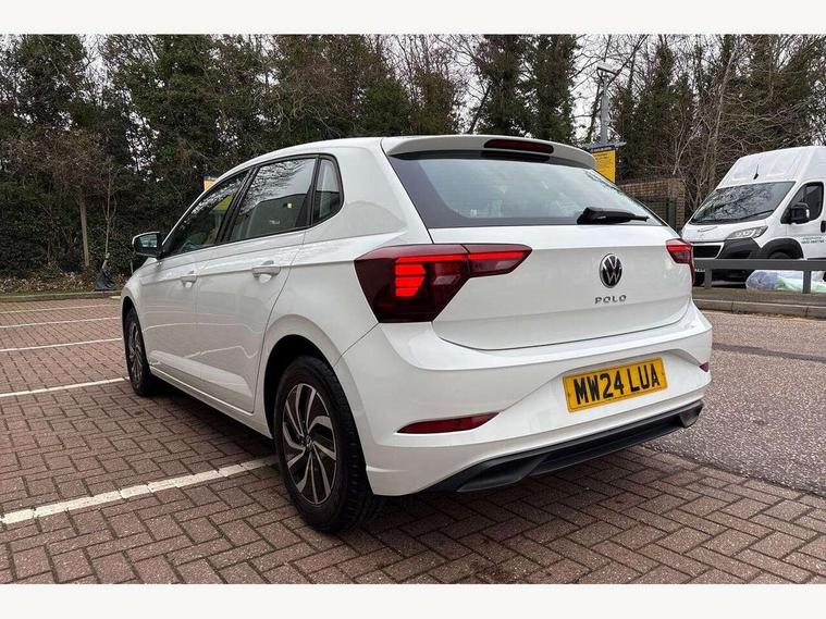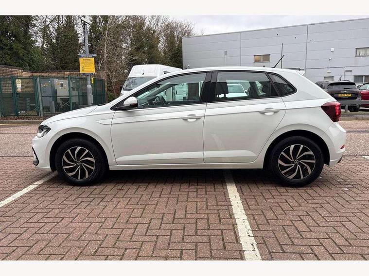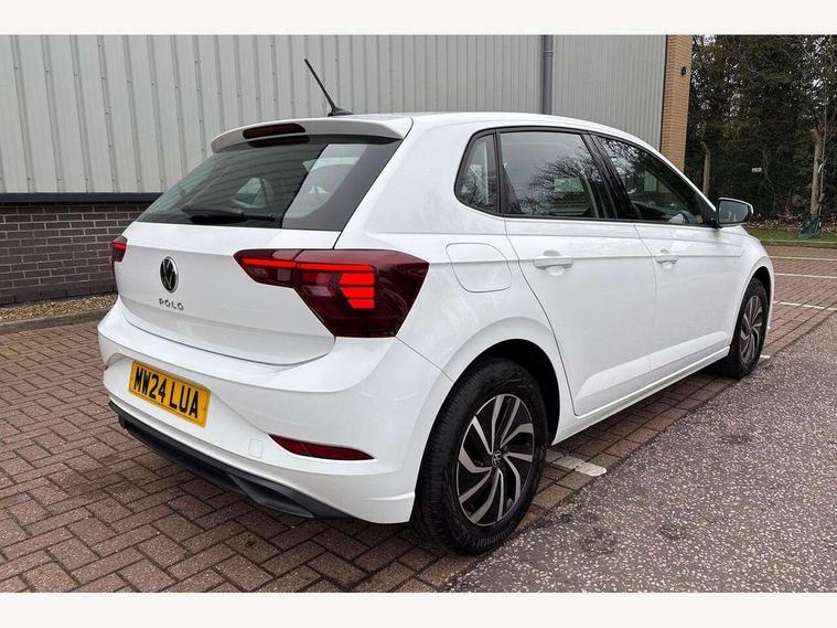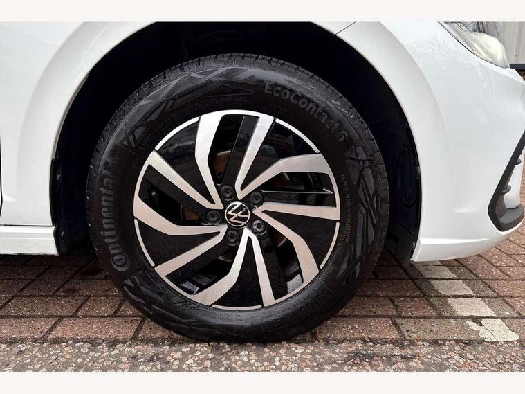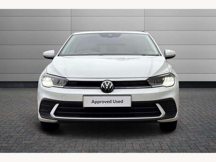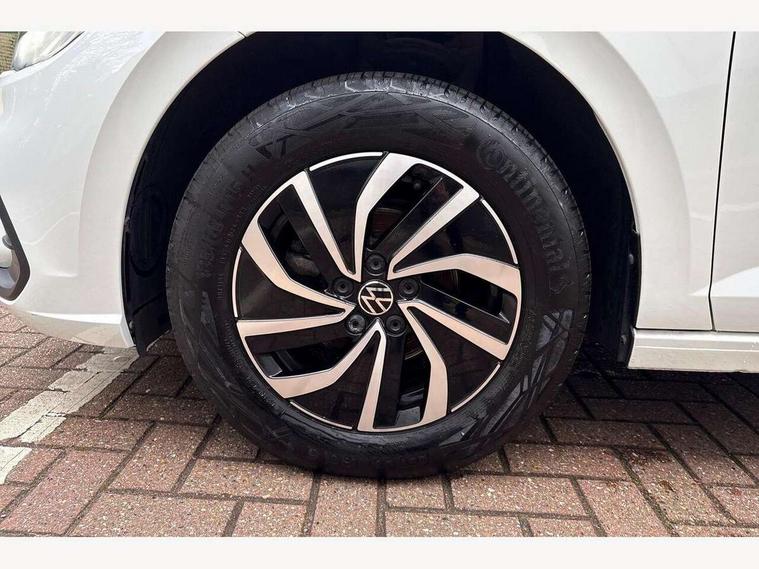 Adaptive cruise control without follow-to-stop and speed limiter, Advanced driver attention and drowsiness monitor, Bluetooth mobile phone interface, Dynamic road sign display, Emergency call service, Power assisted speed sensitive steering, Preparation for navigation system with media and internet package, Preparation for We connect and We connect plus, Speedo and rev counter, electronic odometer, trip, service interval display and exterior temperature gauge, Standard rear axle, Travel Assist - Lane keeping system and traffic jam assist, Travel assist including emergency assist, Trip computer, Warning signal and warning light for front and rear seatbelts not fastened, Washer fluid level indicator, Wireless app connect, Front wheel drive, Rear shock absorpion, Start-stop system with battery regeneration (recuperation - energy recovery during braking), DAB Digital radio, Diversity antenna for FM reception, Front and rear 6 speakers, Automatic dimming interior rear view mirror, Automatic headlight control with LED separate daytime running lights with coming/leaving home function, Body colour bumpers with chrome inserts, Body colour door handles, Body colour door mirrors, Electric front windows, Engine badge deletion, Headlight range adjustment, Heat insulating and laminated safety glass windshield, Heat insulating darkened glass in side and rear windows, Heat insulating glass windscreen, LED Headlights, LED rear combination lamps, Power folding adjustable/heated exterior mirrors and front passenger exterior mirror lowering function, Rain sensor, Rear electric windows, Rear fog light, Rear side wing doors, Rear windscreen washer and wiper with interval delay, Third brake light, 12V power socket in centre console, 2 front and 2 rear reading lights with switch off delay and dimmer, 2 USB-C ports in the front, 2 USB-C charging sockets on the center console in the rear, 3 rear head restraints, 60/40 split folding rear seat and rear seat bench not split, Ceramique roof lining, Chrome plated radiator grille inserts, air vent surrounds and light switch surrounds, Door and side trim panel, Driver and front passenger seat height adjustment, Driver/passenger sunvisors with illuminated vanity mirrors, Front centre armrest, Front seat backrest storage pockets, Front standard seats, Handbrake lever handle in leather, Hartley/Thomas cloth upholstery, Headliner in recycled material, Isofix child seat preparation easy-fit (for two outer rear seats, and front passenger seat) compatible with I-size, Leather trimmed gear knob, Luggage compartment cover, Luggage compartment lighting, Removable luggage compartment floor, Single front passenger seat, Standard climatic zones, Standard pedal cluster, Three spoke leather wrapped multifunction steering wheel, Light and vision pack - Polo, 3 point height adj front seatbelts + pretensioners, 3x3 point rear seatbelts, ABS, Driver and front passenger airbag with front passenger airbag deactivation, Drivers and front passengers safety optimised head restraints, ESC (Electronic stability control) + EDL (Electronic Differntial lock) and ASR (Traction control), Extended and predictive pedestrian/ cyclist protection, Front assist with autonomous emergency braking (for Adaptive Cruise Control ACC up to 130 mph), Front curtain and side airbags with center airbag, Front disc brakes, Hill hold control, Manual child lock in rear doors, Rear drum brakes, Single tone horn, Tyre pressure loss indicator, Alarm with interior protection, Anti-theft alarm system with interior monitoring, backup horn, and towing protection, Anti-theft wheel bolts, Electronic engine immobiliser, Lava stone black gloss/matt decorative inserts in dash and front door panels, Low rolling resistance tyres,