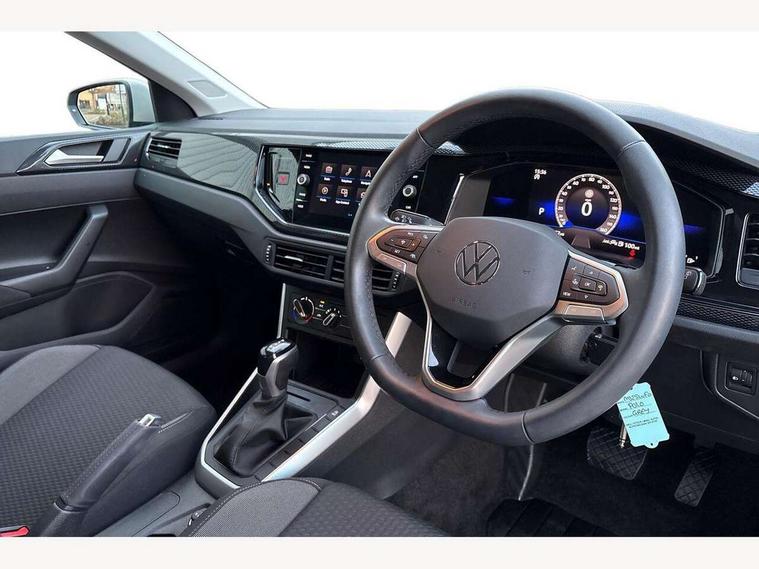 Advanced driver attention and drowsiness monitor, Bluetooth mobile phone interface, Dynamic road sign display, Emergency call service, Multifunction front facing camera for distance control, Park distance control, Power assisted speed sensitive steering, Predictive adaptive cruise control without follow-to-stop and speed limiter, Preparation for navigation system with media and internet package, Preparation for We connect and We connect plus, Rear view camera, Speedo and rev counter, electronic odometer, trip, service interval display and exterior temperature gauge, Standard rear axle, Travel Assist - Lane keeping system and traffic jam assist, Travel assist including emergency assist, Trip computer, Warning signal and warning light for front and rear seatbelts not fastened, Washer fluid level indicator, Wireless app connect, Front wheel drive, Rear shock absorpion, Start-stop system with battery regeneration (recuperation - energy recovery during braking), DAB Digital radio, Diversity antenna for FM reception, Front and rear 6 speakers, Automatic dimming interior rear view mirror, Automatic headlight control with LED separate daytime running lights with coming/leaving home function, Body colour bumpers with chrome inserts, Body colour door handles, Body colour door mirrors, Electric front windows, Engine badge deletion, Headlight range adjustment, Heat insulating and laminated safety glass windshield, LED Headlights, LED rear combination lamps, Power folding adjustable/heated exterior mirrors and front passenger exterior mirror lowering function, Rain sensor, Rear electric windows, Rear fog light, Rear side wing doors, Rear tinted glass from B-pillar backwards approx 65% tinted, Rear windscreen washer and wiper with interval delay, Third brake light, 12V power socket in centre console, 2 front and 2 rear reading lights with switch off delay and dimmer, 2 USB-C ports in the front, 2 USB-C charging sockets on the center console in the rear, 3 rear head restraints, 60/40 split folding rear seat and rear seat bench not split, Ceramique roof lining, Chrome plated radiator grille inserts, air vent surrounds and light switch surrounds, Door and side trim panel, Driver and front passenger seat height adjustment, Driver/passenger sunvisors with illuminated vanity mirrors, Front centre armrest, Front seat backrest storage pockets, Front standard seats, Handbrake lever handle in leather, Hartley/Thomas cloth upholstery, Headliner in recycled material, Isofix child seat preparation easy-fit (for two outer rear seats, and front passenger seat) compatible with I-size, Leather trimmed gear knob, Luggage compartment cover, Luggage compartment lighting, Removable luggage compartment floor, Single front passenger seat, Standard climatic zones, Standard pedal cluster, Three spoke leather wrapped multifunction steering wheel with shifting paddles, Light and vision pack - Polo, 3 point height adj front seatbelts + pretensioners, 3 point seat belt for centre rear seat, 3 point seatbelts, outer rear with ECE lable, ABS, Driver and front passenger airbag with front passenger airbag deactivation, Drivers and front passengers safety optimised head restraints, ESC (Electronic stability control) + EDL (Electronic Differntial lock) and ASR (Traction control), Extended and predictive pedestrian/ cyclist protection, Front assist with autonomous emergency braking (for Adaptive Cruise Control ACC up to 130 mph), Front curtain and side airbags with center airbag, Front disc brakes, Hill hold control, Manual child lock in rear doors, Rear drum brakes, Single tone horn, Tyre pressure loss indicator, Alarm with interior protection, Anti-theft alarm system with interior monitoring, backup horn, and towing protection, Anti-theft wheel bolts, Electronic engine immobiliser, Lava stone black gloss/matt decorative inserts in dash and front door panels, 16" Torsby alloy wheels, Low rolling resistance tyres,