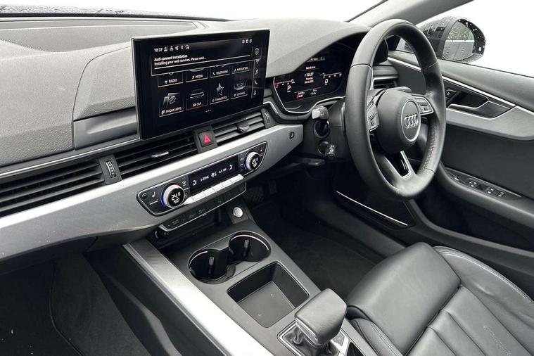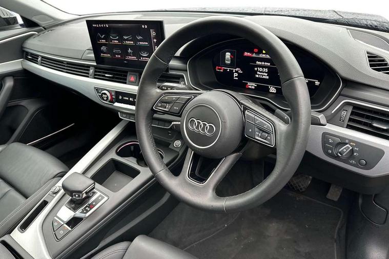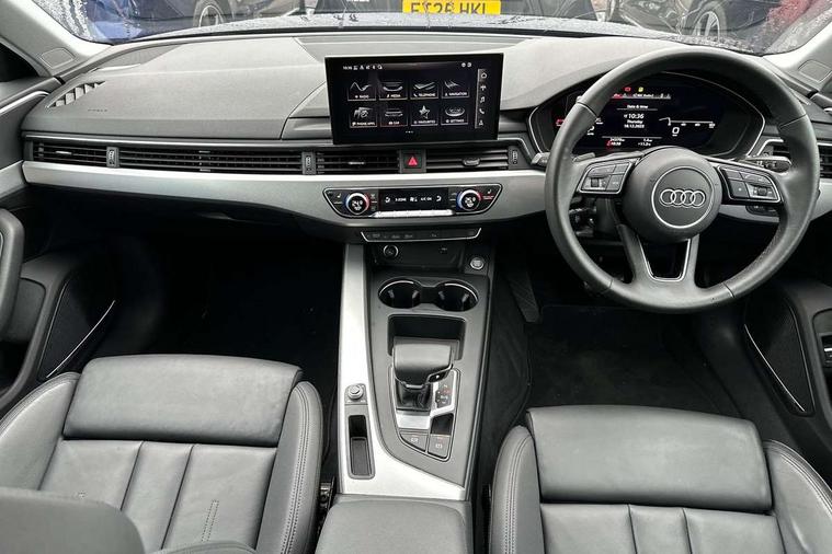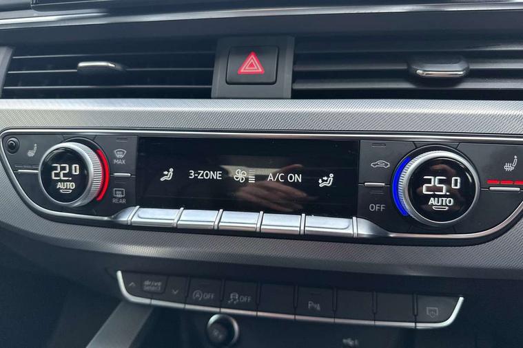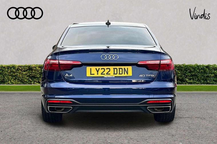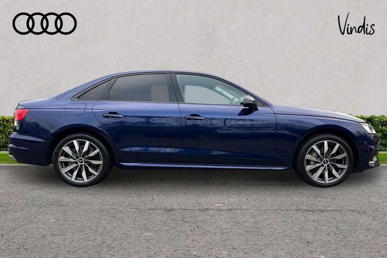 Audi connect safety and service (e-call), Audi connect with Amazon Alexa Integration, Audi drive select, Audi smartphone interface, Audi virtual cockpit, Automatic start-stop system with coasting functionality and efficiency programme, Bluetooth interface, Cruise control system with speed limiter, Electric boot lid release, Electromechanical power steering, Email, calendar and text messages displayed via MMI, MMI Navigation plus with MMI touch includes 10.1" high resolution colour MMI display, 3D map, Voice control system, 54 litre fuel tank, Comfort dynamic suspension, 2 USB charging ports, DAB digital radio reception, Auto dimming rear view mirror, Body colour door handles, Body colour side sill trim, Body coloured door mirrors, Electrically folding auto dimming/adjustable/heated door mirrors with LED side indicators and kerb view function for passenger side, LED headlights and rear lights with LED daytime running lights, LED third brake light, Matt aluminium silver tailpipe trim, Privacy glass, Rain and light sensors, Rear boot, Rear diffuser in matt titanium black with trim strip in matt aluminium silver, Rear side wing doors, Sport front and rear bumpers with side skirts, Variable intermittent front wash/wipe, Windscreen with acoustic glazing, 3 spoke high multi-function leather sport steering wheel with paddle shift and height and reach adjustable, 4 way electric lumbar support for driver and front passenger, 40/20/40 split folding 3 rear seat bench in 3 parts with rear centre armrest, Deluxe 3 zone electronic climate control, Door sill trims with aluminium inlay, Front and rear head restraints, Front centre armrest, Heated front seats, ISOFIX child seat mounting and top tether, Manual seat adjustment, Single front passenger seat, Twin leather upholstery + front sports seats, Black styling pack - A4 Saloon Sport Edition/S4 Black edition/S4 Vorsprung, Comfort and sound pack - A4, High gloss package - A4, LED Interior light pack - A4/S4, 3 rear seatbelts, 6 airbags - Driver, front passenger, curtain and side windows, Electronic Stabilisation Control (ESC) including ABS, ASR and EDL, Hill hold assist, Multi collision brake assist, Pop-up bonnet for pedestrian protection, Pre sense city, Rear door child safety locks, Seatbelt monitoring, Warning triangle and first aid kit, Anti theft alarm, Anti theft wheel bolts, Central locking, Keyless Go, Aluminium ellipse silver inlays, 18" 10 spoke dynamic design alloy wheels, Tool kit, Tyre repair kit,