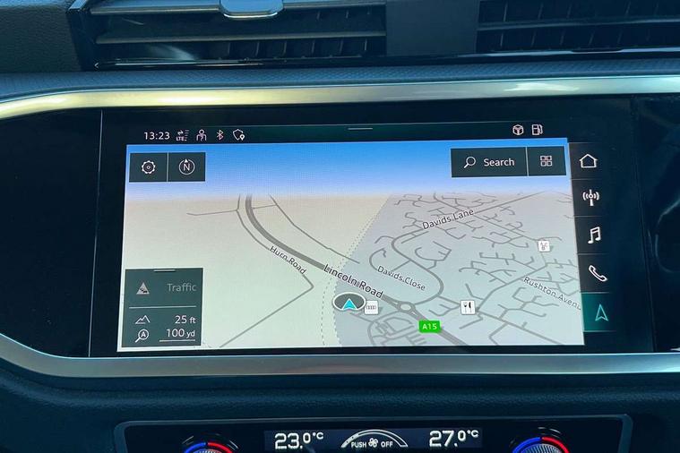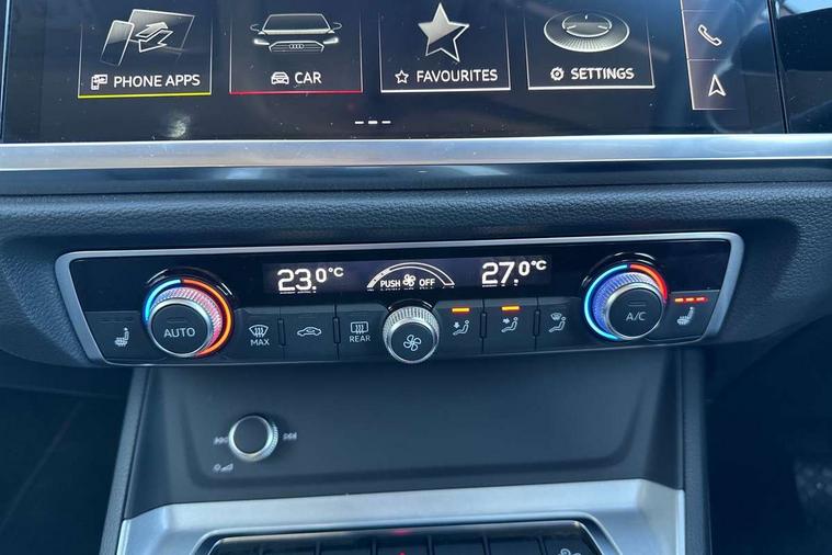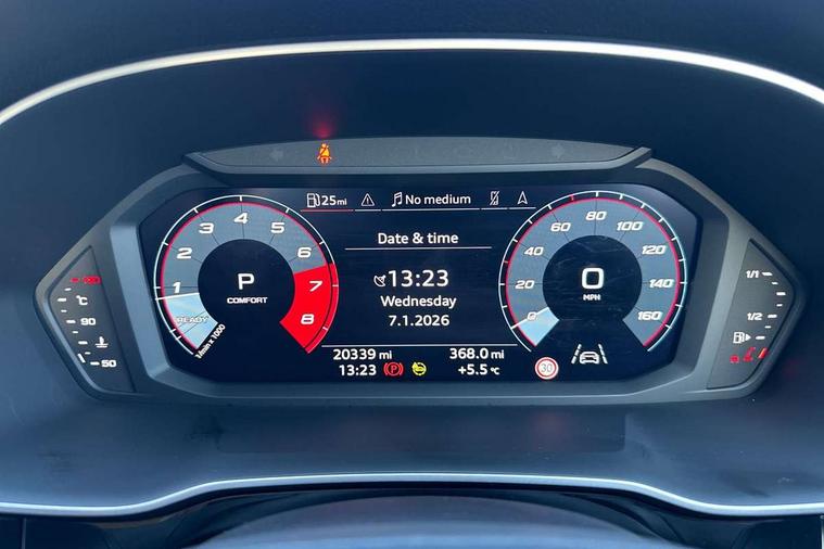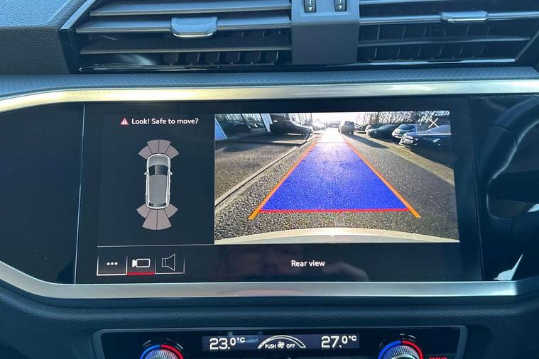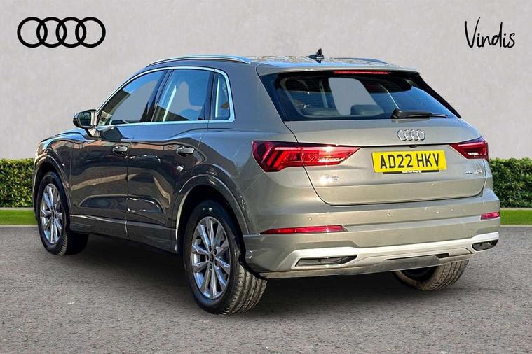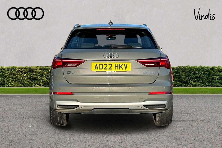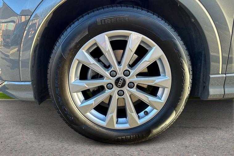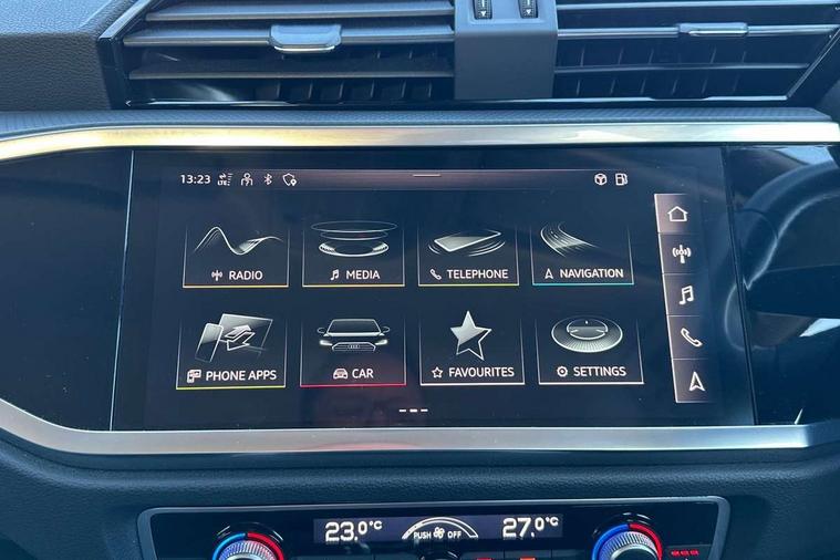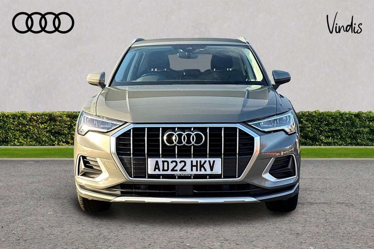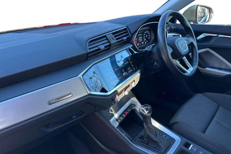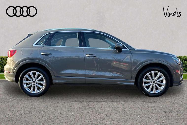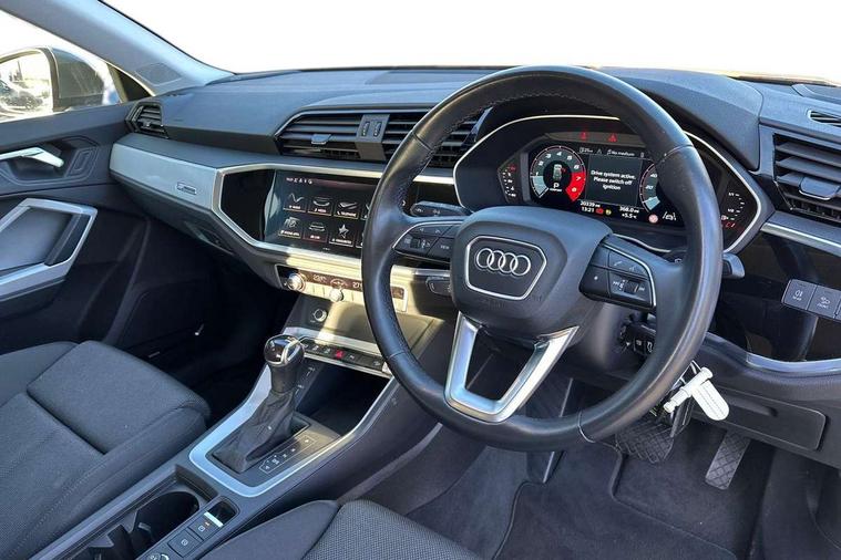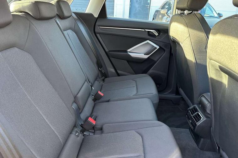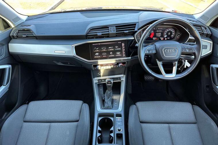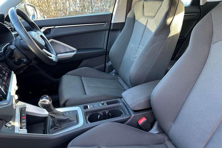 Amazon alexa Integration, Audi connect safety and service (e-call), Audi drive select, Audi lane departure warning, Audi Virtual Cockpit - 10.25" display, Bluetooth interface, Camera based traffic sign recognition, MMI Navigation Plus with high resolution 10.1 inch touchscreen colour display, Power operated tailgate, Progressive steering, Service interval indicator, Smartphone interface includes wireless Apple carplay/Android Auto, Start stop system with recuperation, Voice control system with natural language interaction, 48V Mild hybrid technology, Standard suspension, 2 USB-C ports with charge and data functions, 6 passive loudspeakers, DAB digital radio module, Acoustic windscreen, Aluminium roof rails, Aluminium window trim, Auto dimming frameless rear view mirror, Body coloured bumpers, Electrically folding, adjustable and heated door mirrors with integrated LED side indicators and kerb view function for passenger side, Front and rear electric windows, Front fog lights, Front side air inlets in matt selenite silver, Front spoiler in matt selenite silver, Grille vertical bars in aluminium silver/Matt, High gloss black finish B and C pillars, LED headlights with LED daytime running lights, LED rear lights, LED third brake light, Rain and light sensors, Rear diffuser strip in matt selenite silver, Rear side wing doors, Rear wiper, Silver chrome grille surround, Titanium black radiator grille, Variable front intermittent wipers, 12V socket in rear centre console, 3 seat bench in 2nd row, 3 spoke multi-function leather steering wheel, 40:20:40 folding with manual adjustment for 60:40 forwards/backwards position and backrest angle, Door sill trims with aluminium inlay, Dual zone electronic climate control, Front and rear floor mats, Front and rear headrests, Front and rear roof module including reading lights, Front centre armrest, Glove compartment lighting, Height and reach adjustable steering wheel, ISOFIX child seat mounting for front passenger with airbag deactivation and outer rear seat including top tether attachment point for outer rear seats, Luggage compartment light, Lunar silver cloth headlining, Manual front seats with height adjustment, Single front passenger seat, Stainless steel luggage compartment sill finisher, Non smoking pack - Q3, 3x3 point rear seatbelts, 6 airbags - Driver, front passenger, curtain and side windows, Audi pre-sense front with pedestrain and cyclist recognition, Electromechanical parking brake, Electronic stabilisation control including ABS, ASR and EDL, Front seatbelt reminder, Hill descent control, Hill hold assist, Manual child lock in rear doors, Pre sense basic, Seatbelt monitoring, Tyre pressure warning, Warning triangle and first aid kit, Anti theft alarm, Anti theft wheel bolts, Immobiliser, Remote central locking, Detail dashboard around MMI touch colour display in glass look, black with surround in aluminium look, Micrometallic silver inlay, Tool kit, Tyre repair kit,