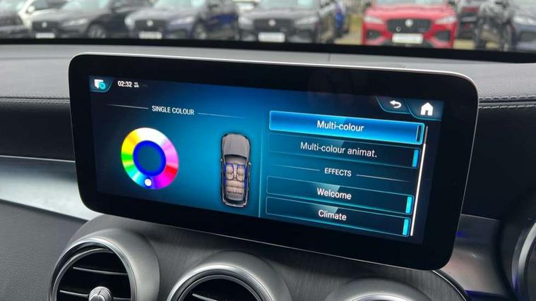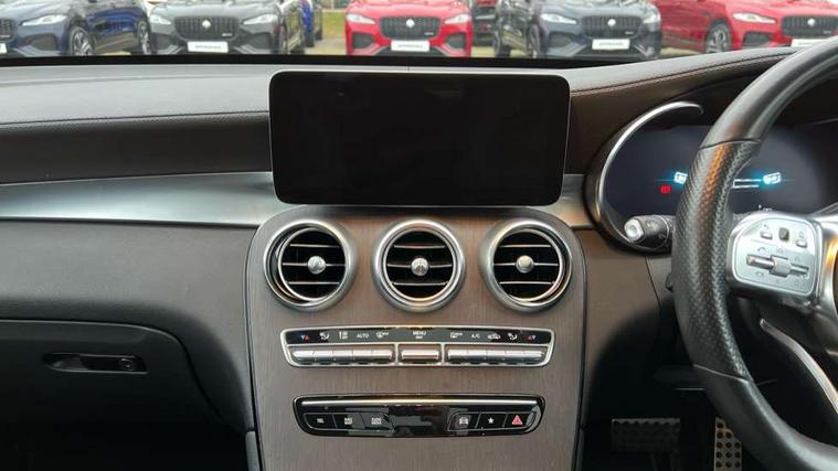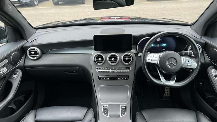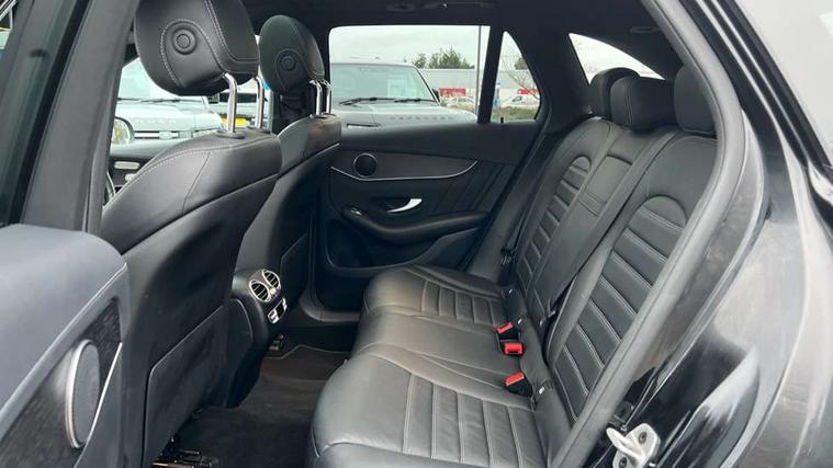 360 degree view camera, Active parking assist with parktronic system, Attention assist, Bluetooth interface for hands free telephone, Collision prevention assist plus, DYNAMIC SELECT with a choice of driving modes (ECO, Comfort, Sport, Sport+ and Individual), Easy pack automatic powered tailgate, eCall emergency call system, ECO start/stop function, Hard disk navigation, Hey Mercedes Voice activation, Instrument cluster with12.3-inch digital instrument cluster display. High resolution instrument cluster screen with choice of three display styles, MBUX Interior assistant, Mercedes connect me with remote online services, Multi function trip computer, Outside temperature display, rear seatbelt status indicator, Remote boot release, Service indicator (ASSYST), Smartphone integration with Apple CarPlay and Android auto, Traffic sign assist, 4MATIC permanent four wheel drive, 66 litre fuel tank, 9G TRONIC plus automatic transmission with steering column gear selector, DIRECT SELECT steering wheel gearshift paddles, Petrol Particulate Filter (PPF), Sports suspension tuned for improved handling and driving dynamics, 5 speakers, Frontbass loudspeakers, MBUX multimedia system with DAB digital radio and touchpad, Media display 10.25-inch touchscreen display, Pre installation for Mercedes Benz Link, USB ports x 2 in centre console, Adaptive brake lights, Aluminium roof rails, AMG bodystyling - AMG front apron with sporty air intakes and chrome trim element, AMG diffuser-look rear apron with insert in black, Body colour door mirrors, Body coloured bumpers, Electric panoramic glass sunroof, Electric windows one touch open/close, Electrically adjustable and heated door mirrors, Front, side and rear exterior chrome trim, Headlamp assist automatic headlamp activation, High level LED brake light, LED high performance headlamps with integrated LED daytime running lights, LED tail lamp, Motor way mode function and locator lighting, Privacy glass with dark glass from B pillar backwards, Radiator diamond grille, Rain sensor windscreen wipers, Range adjustable headlights, Rear side wing doors, Rear wiper, Roof spoiler, Running boards, Tinted glass all round with single layer safety glass, Tinted rear windows, Two chrome plated tailpipe trim elements, Variable front intermittent wipers, 2 way rear head restraints, 3-spoke multifunction sport AMG steering wheel in black nappa leather with flattened bottom section, chrome insert and perforated leather in grip area, 40:20:40 split folding rear seats, Ambient lighting, AMG floor mats with edging and embroidered AMG lettering, AMG sports seats, Artico man-made leather upper dashboard with contrast topstitching, Automatic child seat recognition sensor, Black roof lining, Dividing net - rear, Double cup holder in centre console, Easy-pack removable load compartment cover, Front armrest with storage box, Front door sills with Mercedes Benz lettering, Front head restraints, Front passenger seat, Heated front seats, Illuminated and lockable glove compartment, Leather upholstery, Rear top tether child seat ISOFIX attachment, Sports pedals with stainless steel surfaces and rubber studs, Steering wheel with touch control buttons, THERMOTRONIC 3 zone automatic climate control, Interior lighting pack - GLC, Memory pack - GLC, Mirror pack - GLC, Storage pack - GLC, 3 rear 3 point seatbelts, Active bonnet, Adaptive brake system with HOLD function and brake drying in the wet, ASR, Black seat belts, Brake calipers with Mercedes-Benz lettering + perforated brake discs, Child proof door locks, Dual-stage airbags - driver and front passenger, driver knee bag and window bags for driver, front passenger and rear passengers, Electronic parking brake, Electronic stability programme (ESP) with curve dynamic assist and cross wind assist, Front and rear seatbelt reminder, Front passenger seat occupancy sensor, Hill hold function, Tyre pressure monitoring system, Warning triangle and first aid kit, Alarm system/interior protection/immobiliser, Automatic door locking, Keyless Go entry and starting function, Remote central locking, Anthracite open pore oak wood trim, 20" AMG 5 twin spoke alloy wheels painted in titanium grey with high sheen finish, Run flat tyres, Summer tyres,